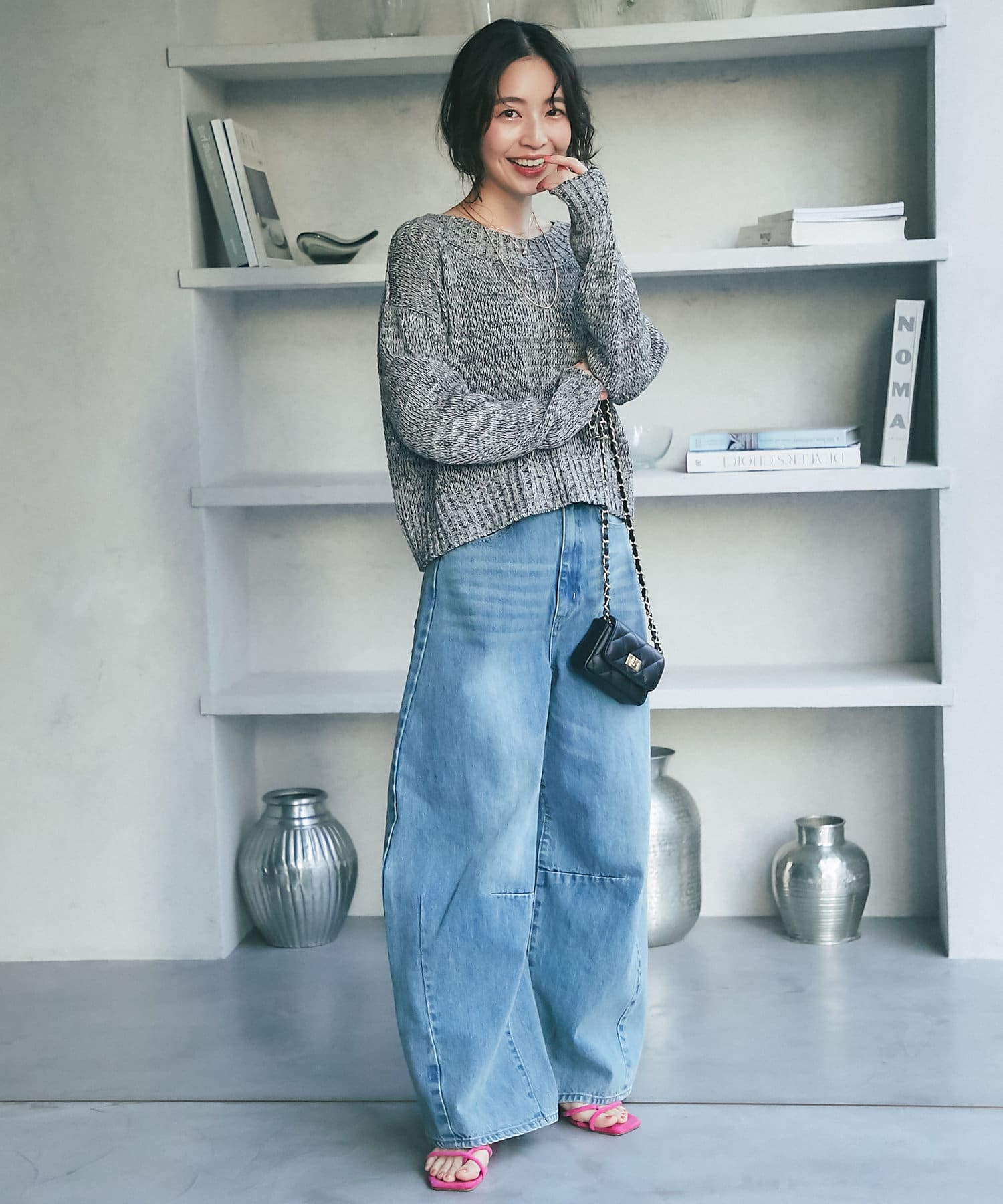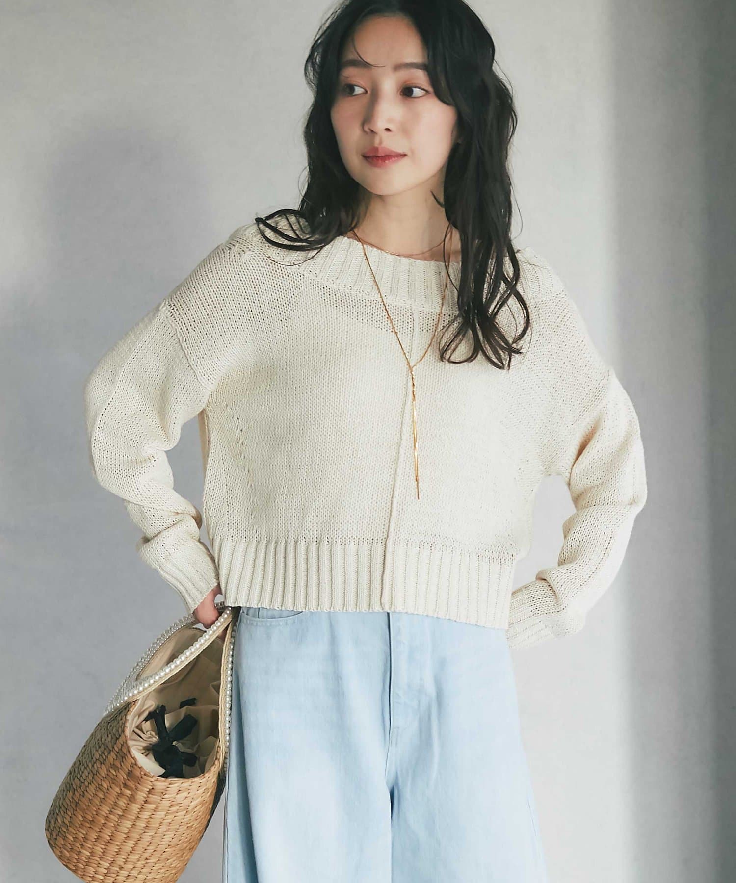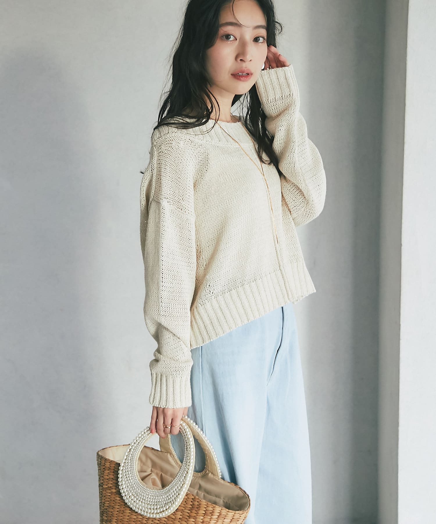 大人抜け感スタイルを楽しめるニットプルオーバー