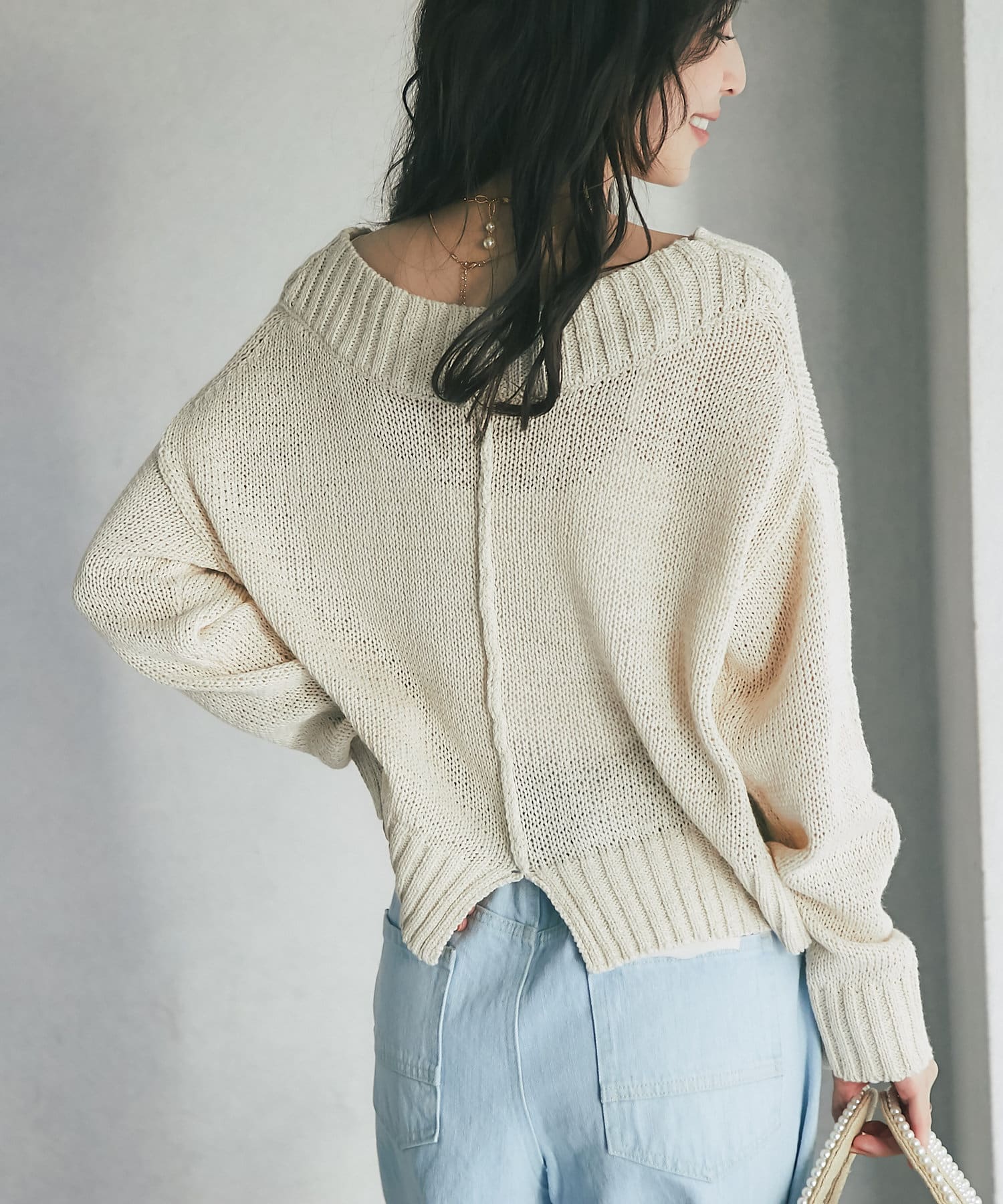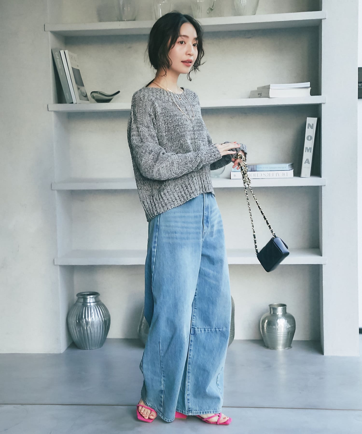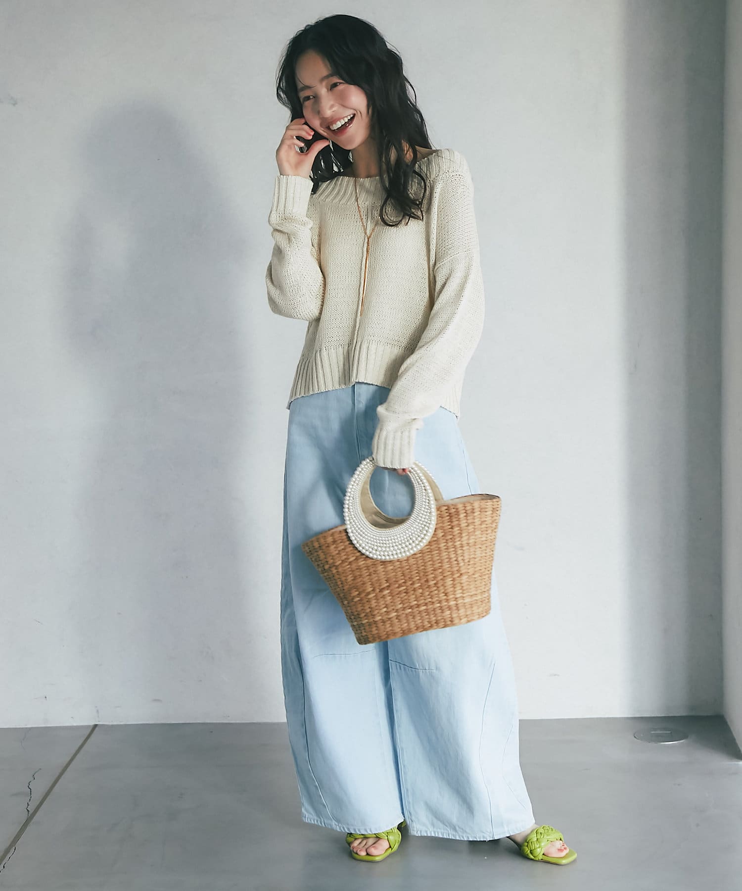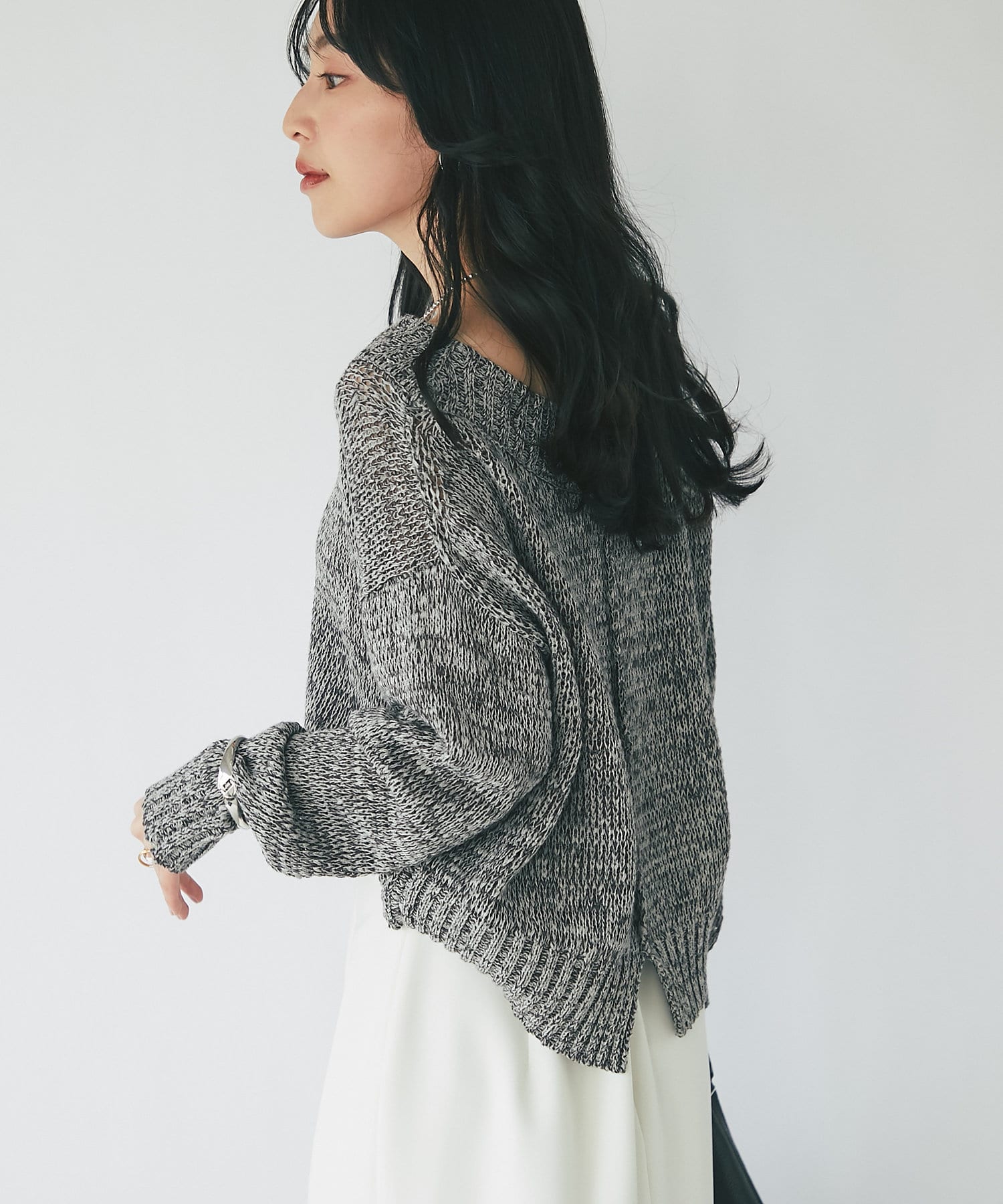 大人抜け感スタイルを楽しめるニットプルオーバー
