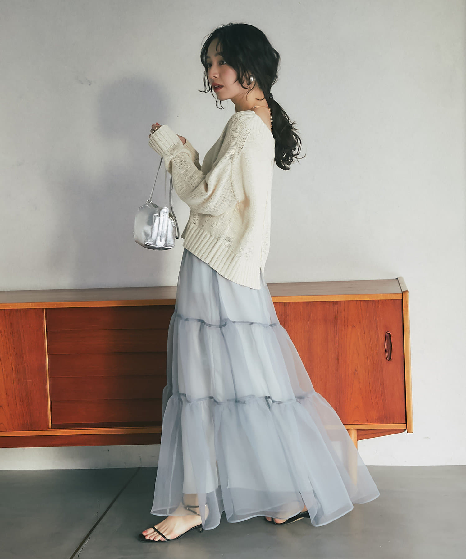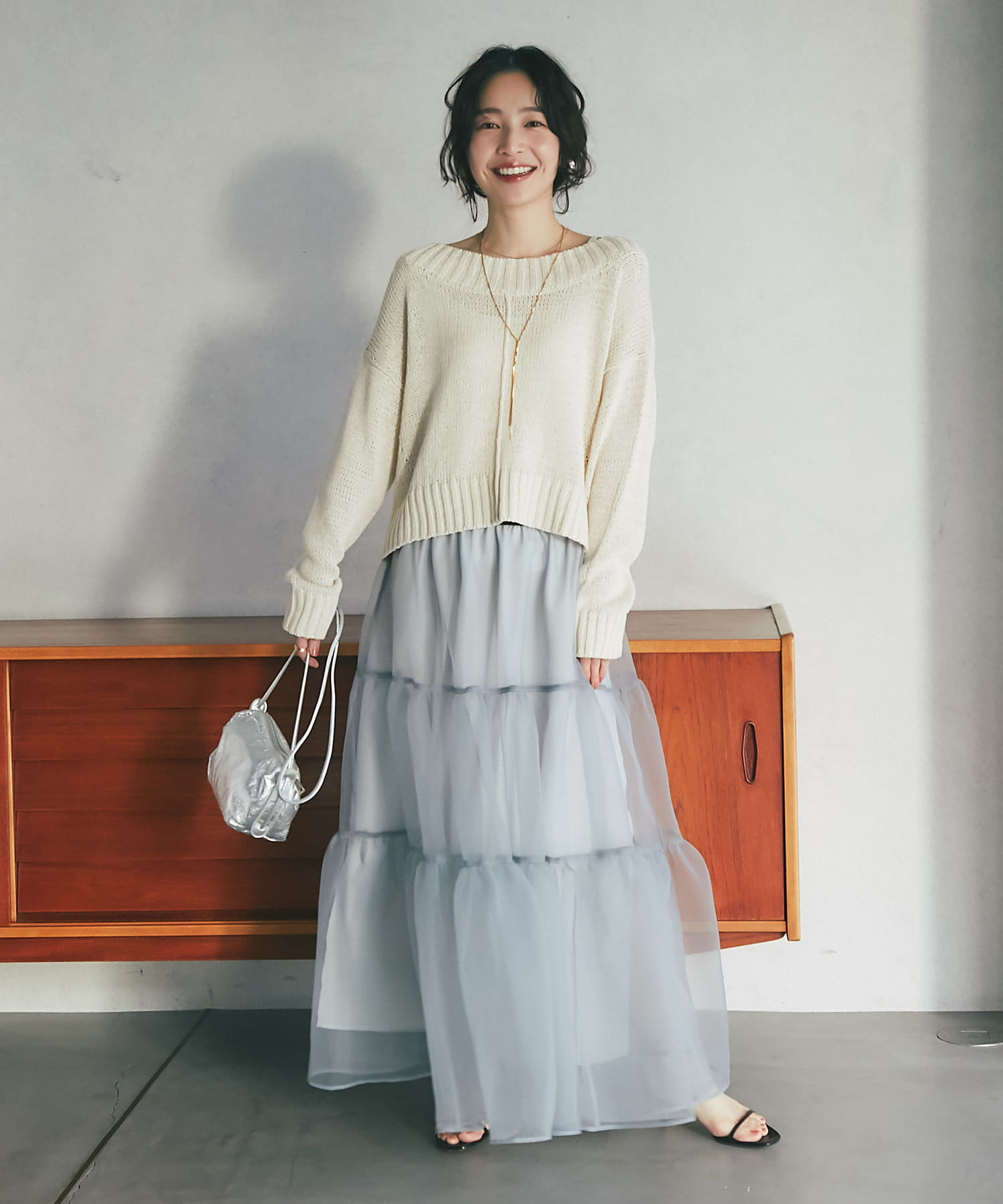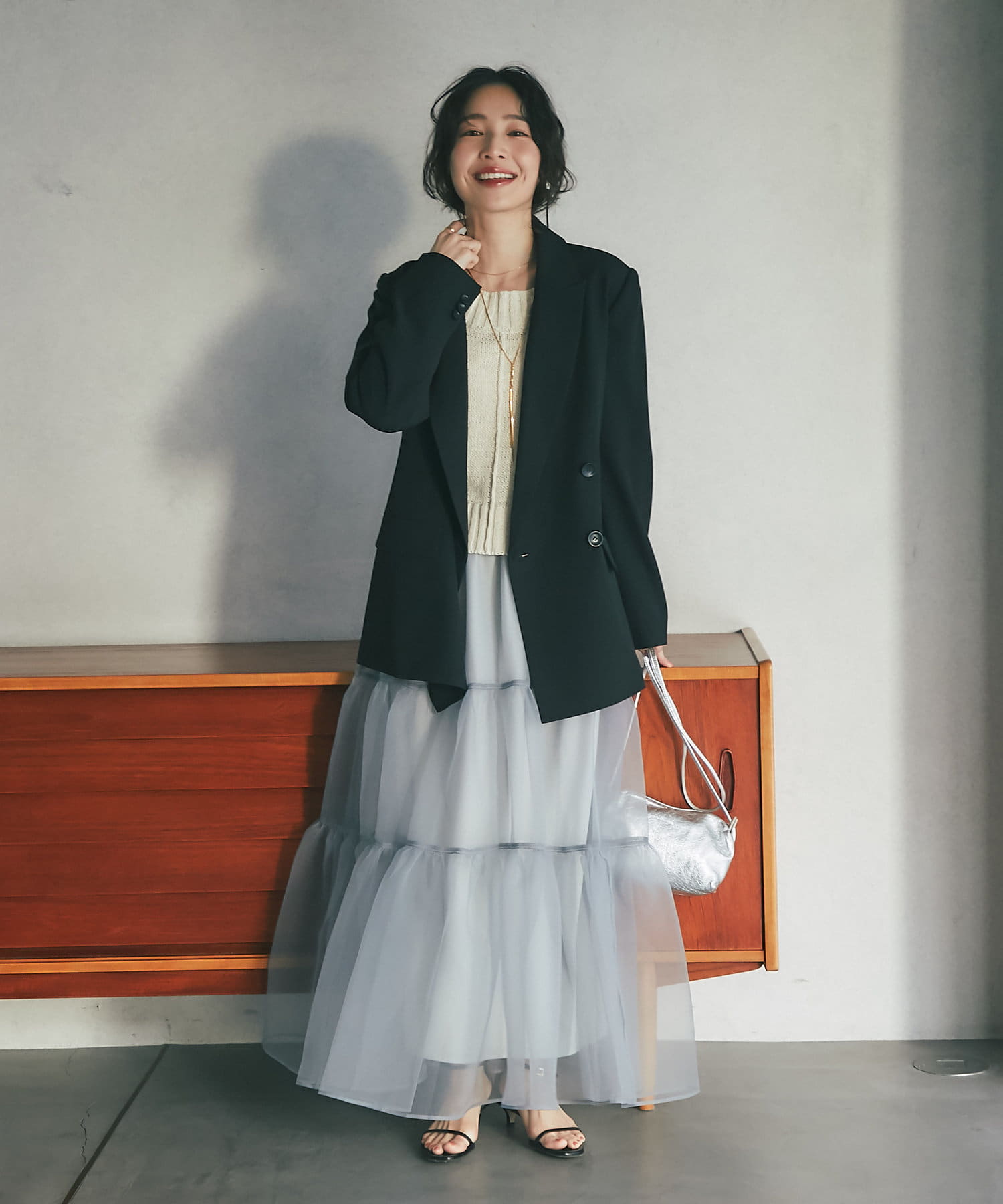 また、スカート合わせもフェミニンさがプラスされて印象が変わるのでおすすめです。