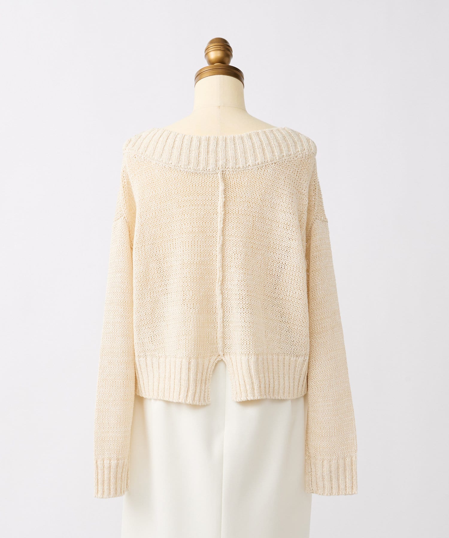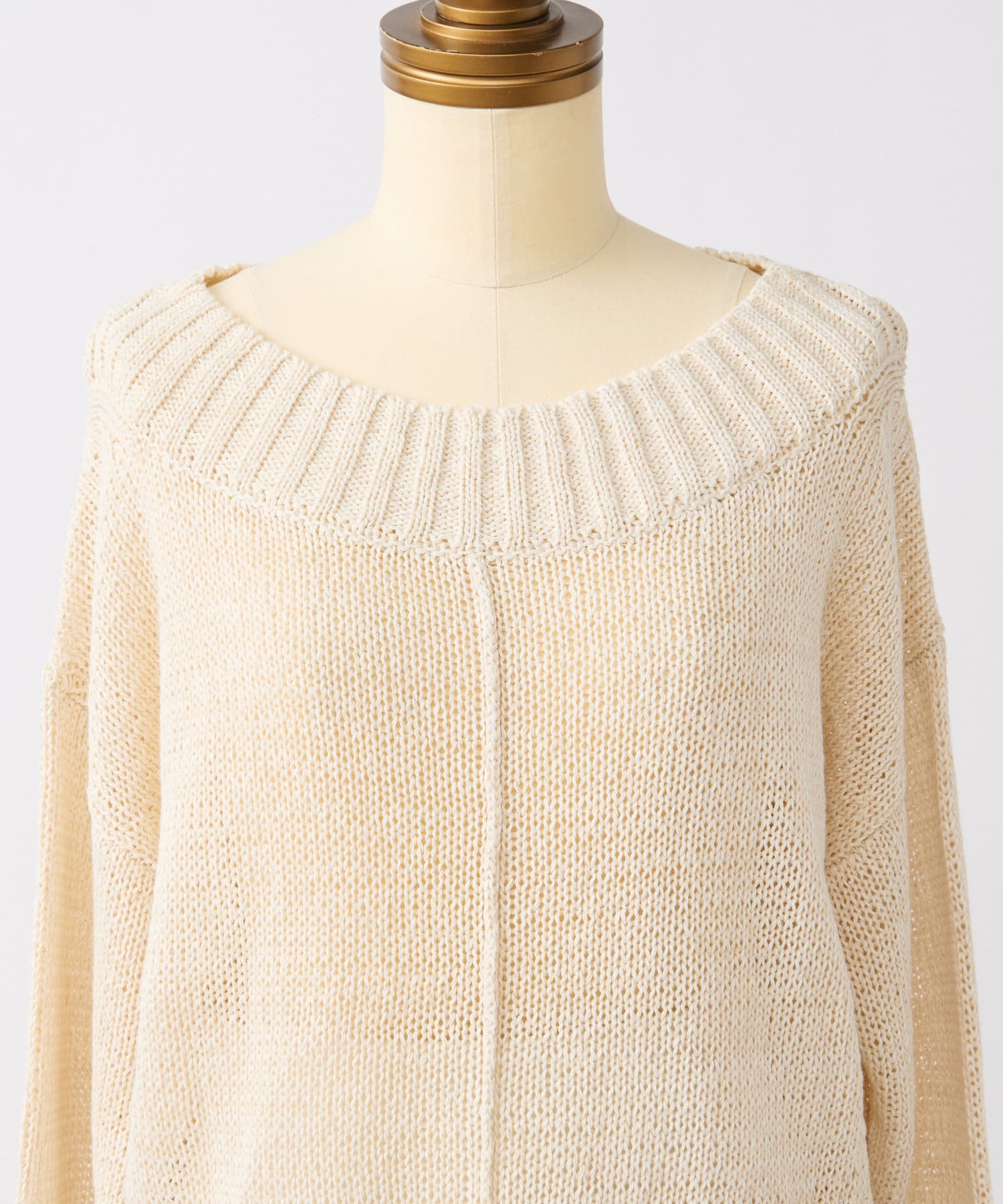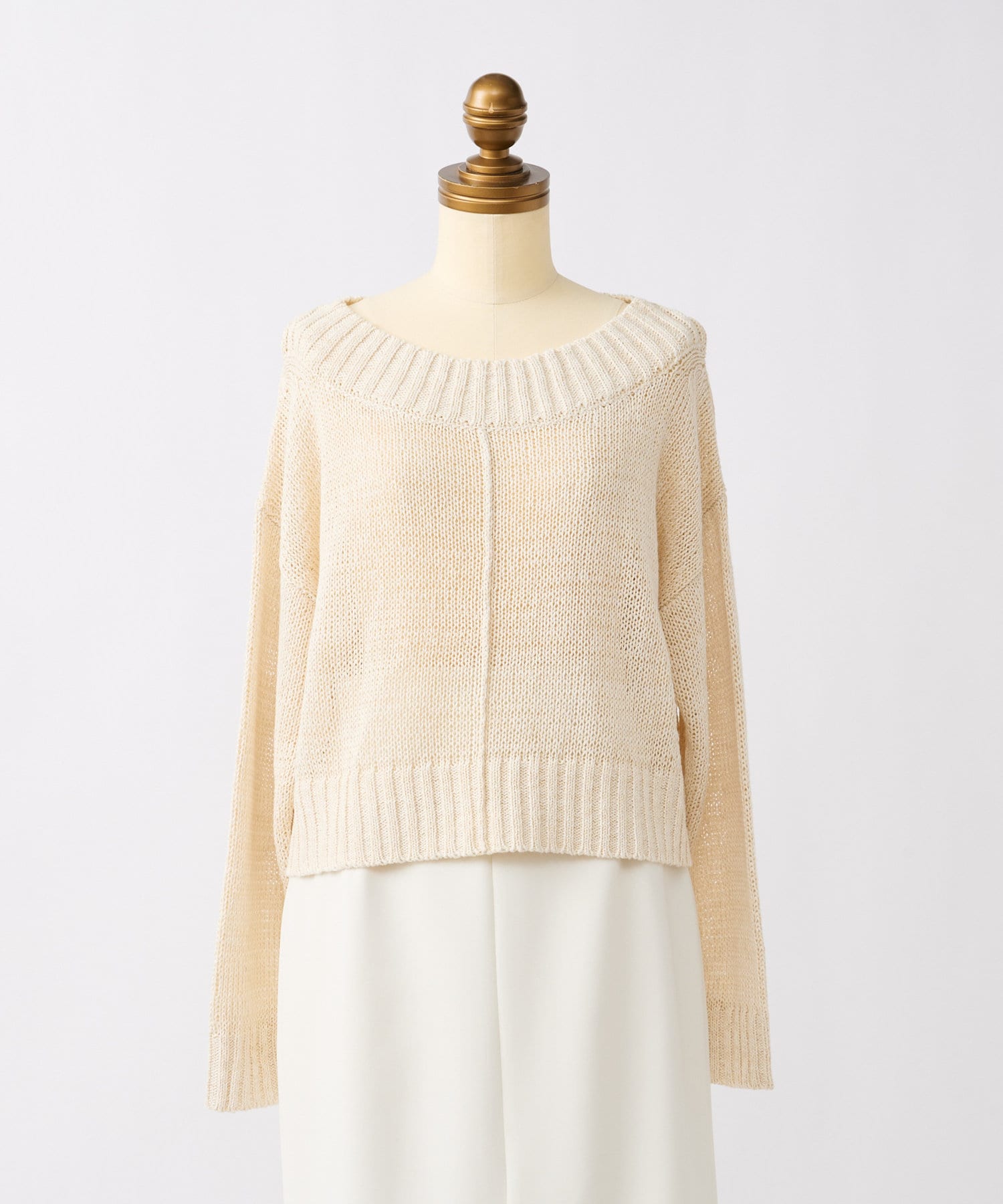 太めのリブ仕様のボートネックが抜け感を出しながらデコルテを美しく演出。
