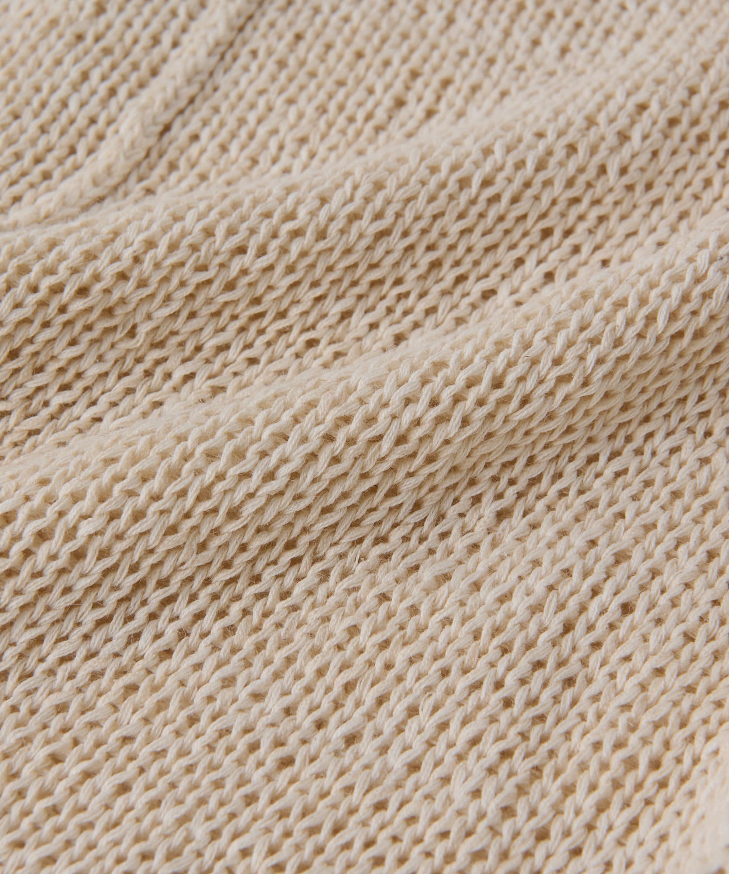 接ぎのようなセンターのタックと脇の写し目の編地がポイントになったデザインでシンプルですが拘りが見られる一枚です。
