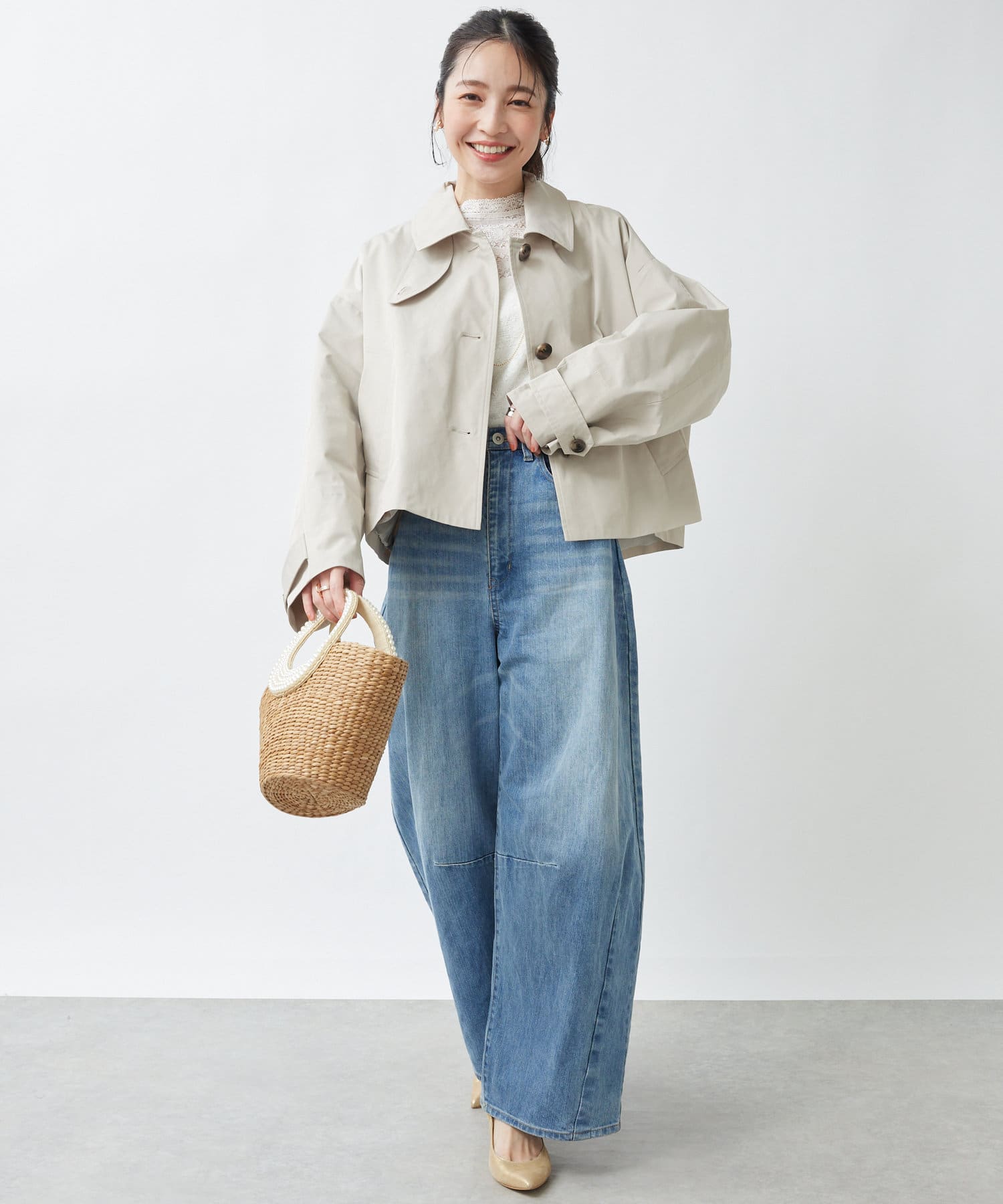 トレンドのコクーンデニムに合わせたカジュアルスタイルもおすすめ。