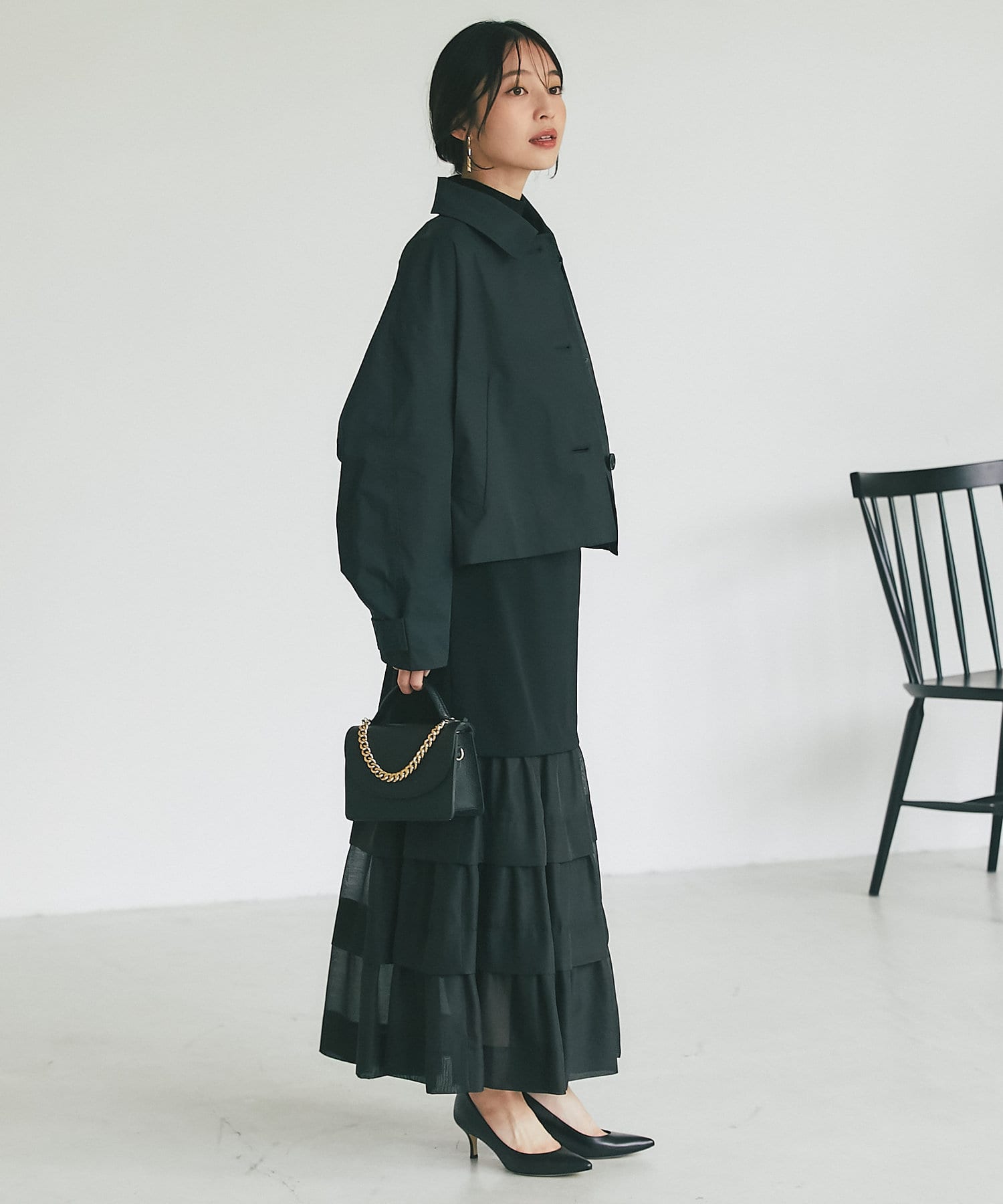 前を開けて抜け感のある着こなしや、しっかり前を閉じて襟をタブで留めるトレンドの着こなしも可能です。