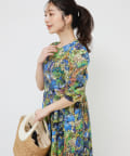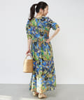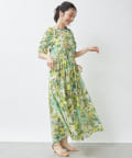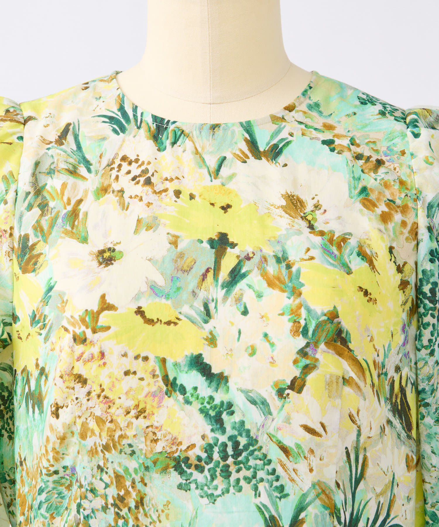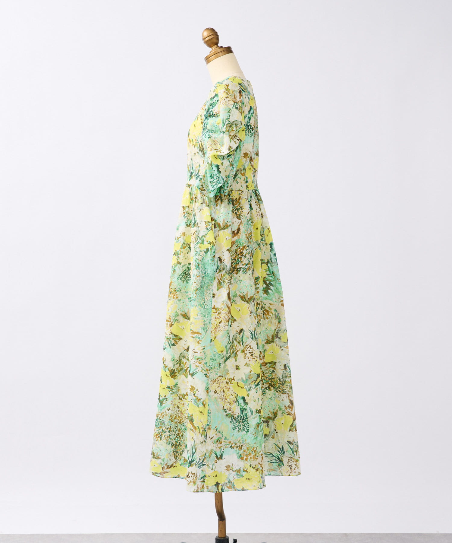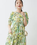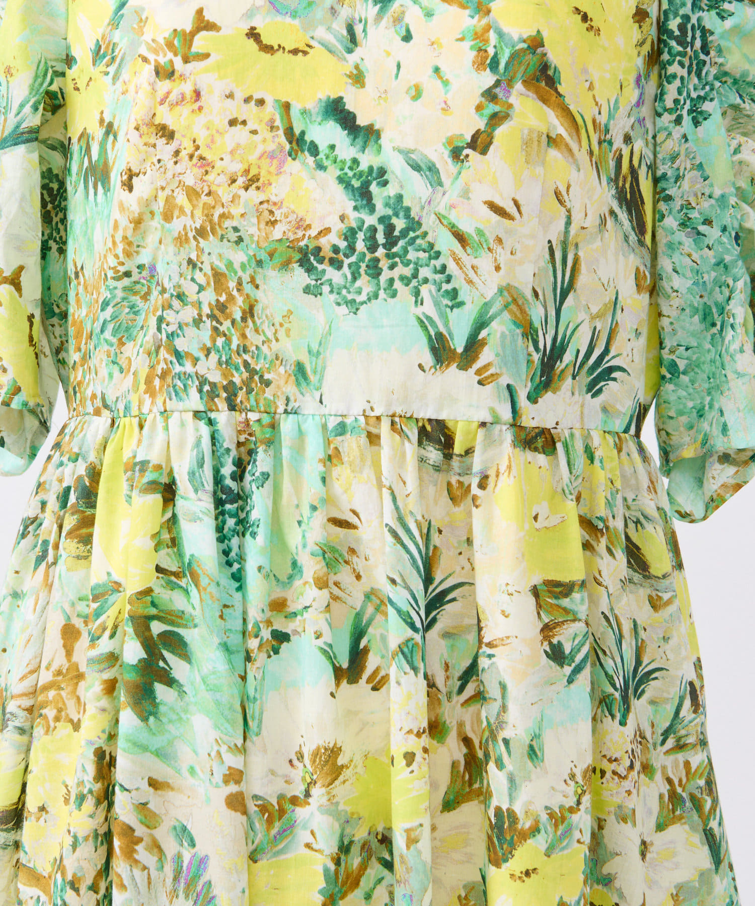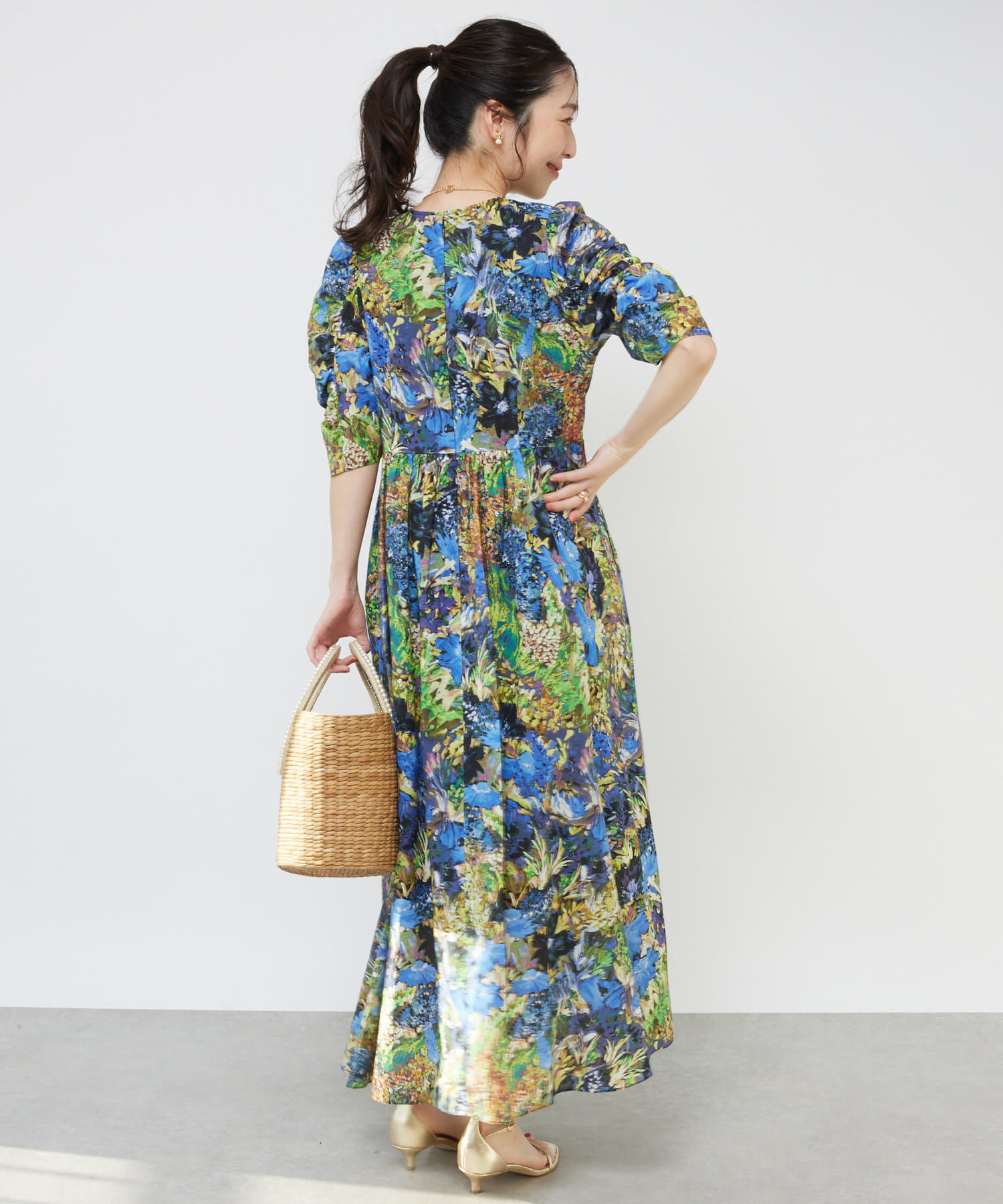 【華やぎ・映えカラー】花柄ギャザースリーブワンピース