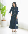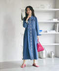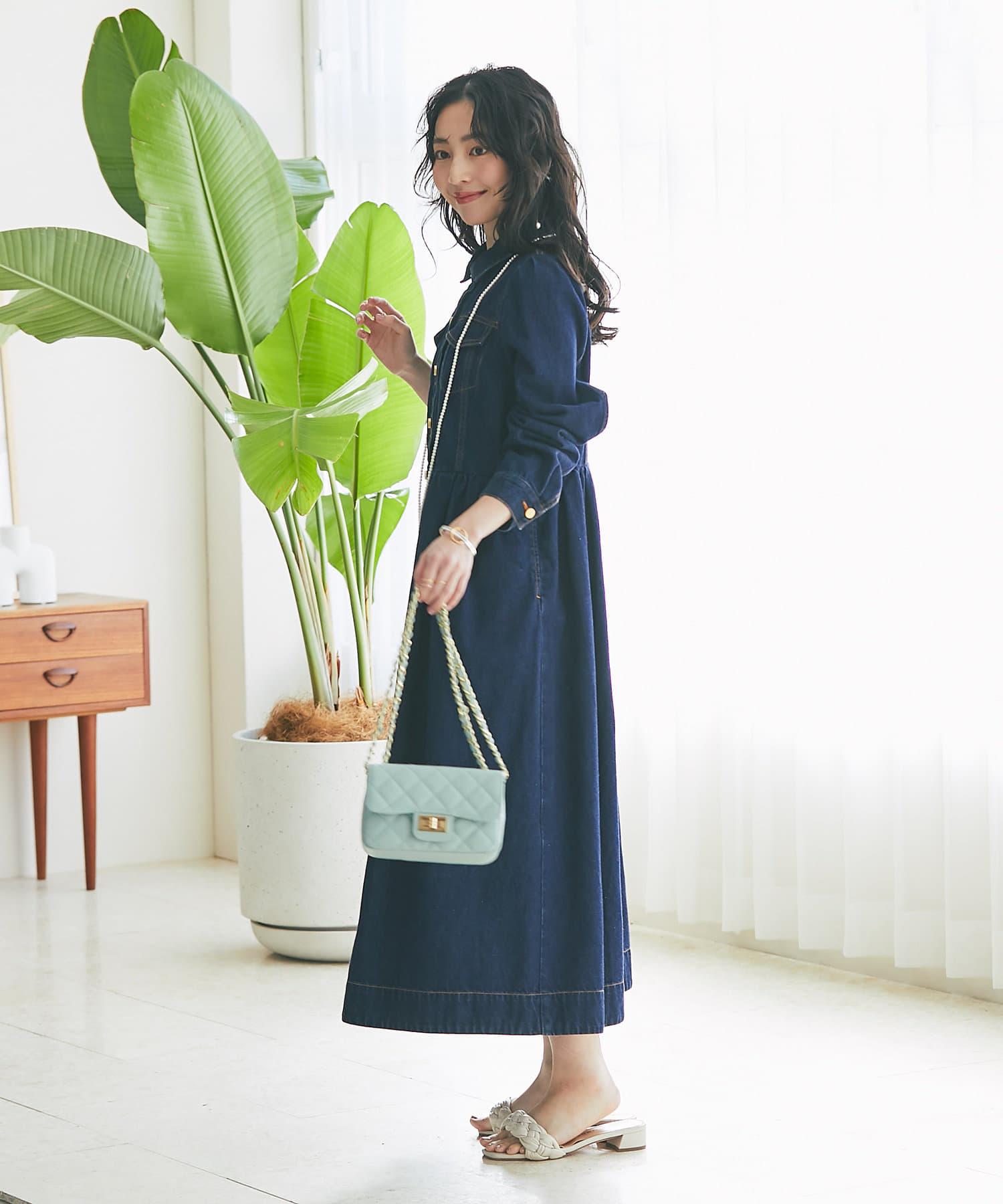 フィットアンドフレアの女性らしいシェイプされたシルエットのワンピース。