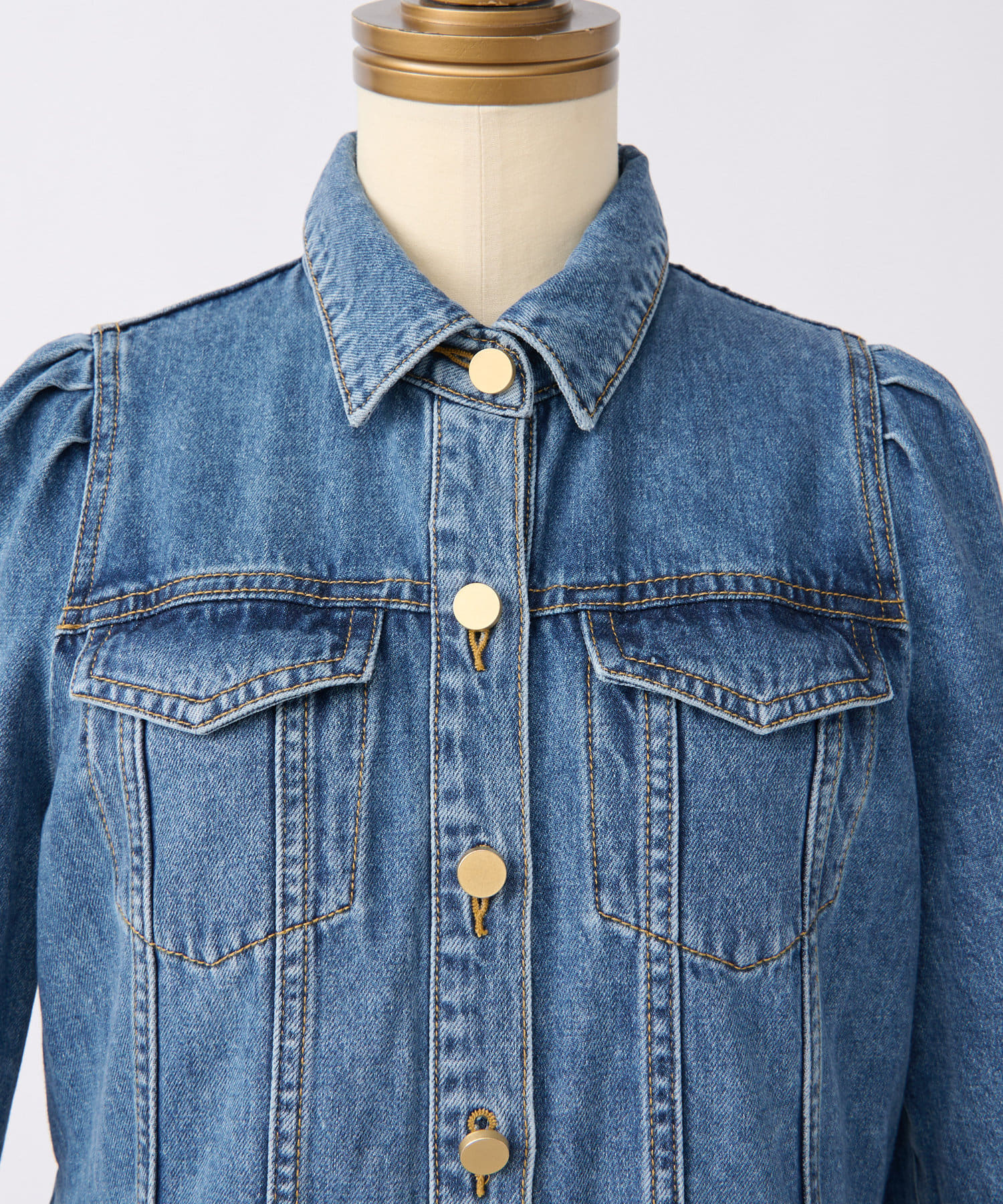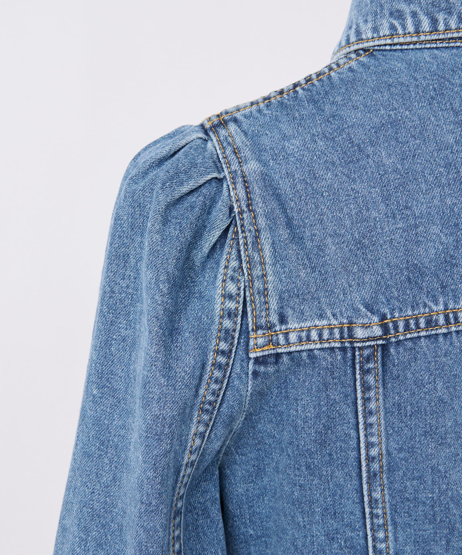 Gジャン風のデザインに程よいパフスリーブは華奢見えして女性らしい印象に。