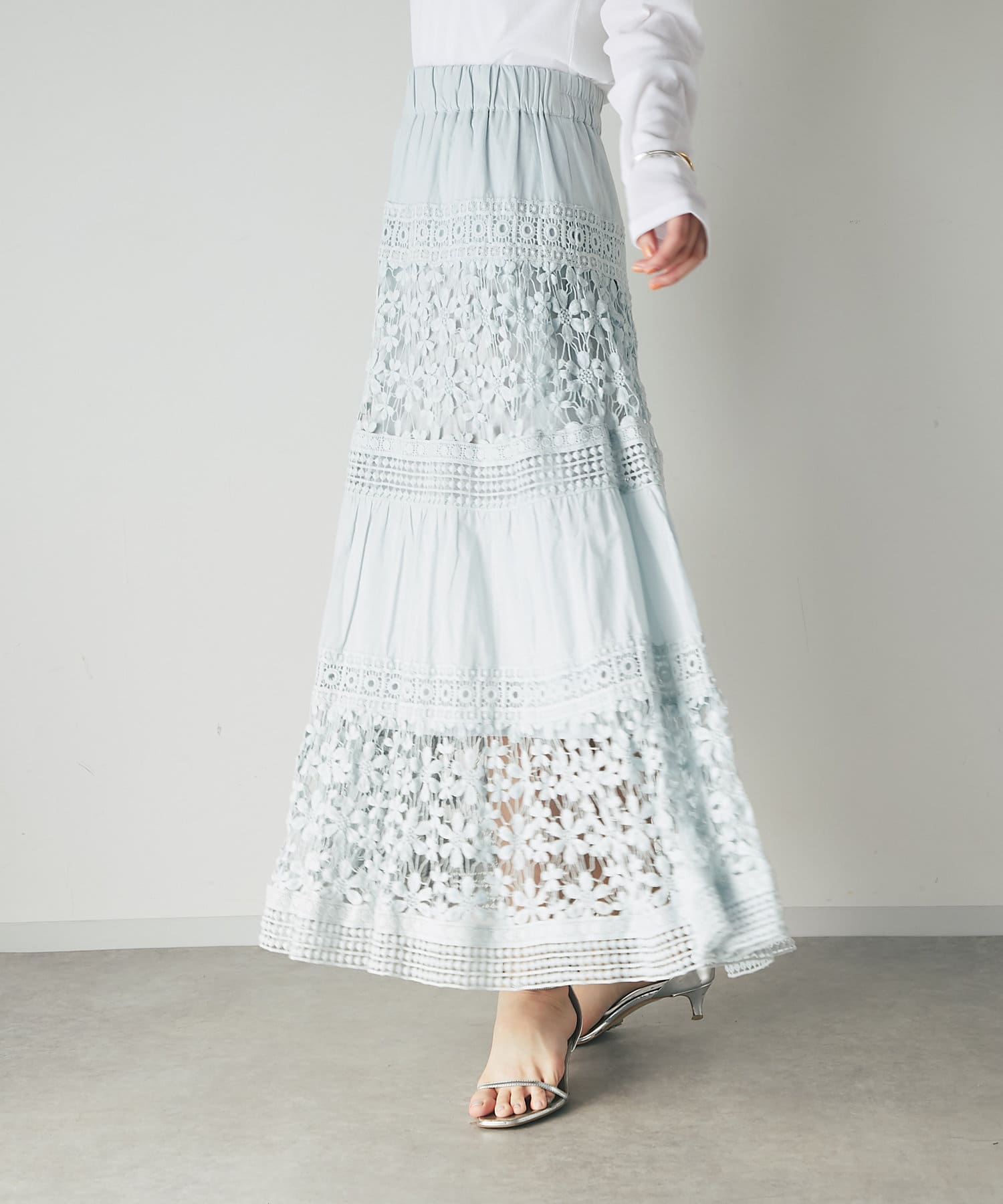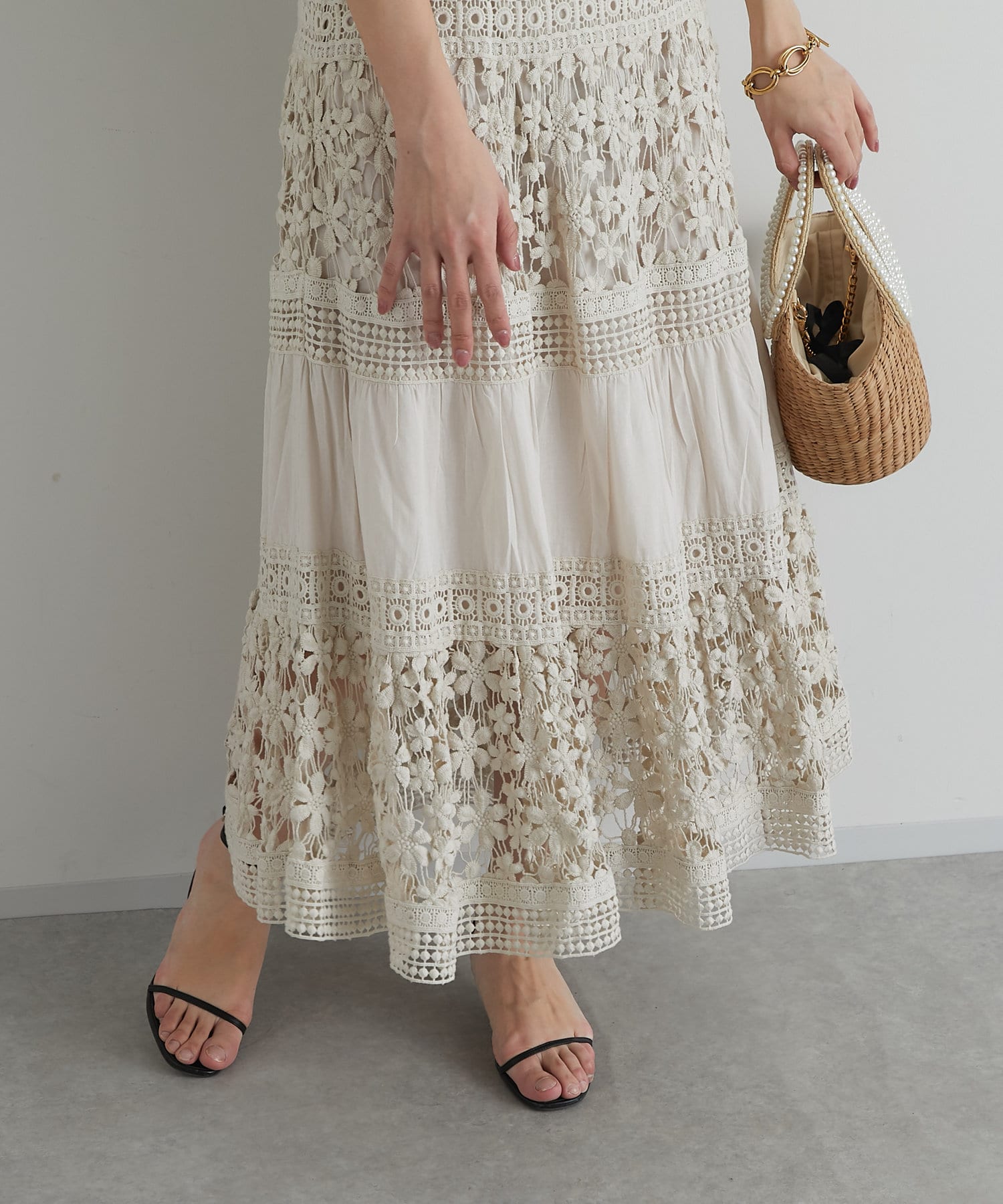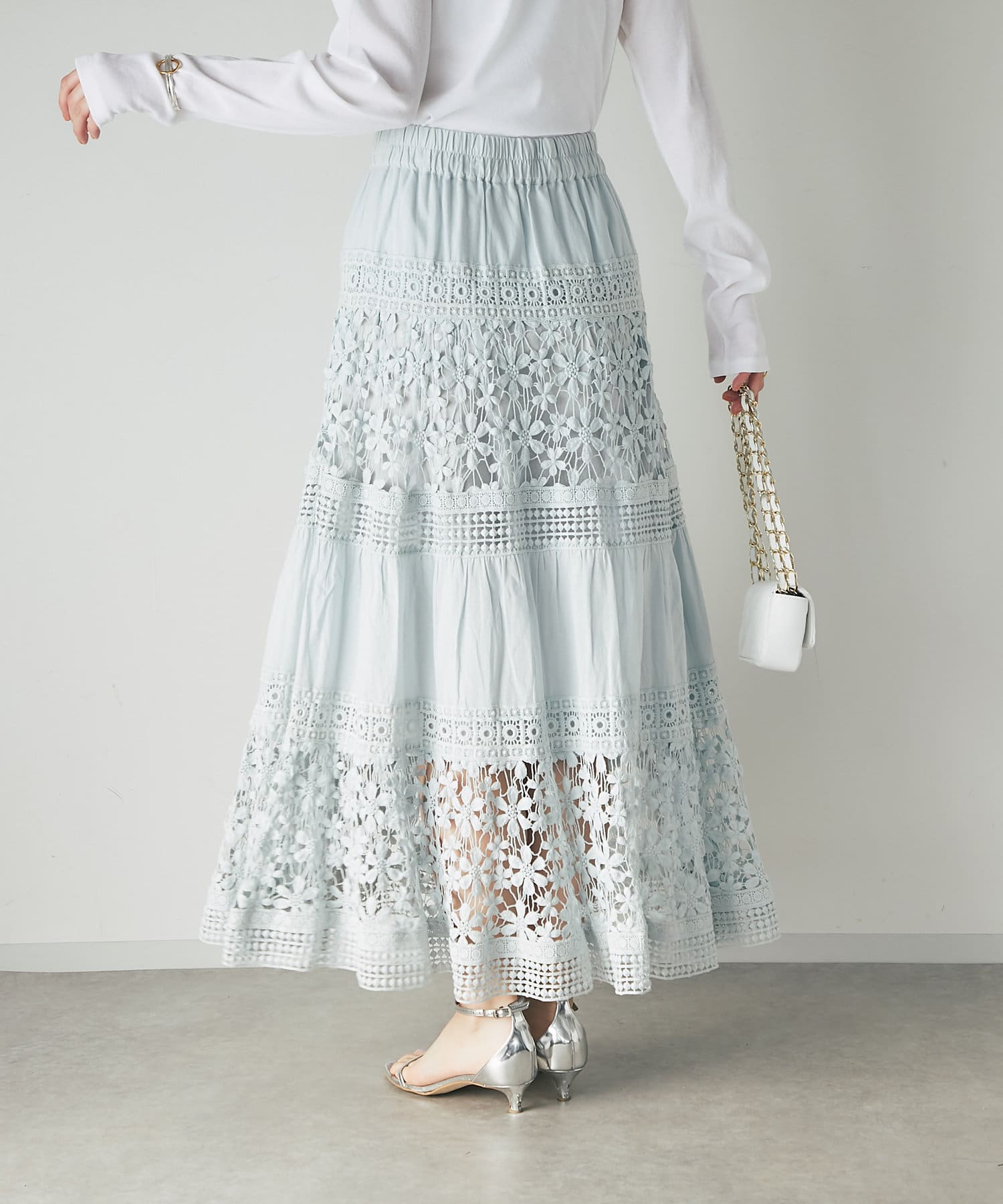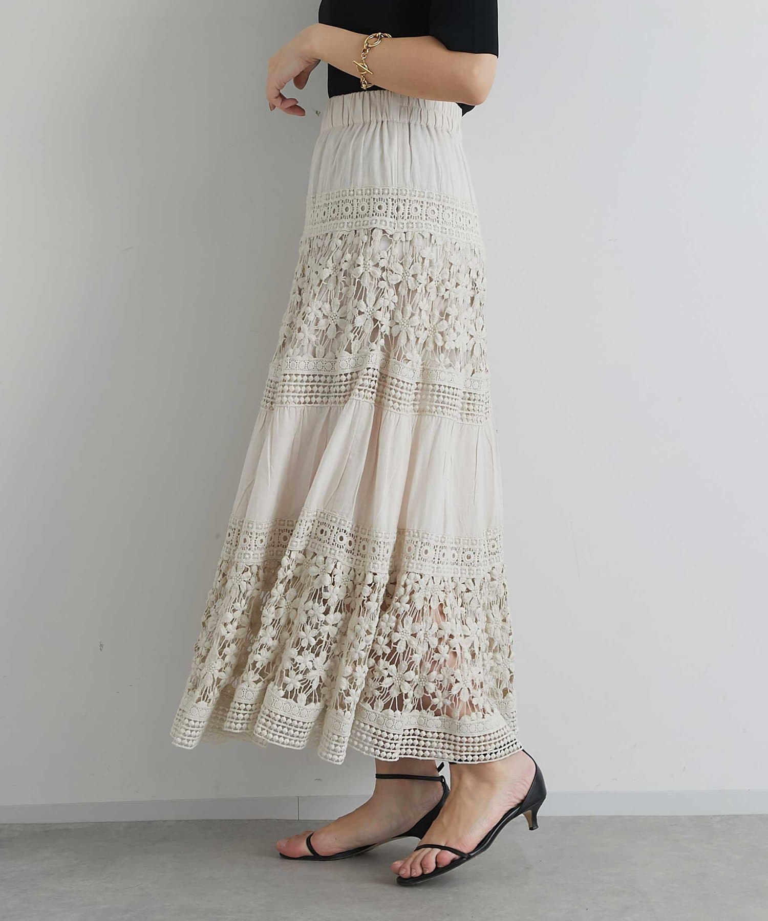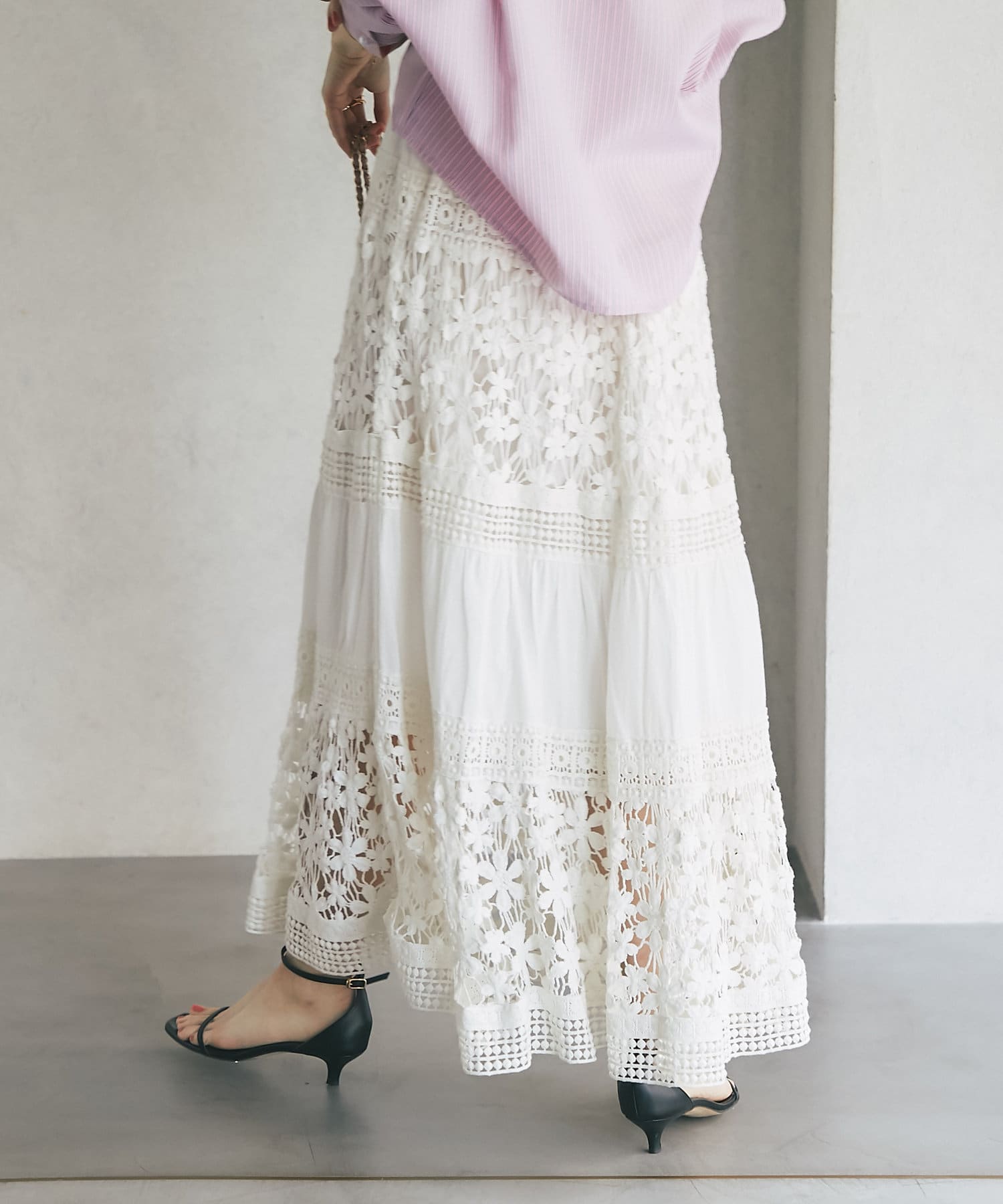 【ホワイト復刻!新色登場】コットンレースティアードマキシスカート