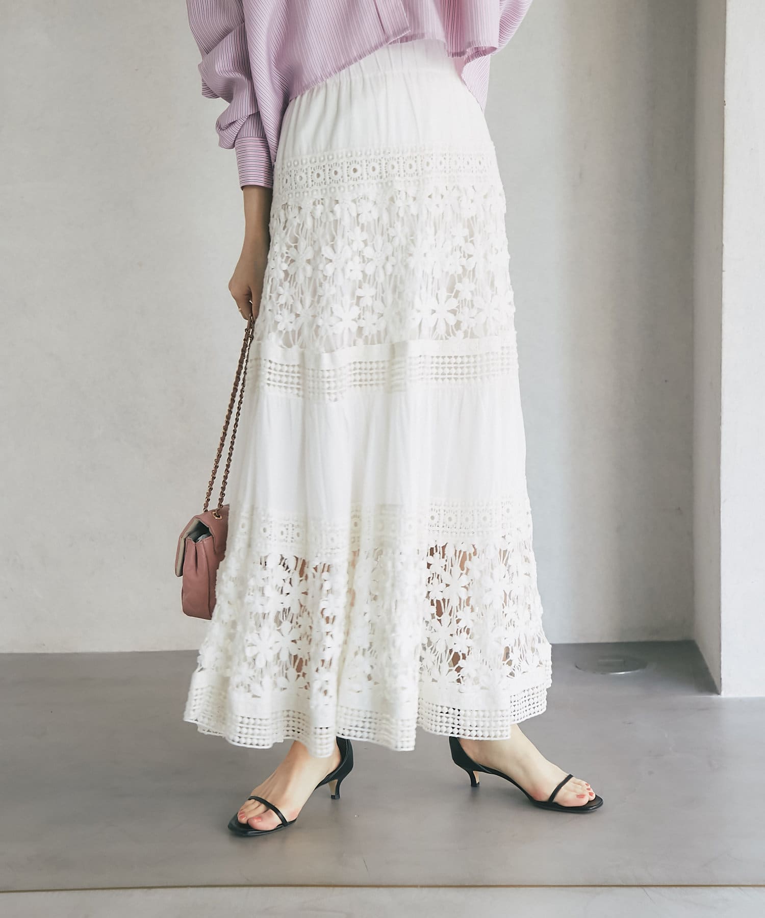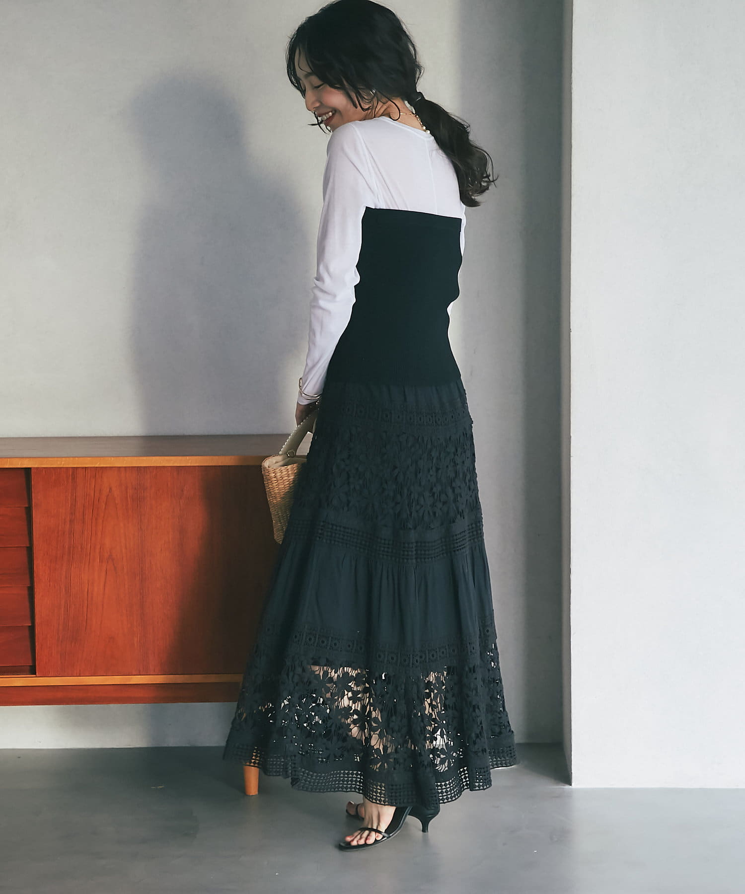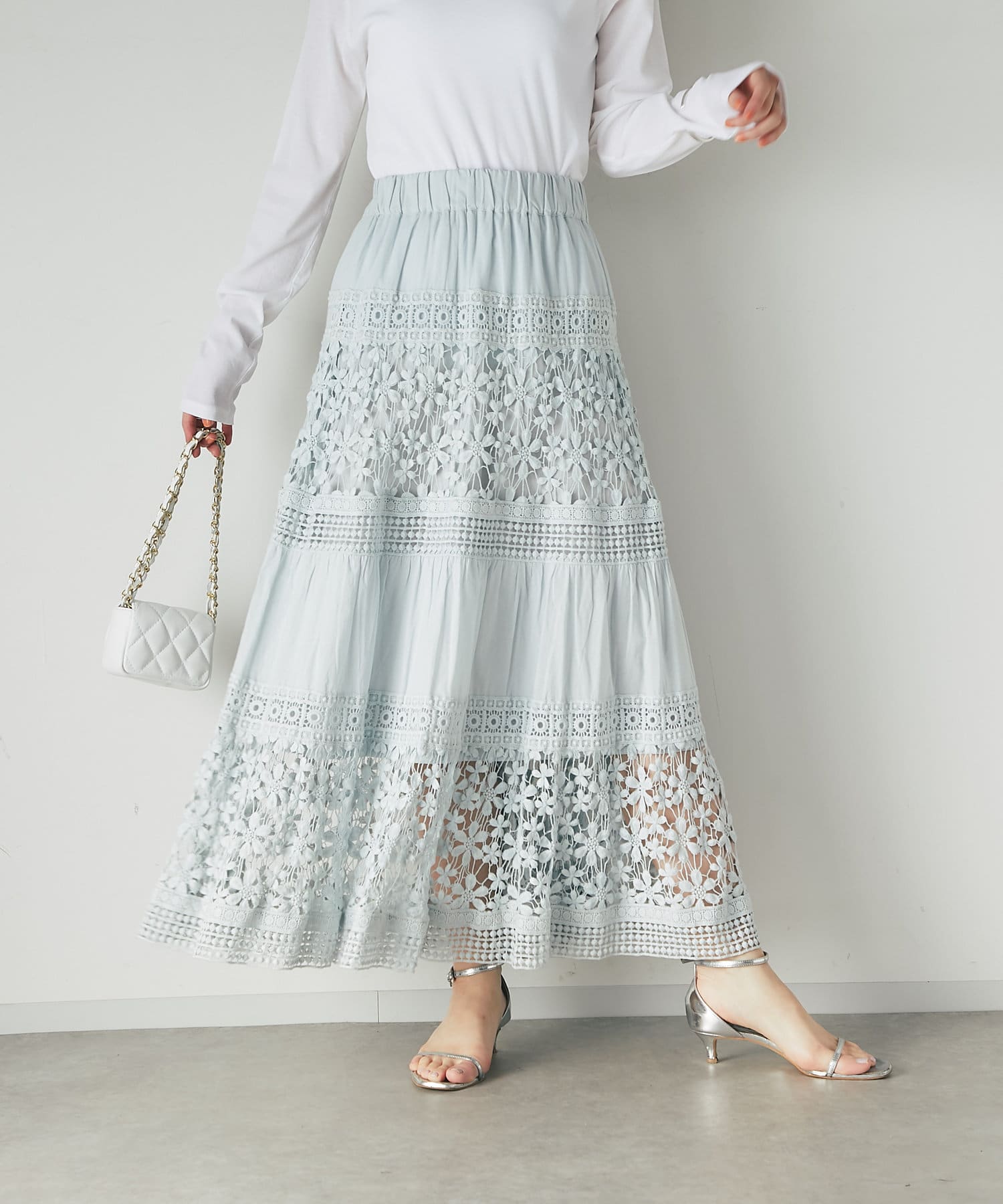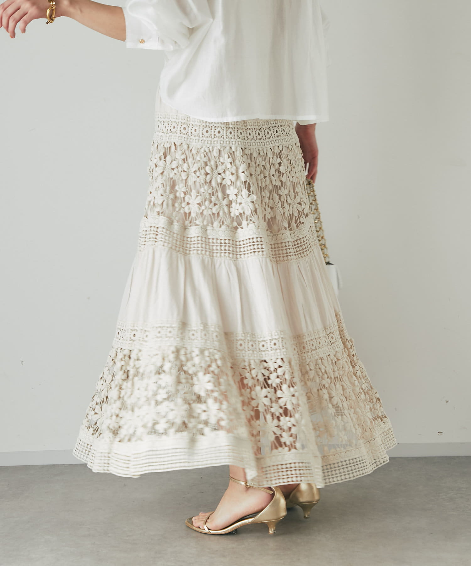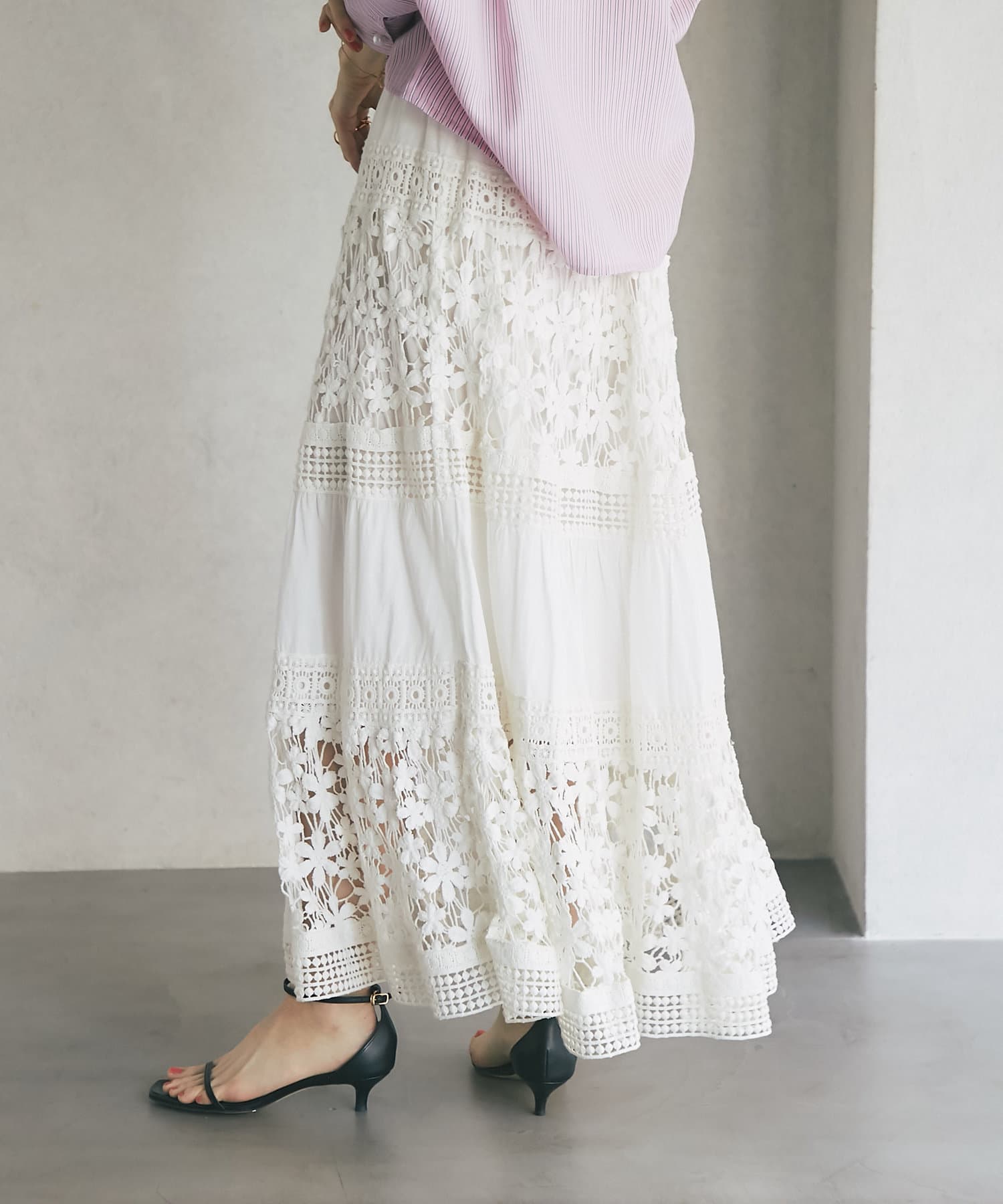 【ホワイト復刻!新色登場】コットンレースティアードマキシスカート