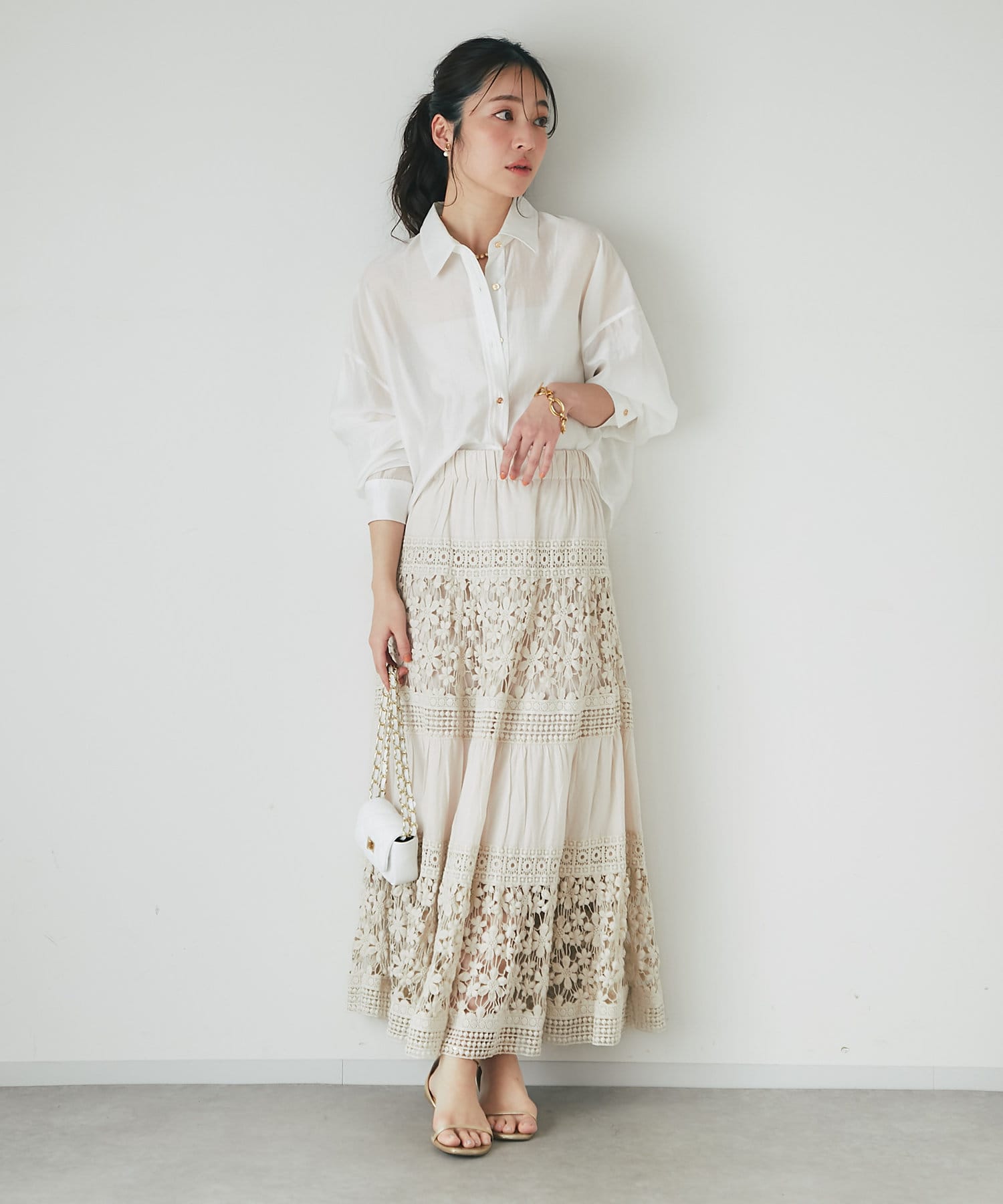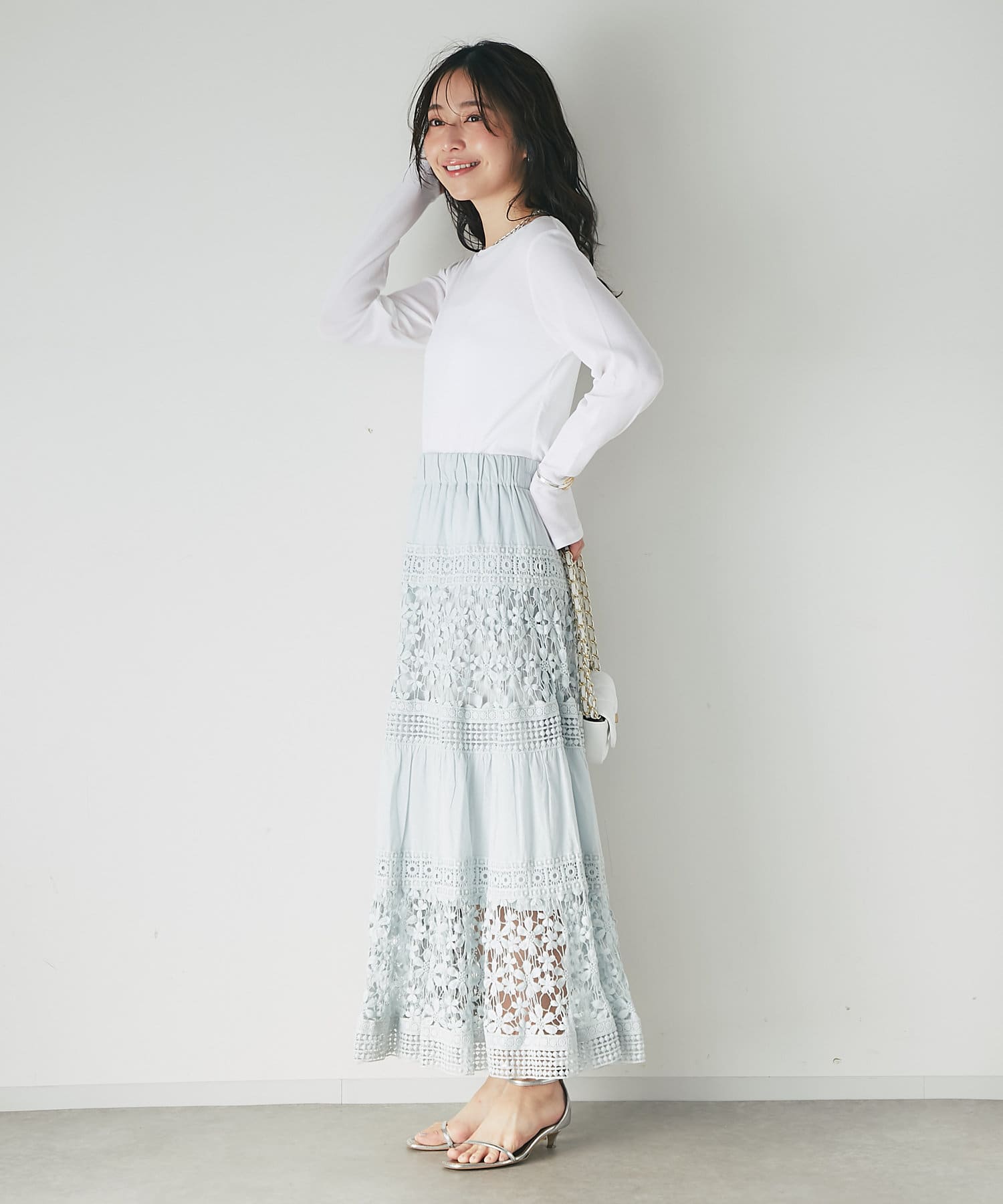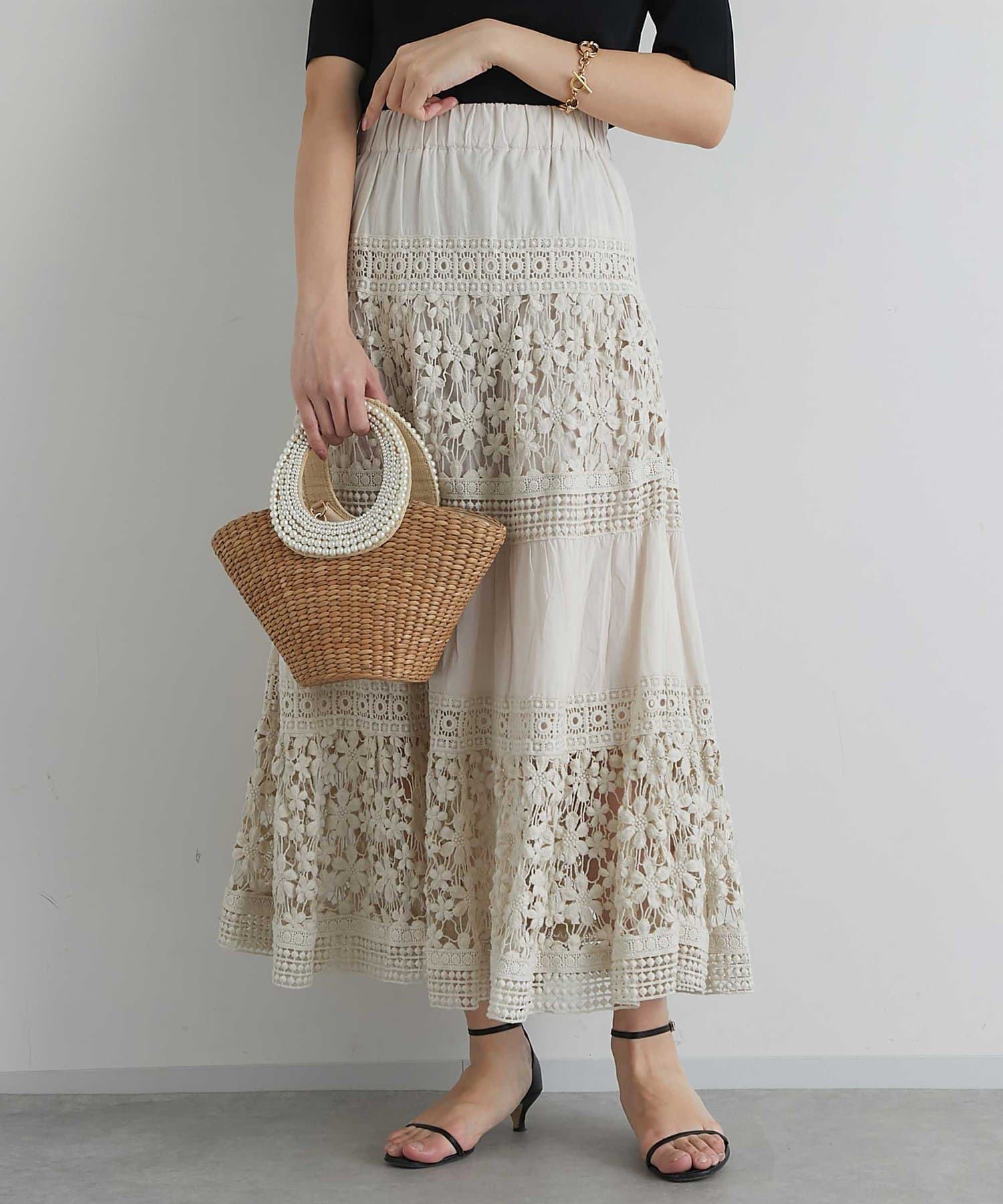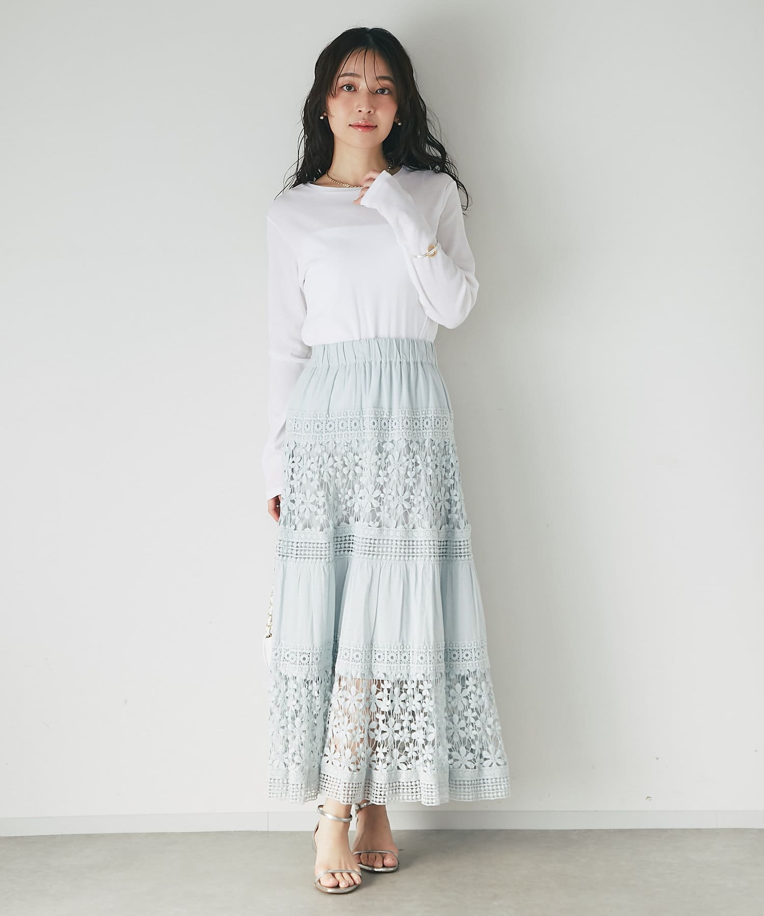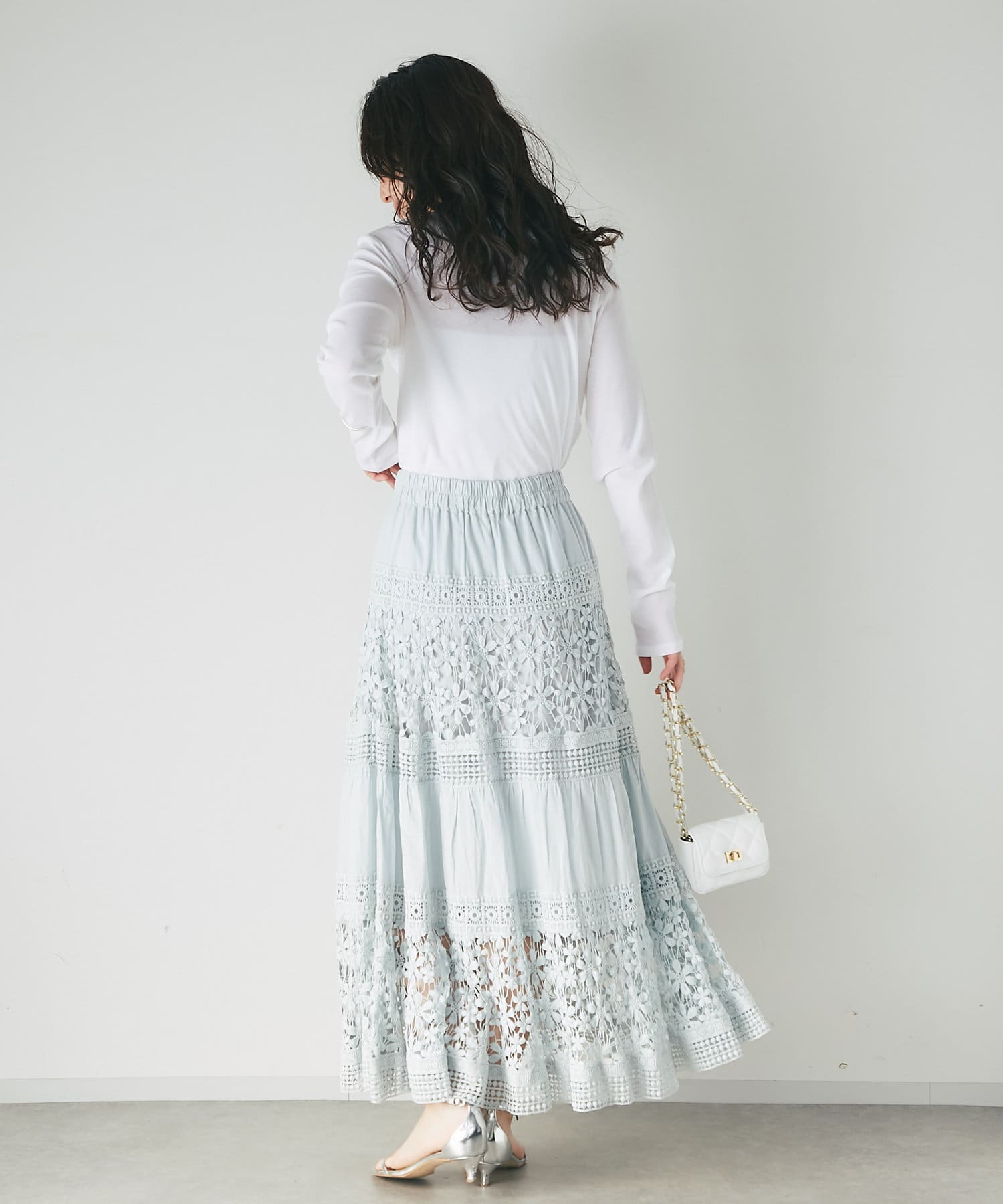 【ホワイト復刻!新色登場】コットンレースティアードマキシスカート