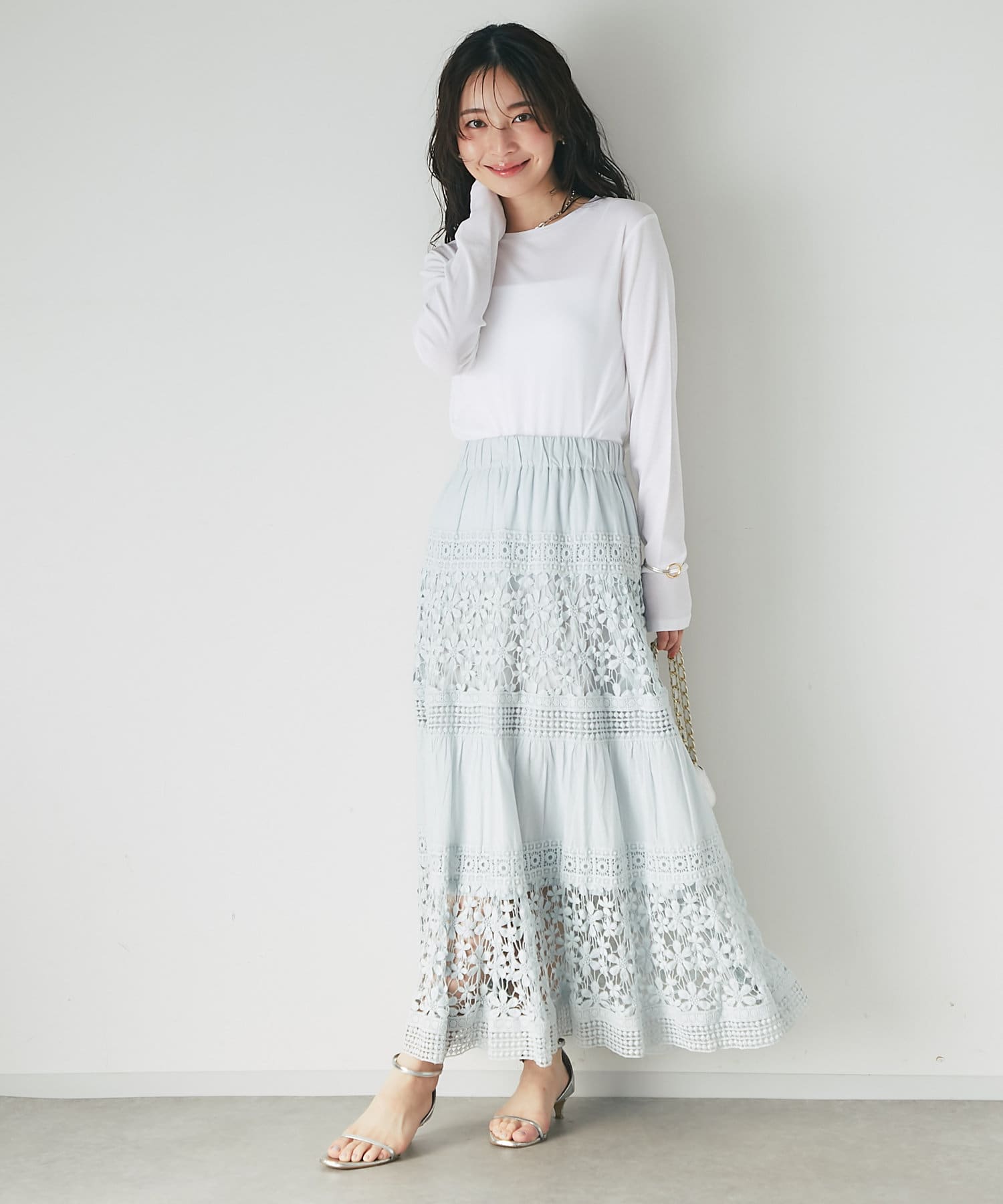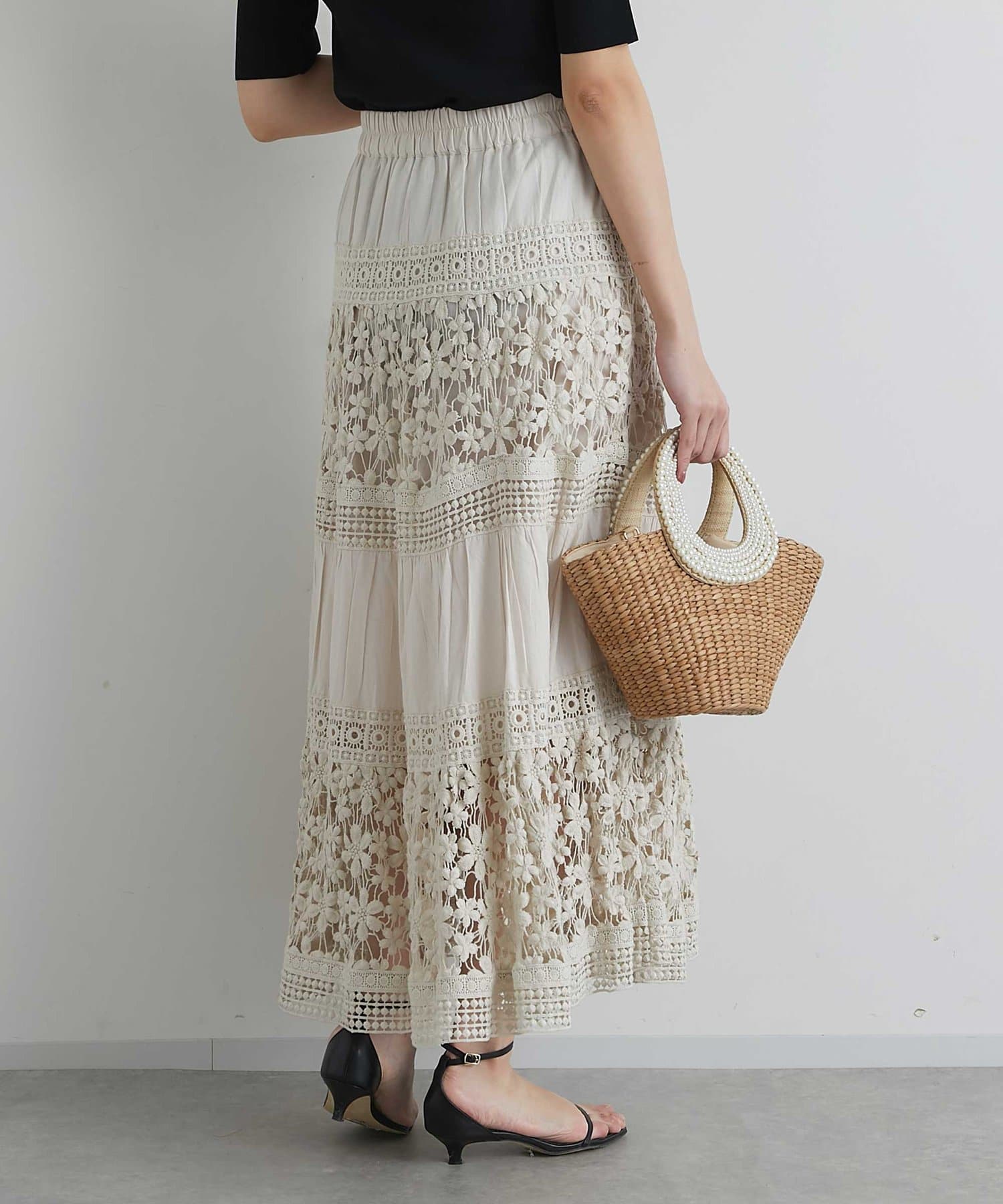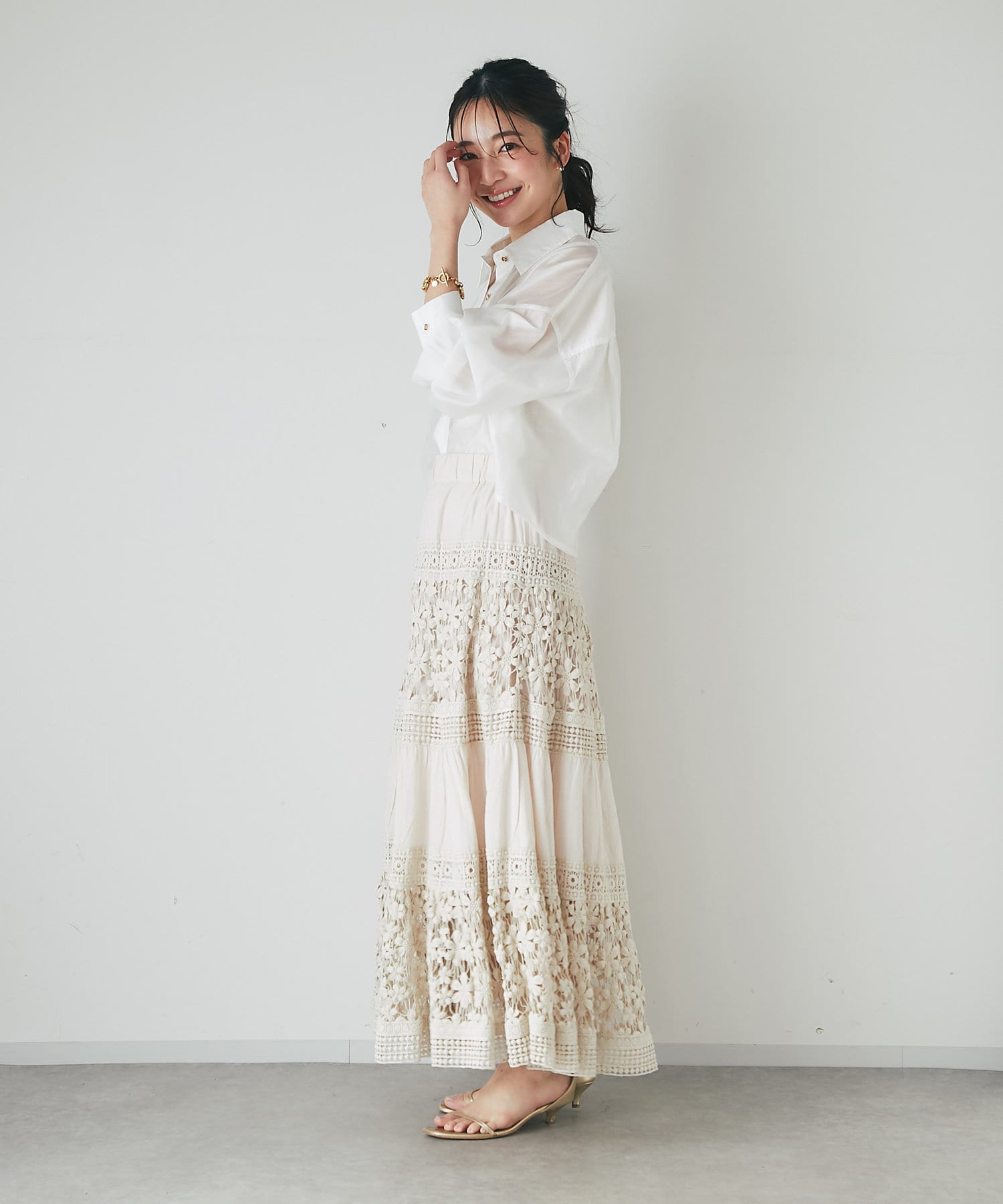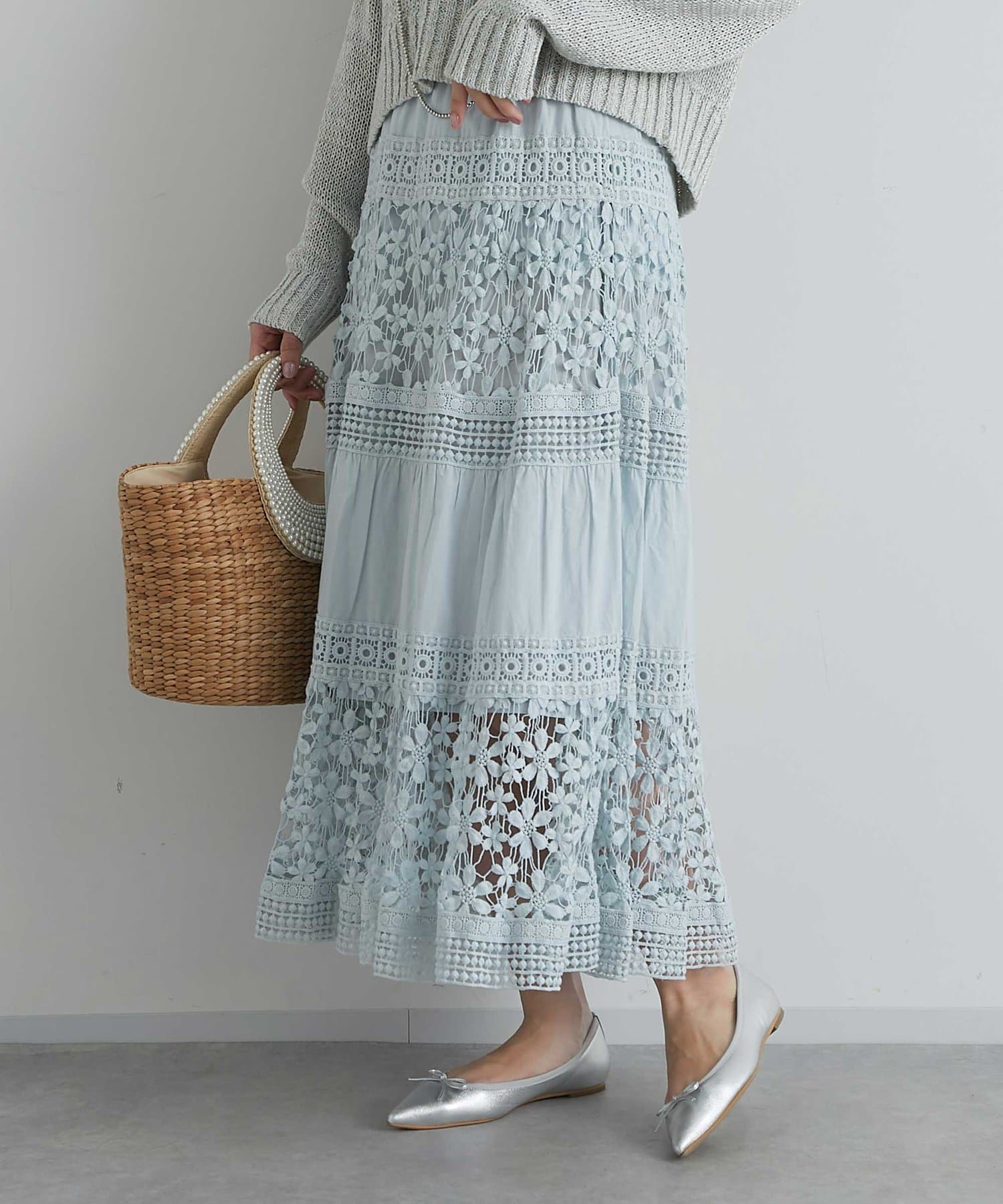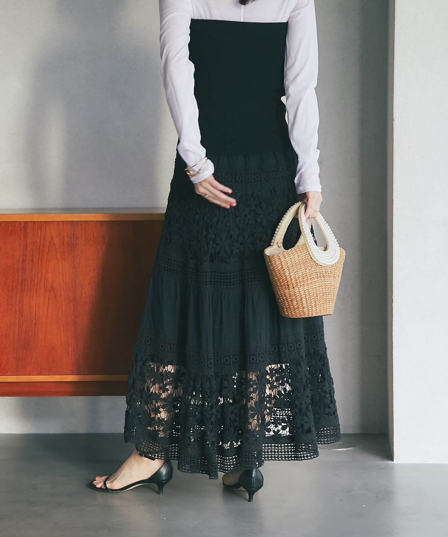 【ホワイト復刻!新色登場】コットンレースティアードマキシスカート