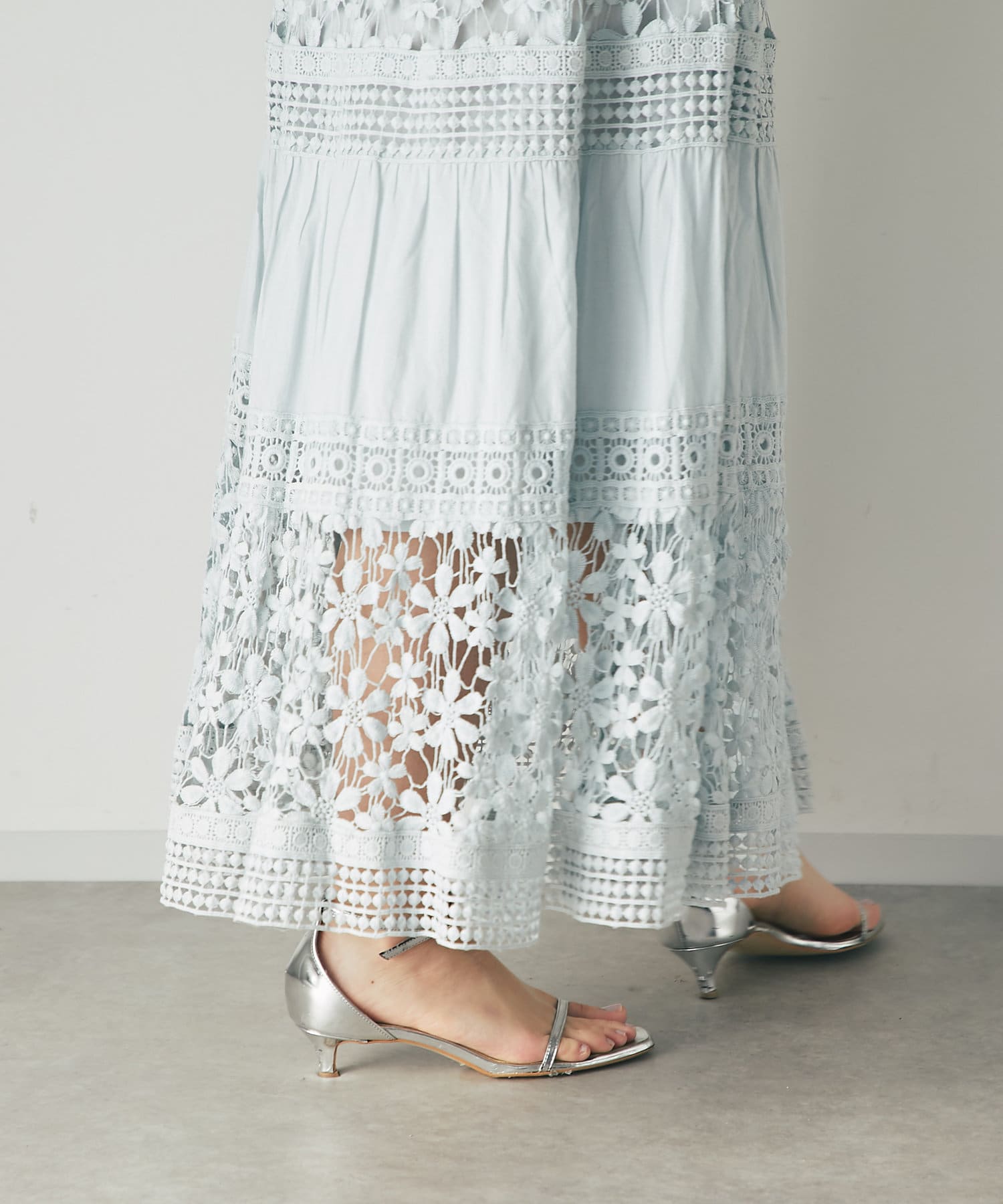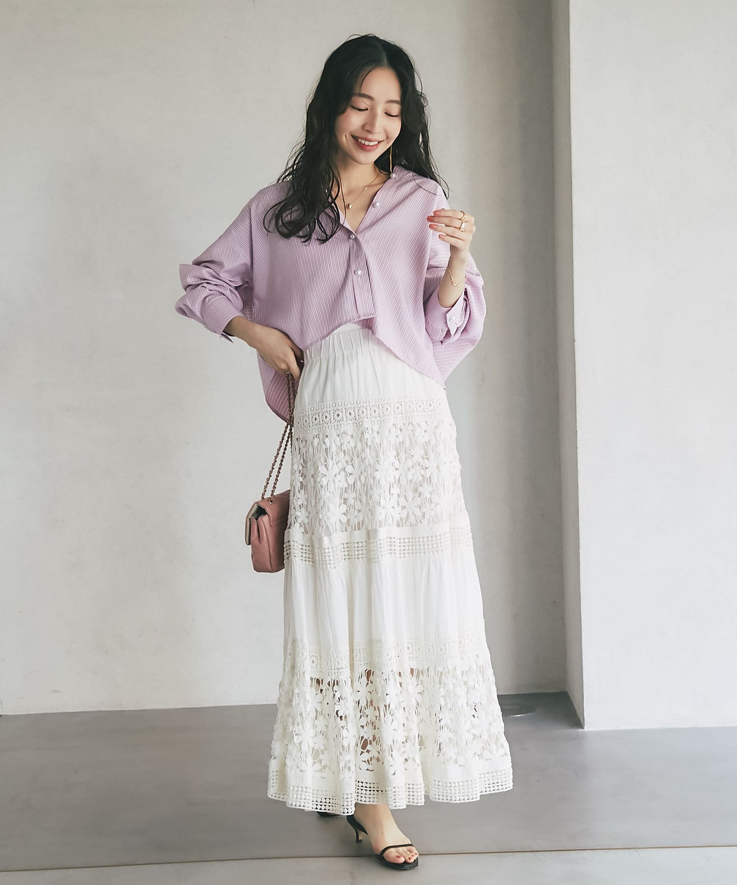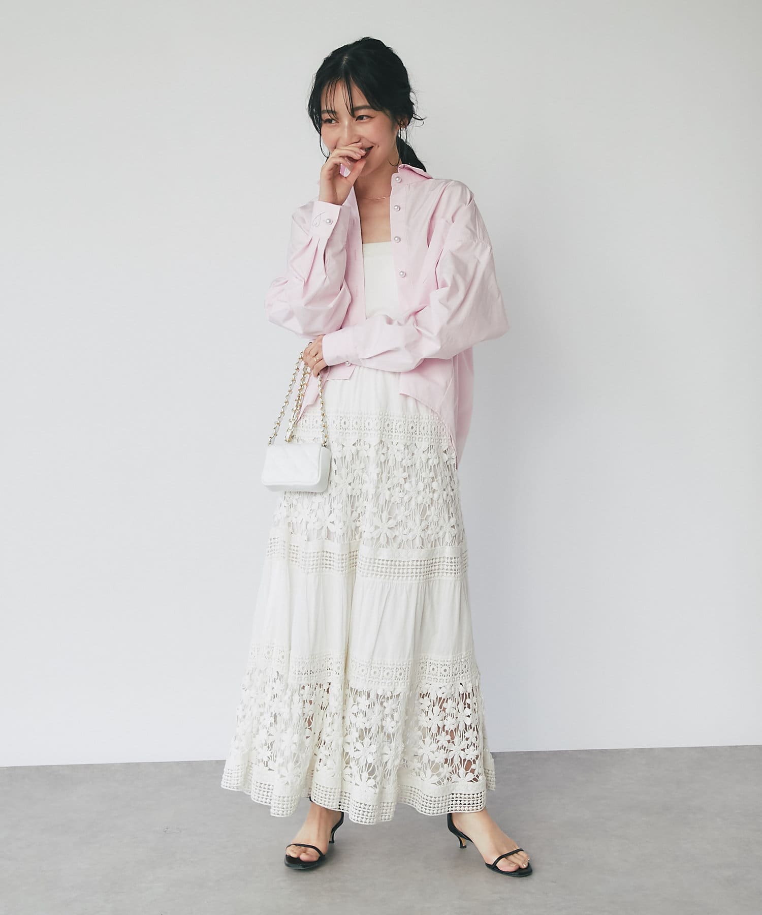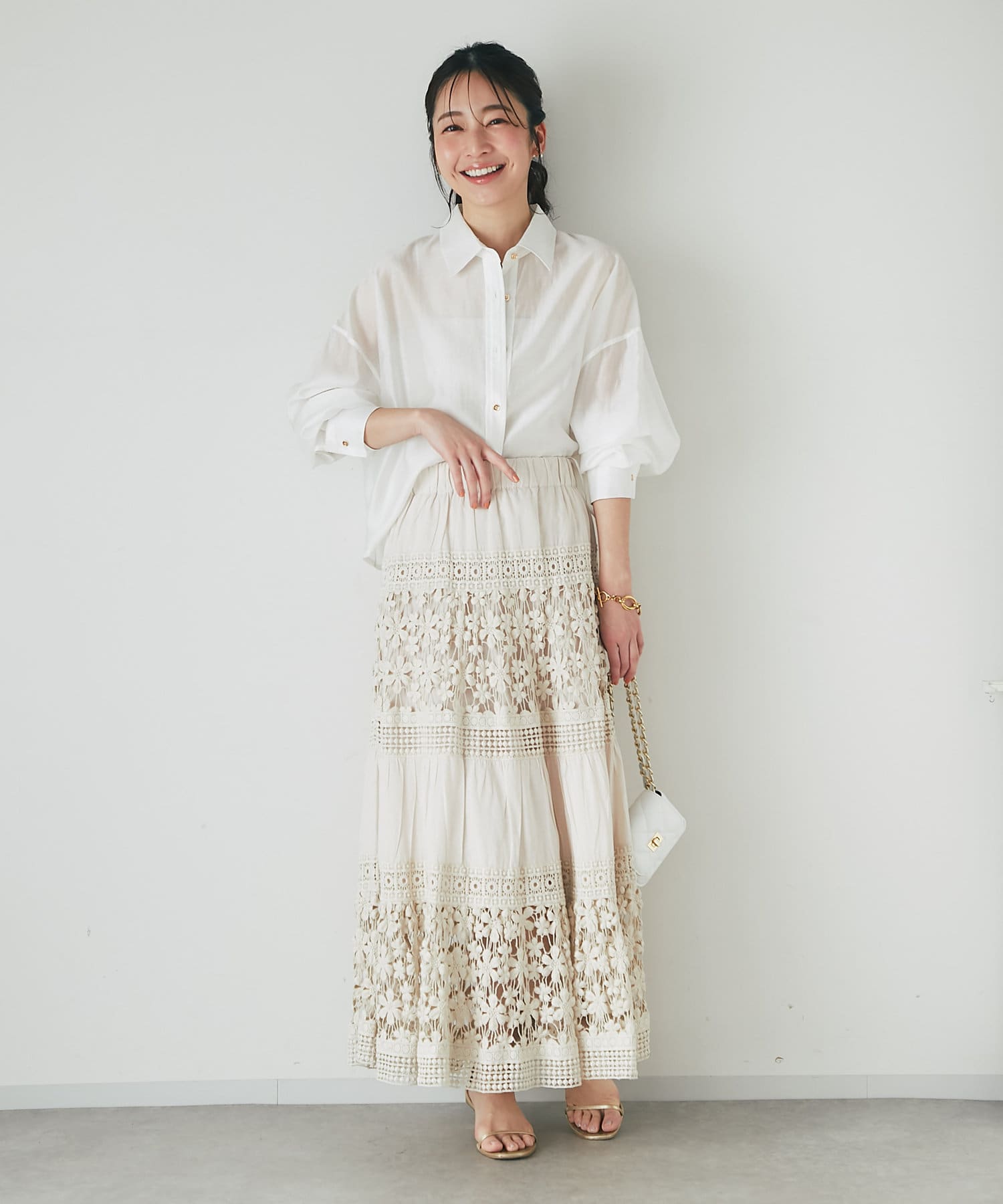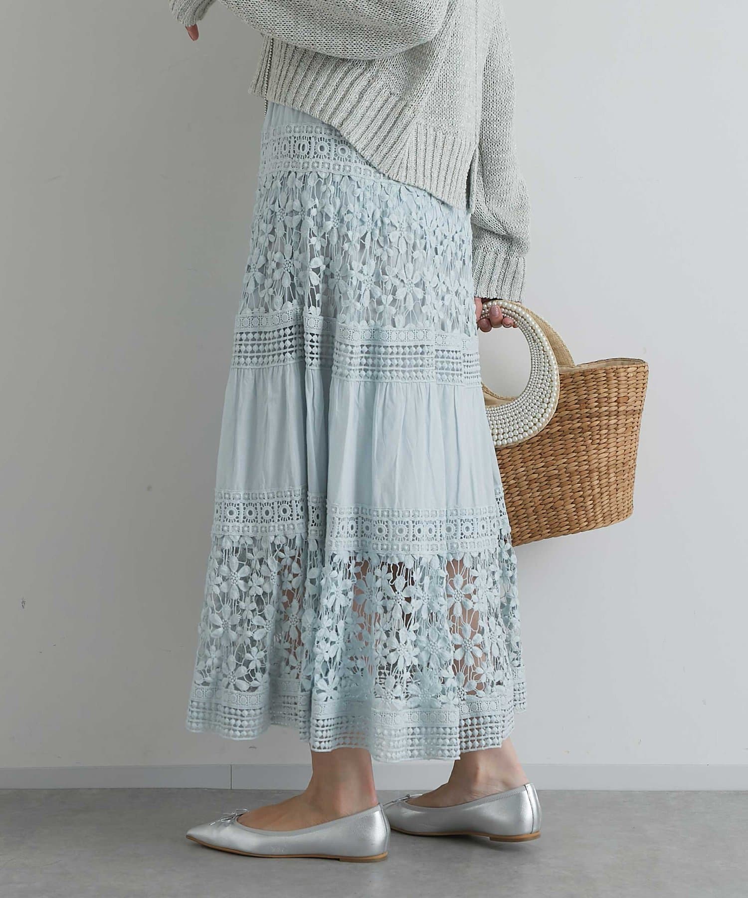 【ホワイト復刻!新色登場】コットンレースティアードマキシスカート