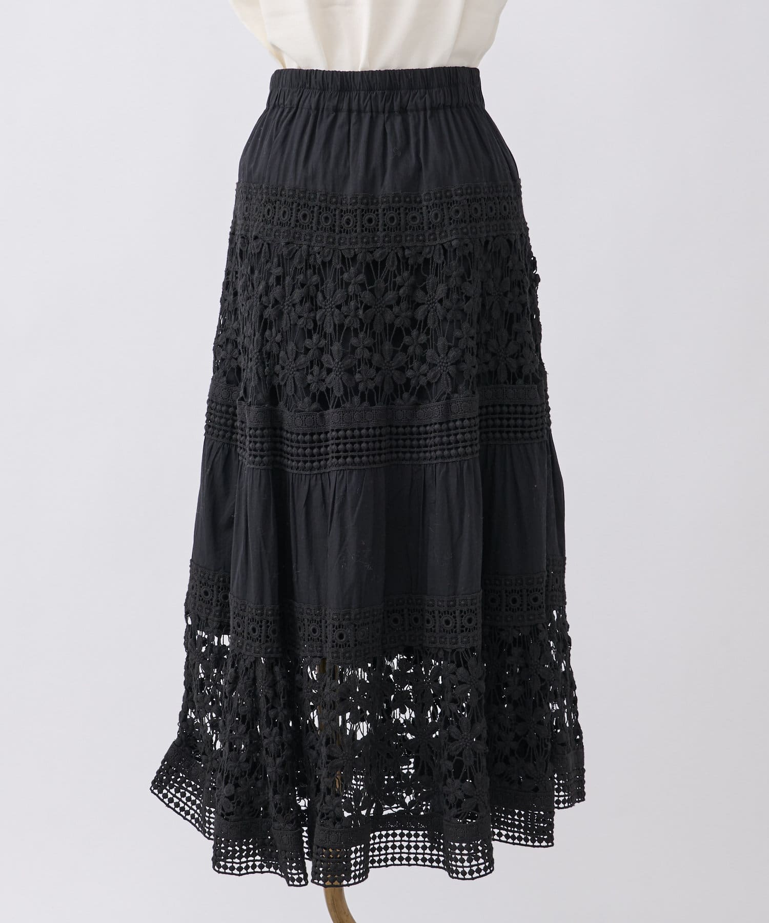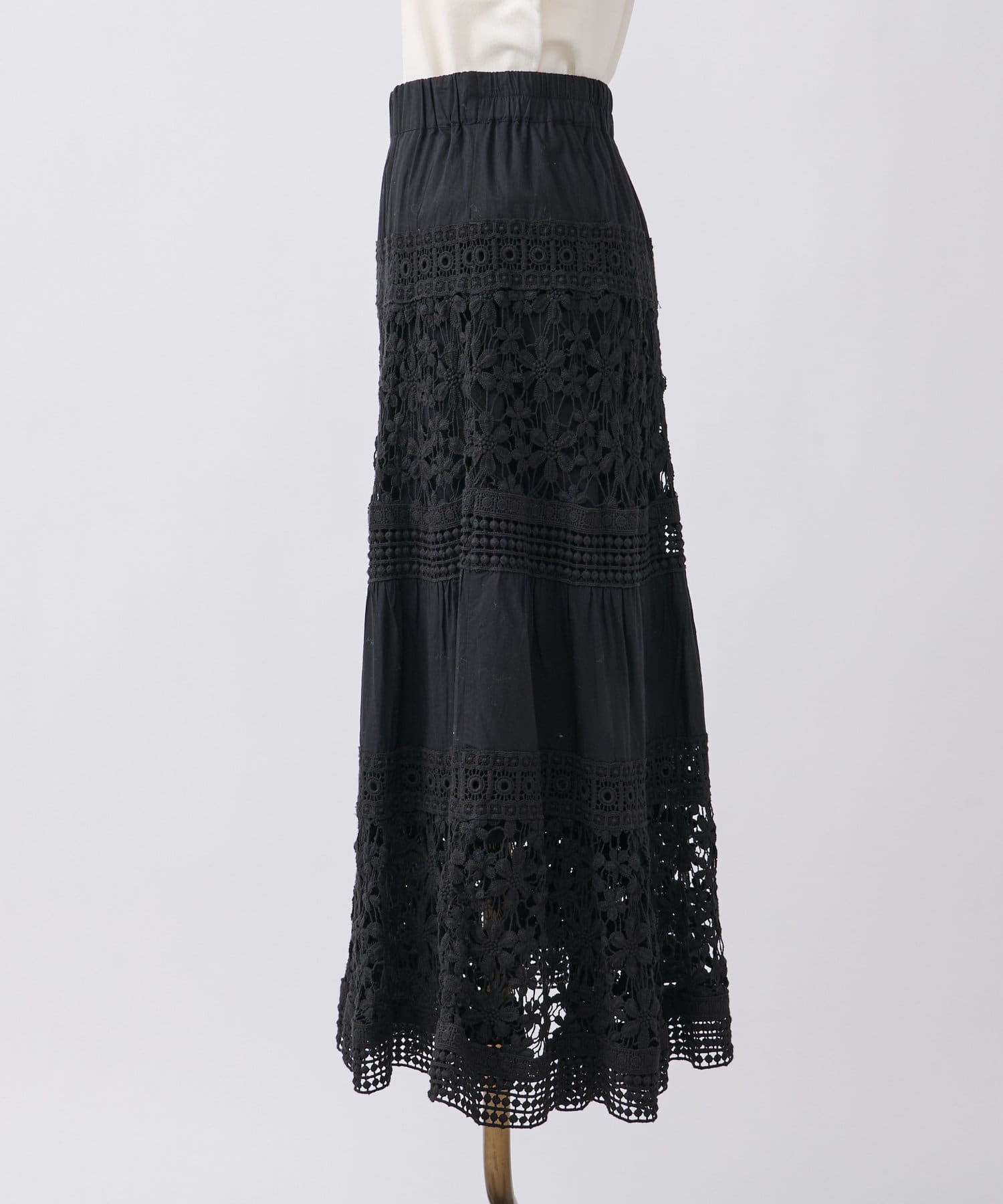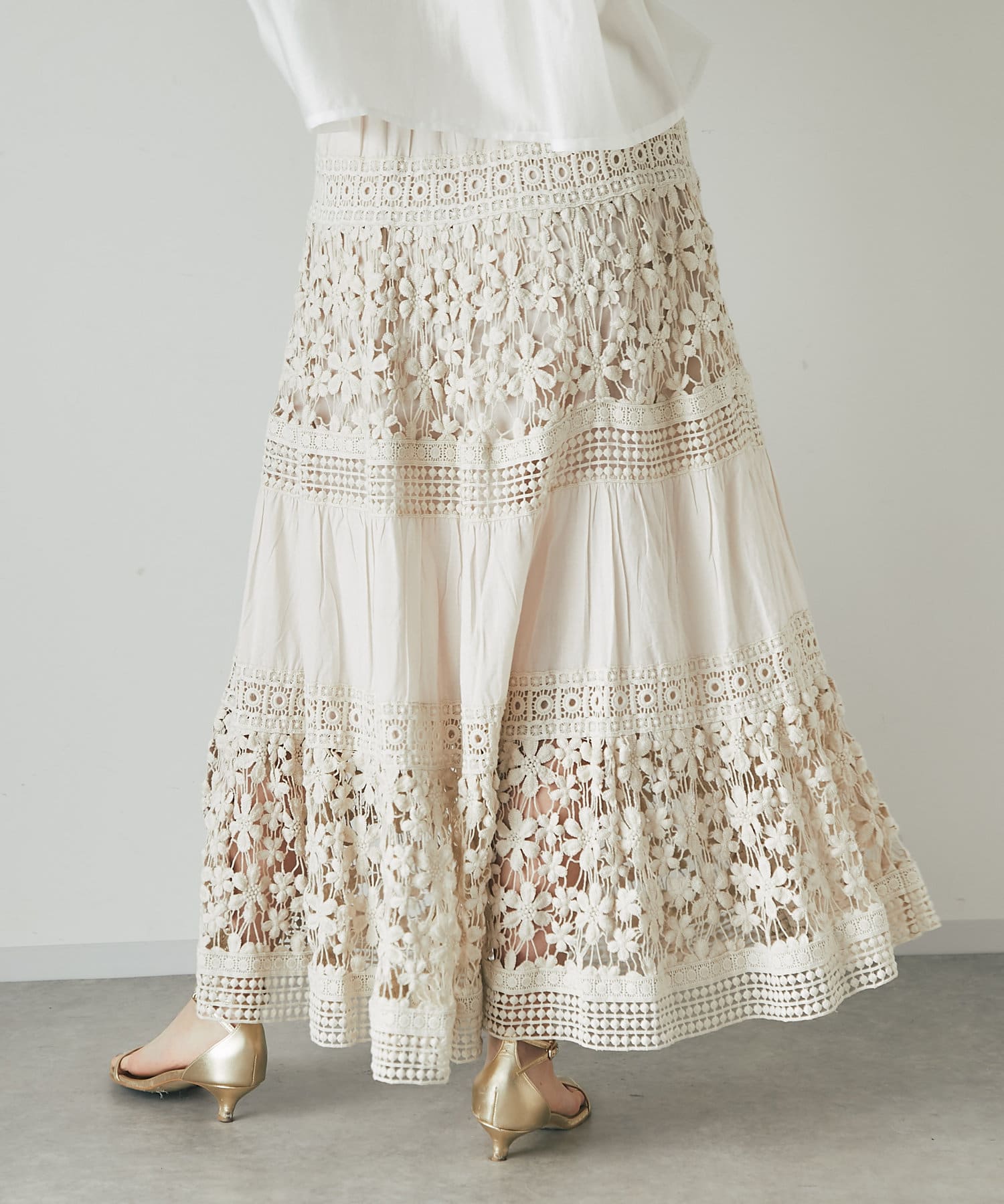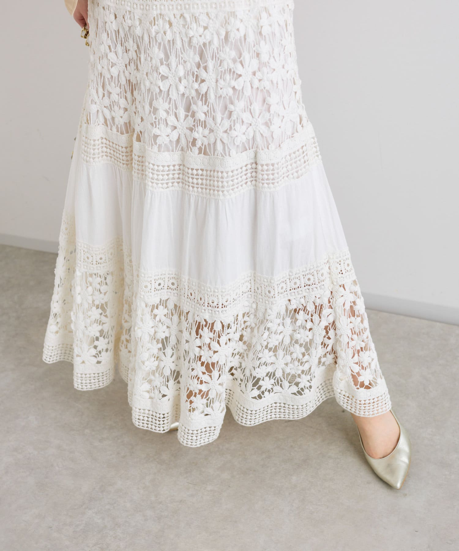 ふっくらした編地のコットンレースが魅力的なマキシスカートです。