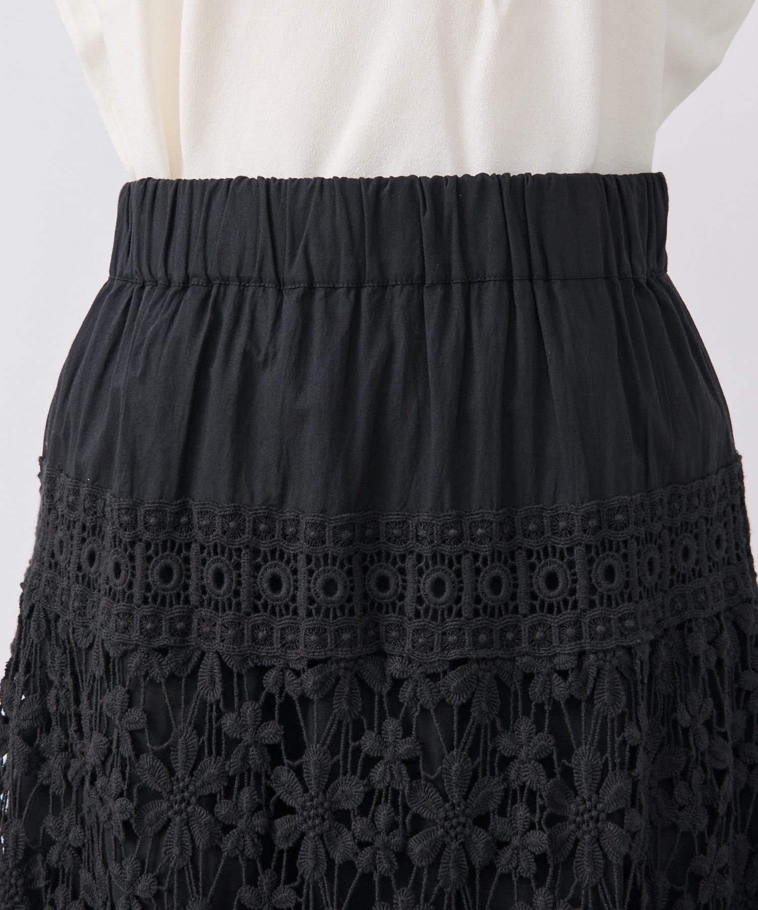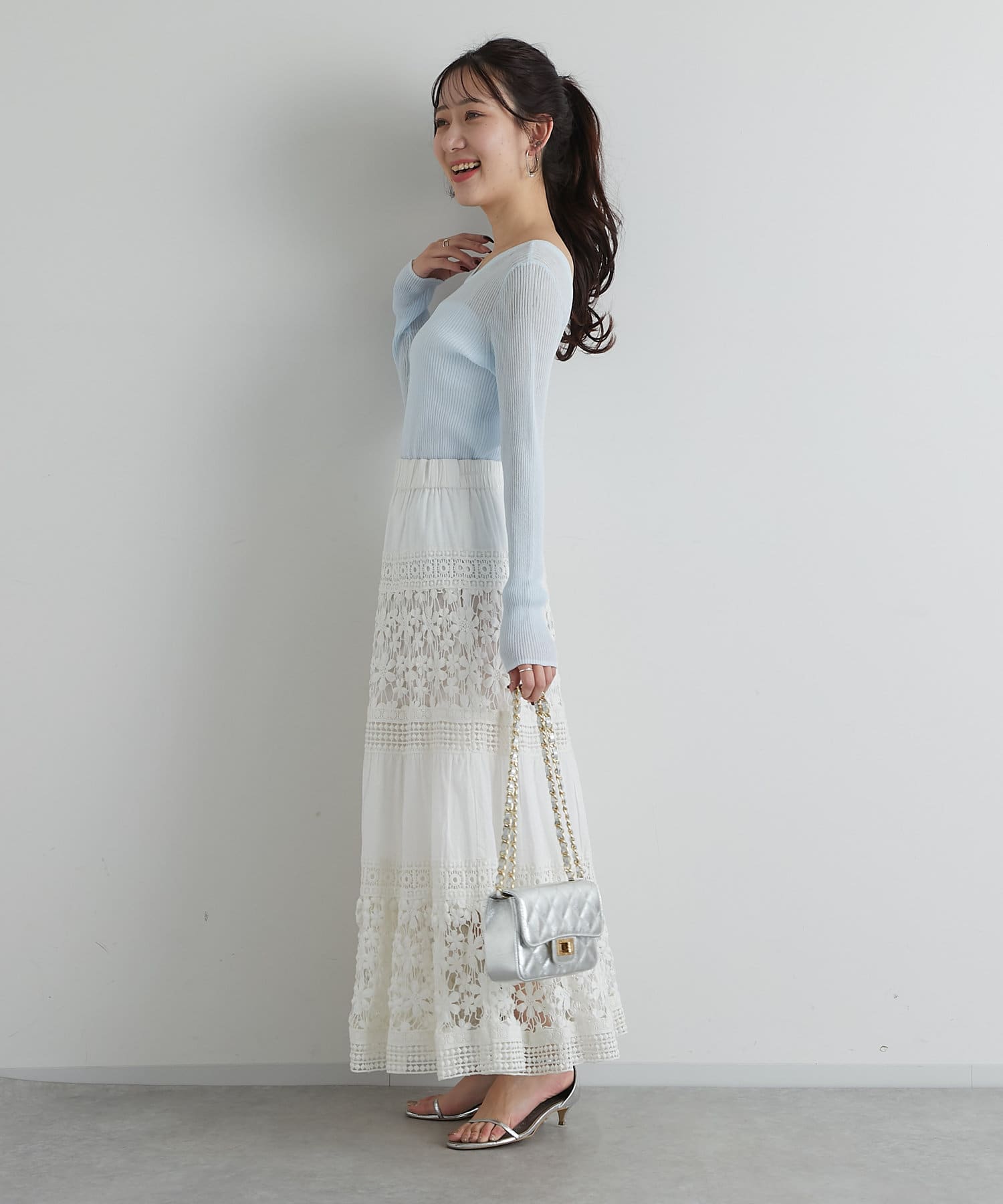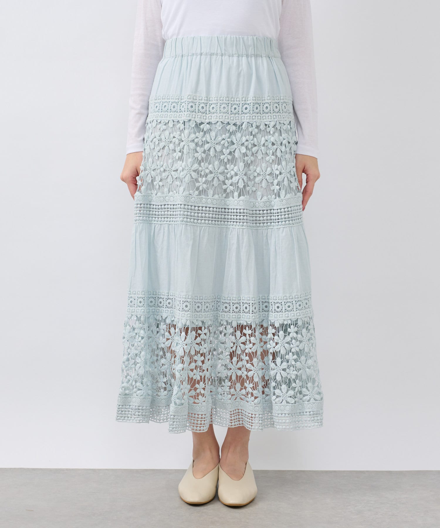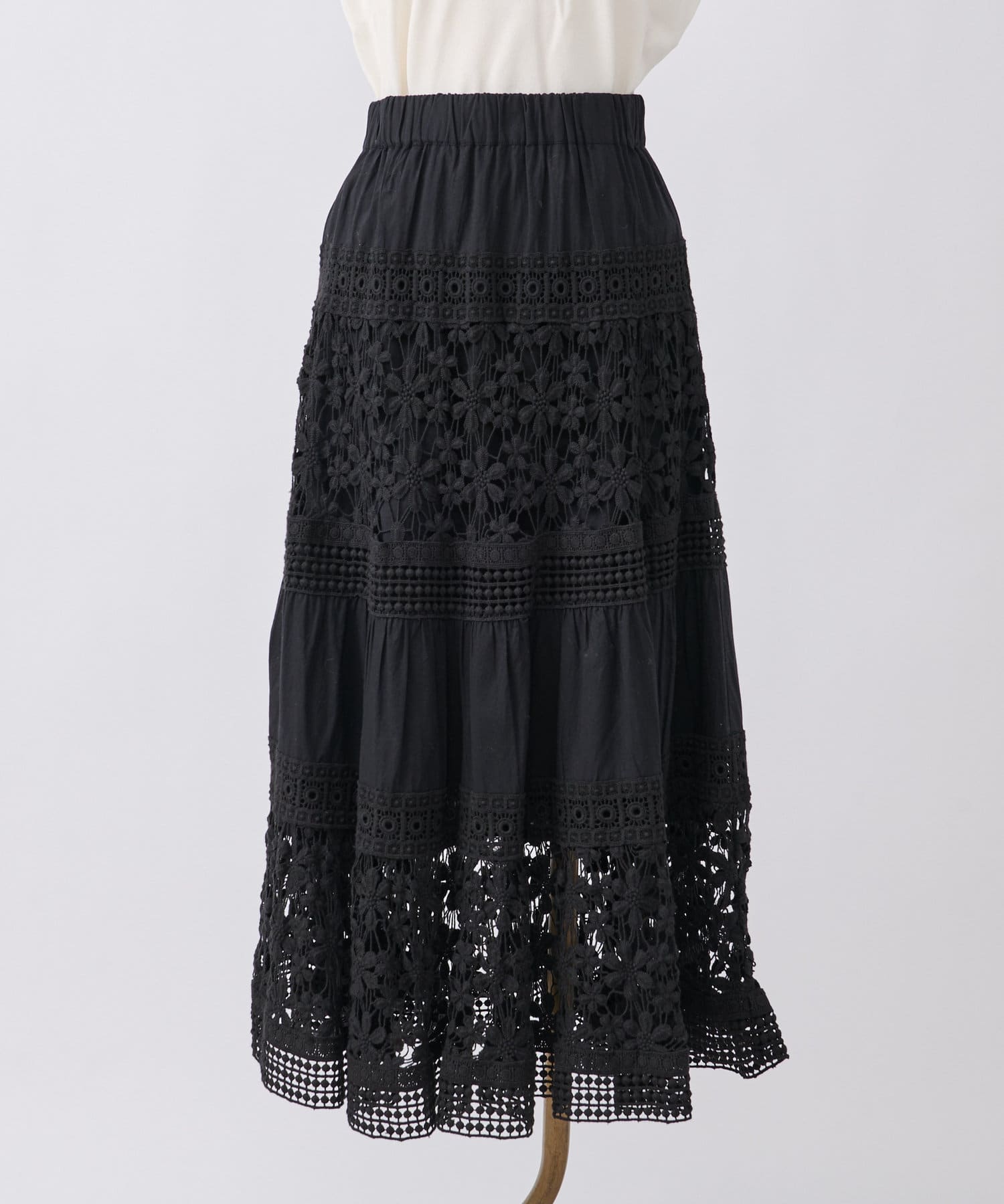 ふっくらした編地のコットンレースが魅力的なマキシスカートです。