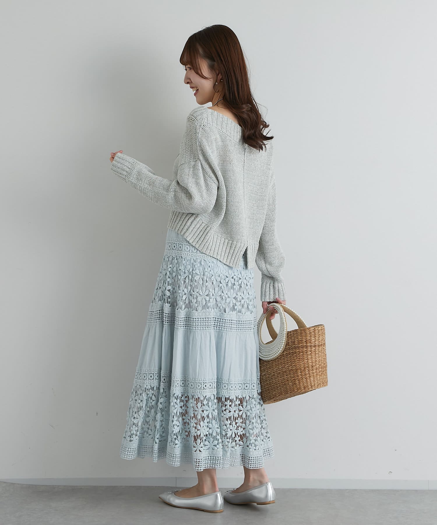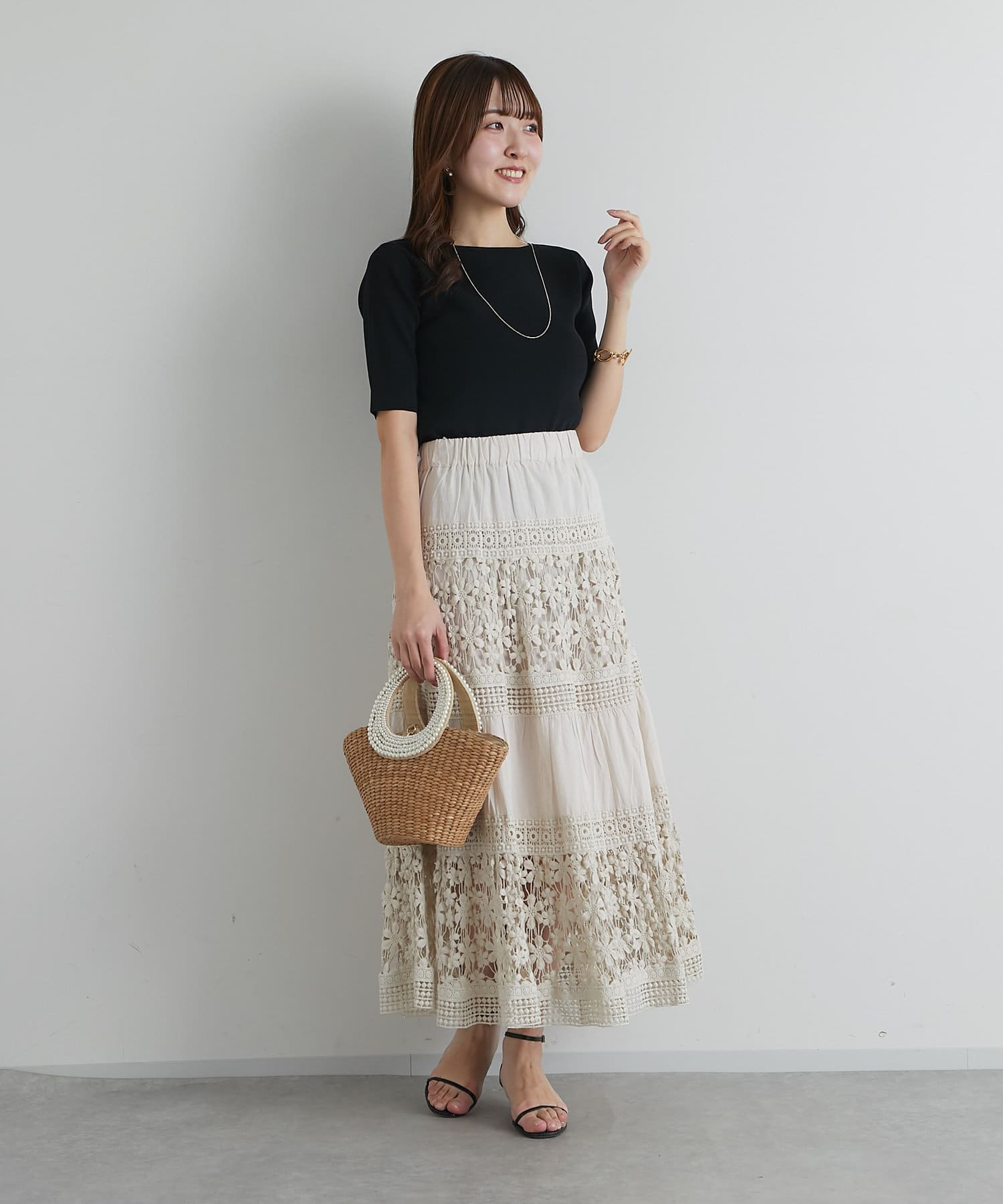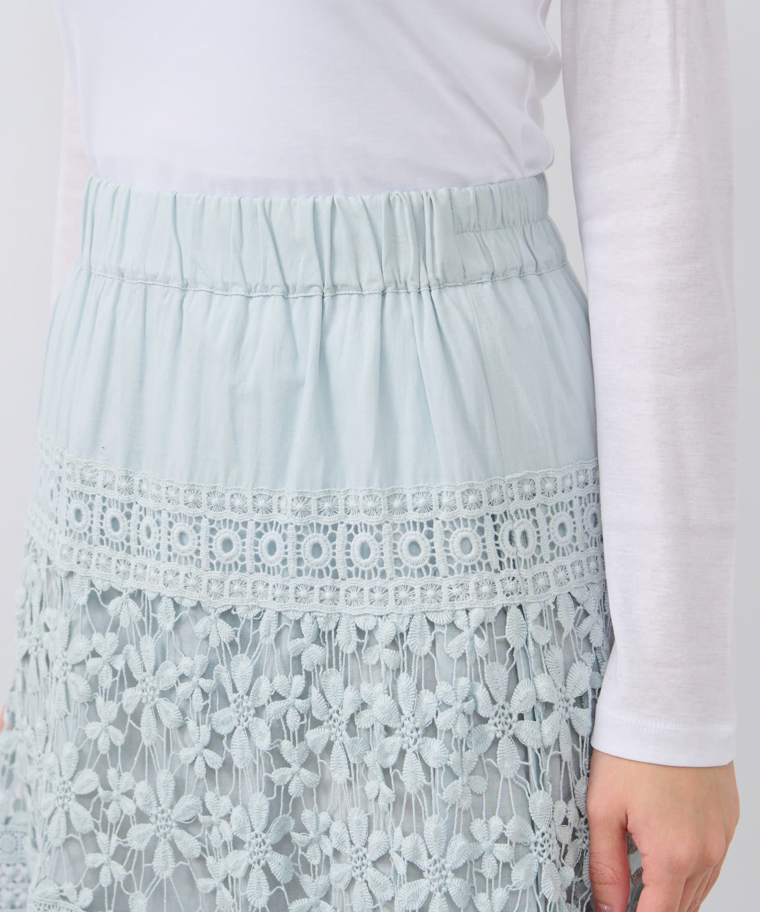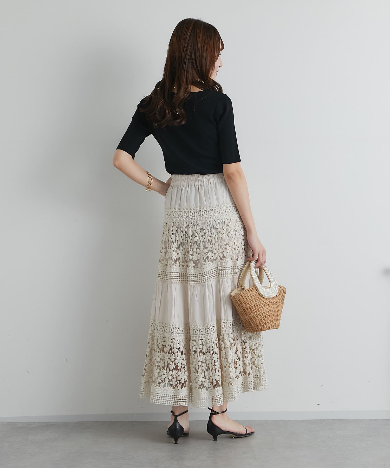 ふっくらした編地のコットンレースが魅力的なマキシスカートです。
