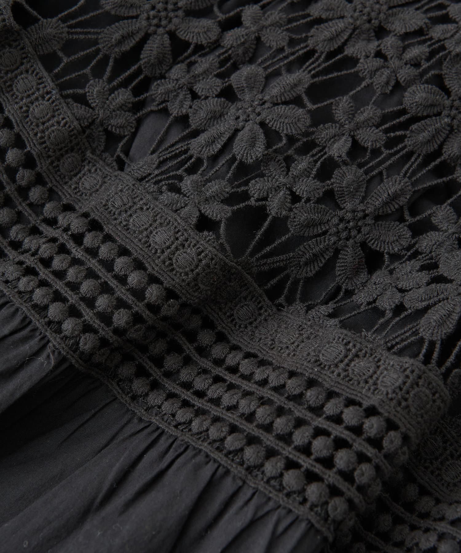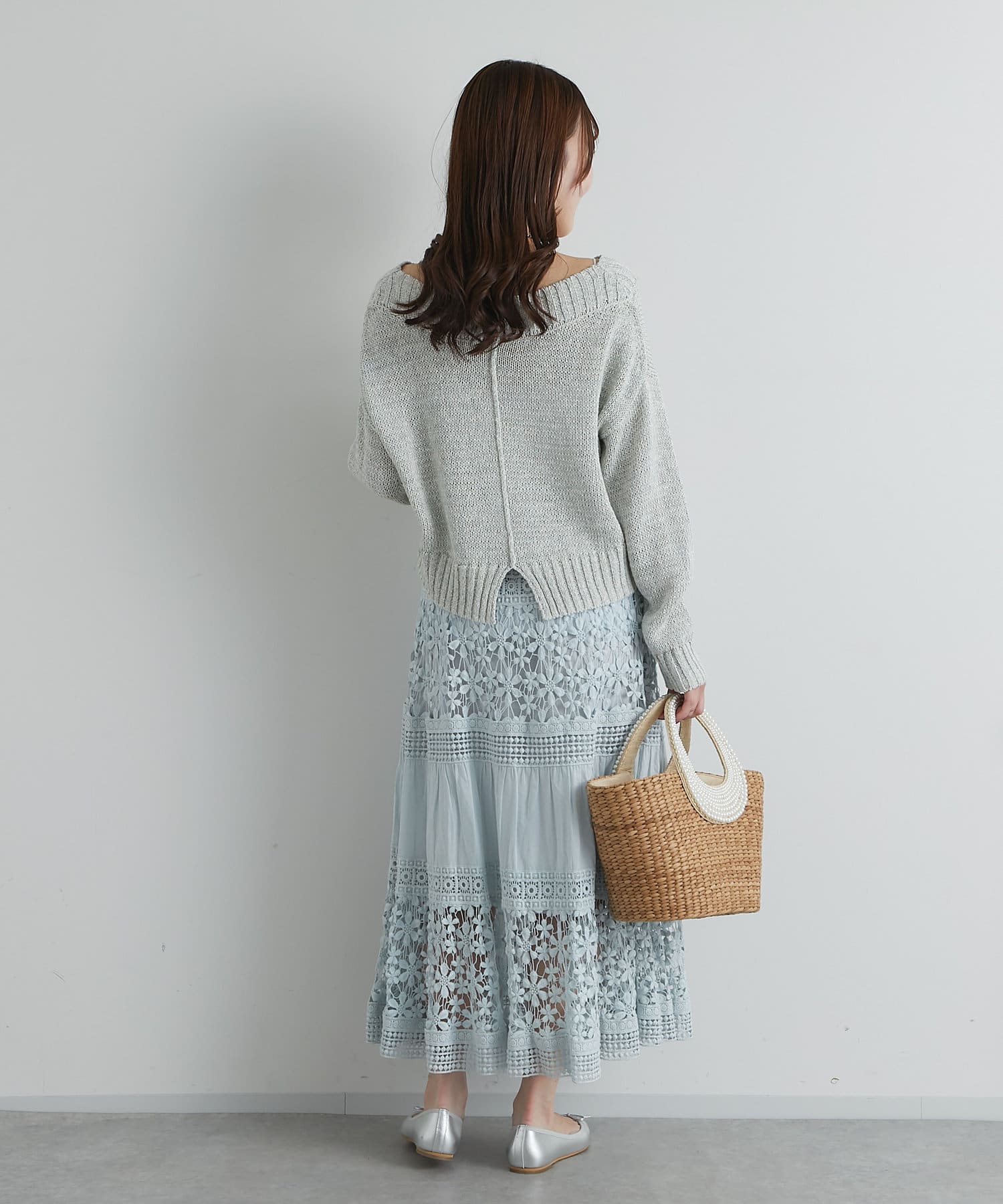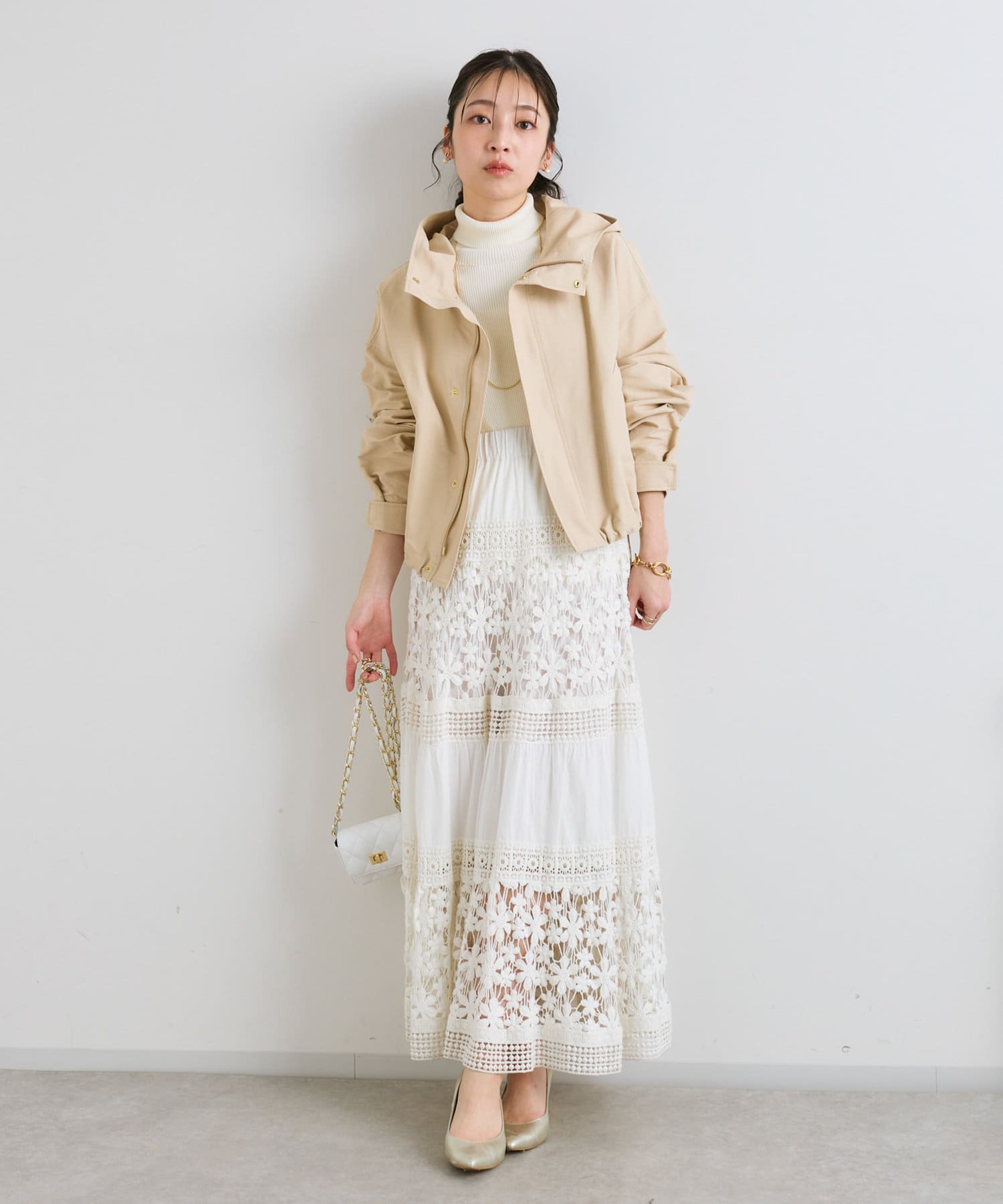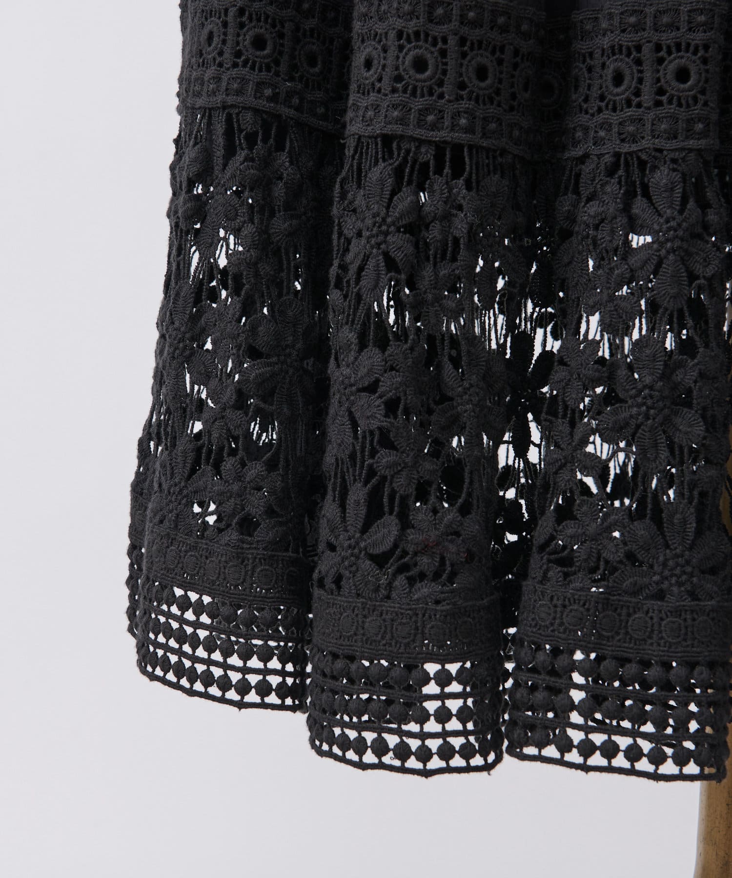 ふっくらした編地のコットンレースが魅力的なマキシスカートです。