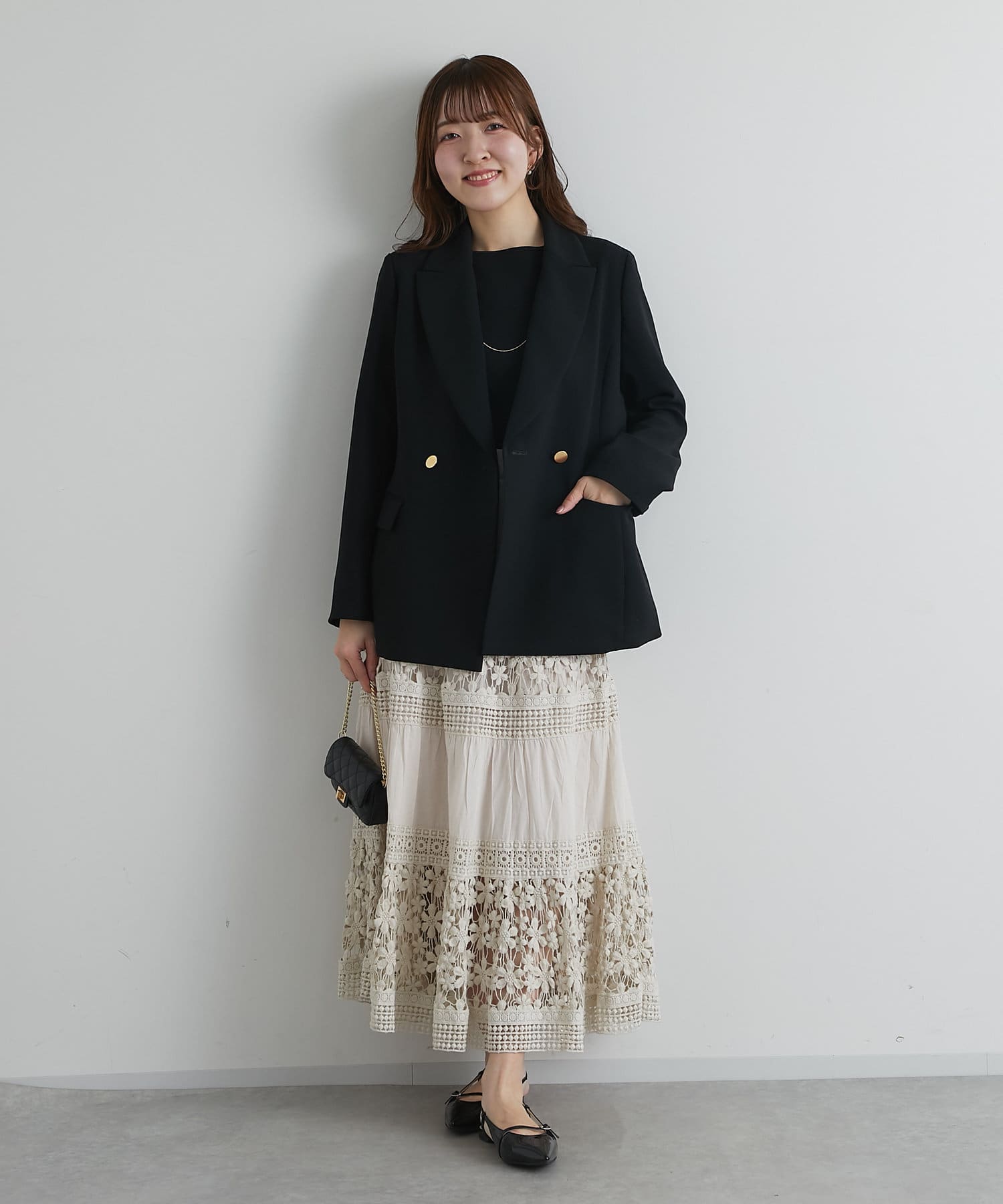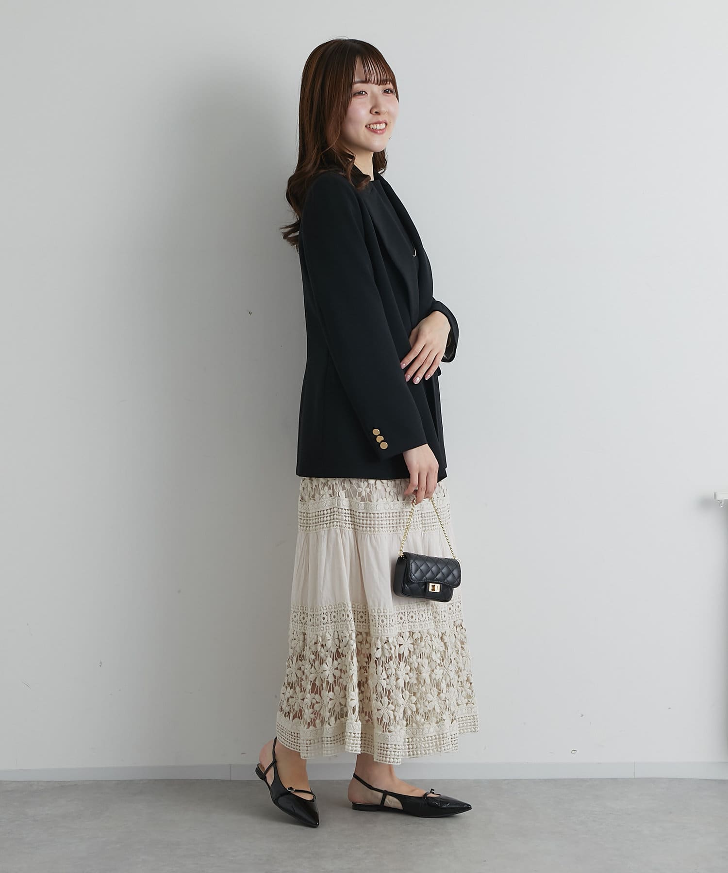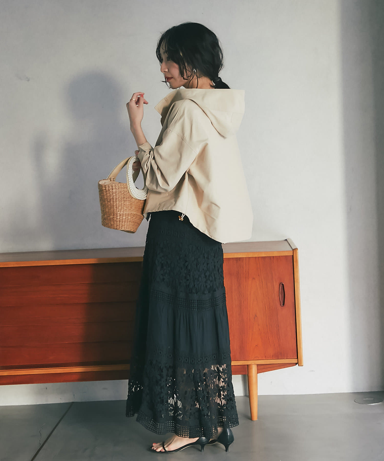 裾に向かって広がるシルエットが美しく、透け感のある裾が足元を軽く見せてくれます。