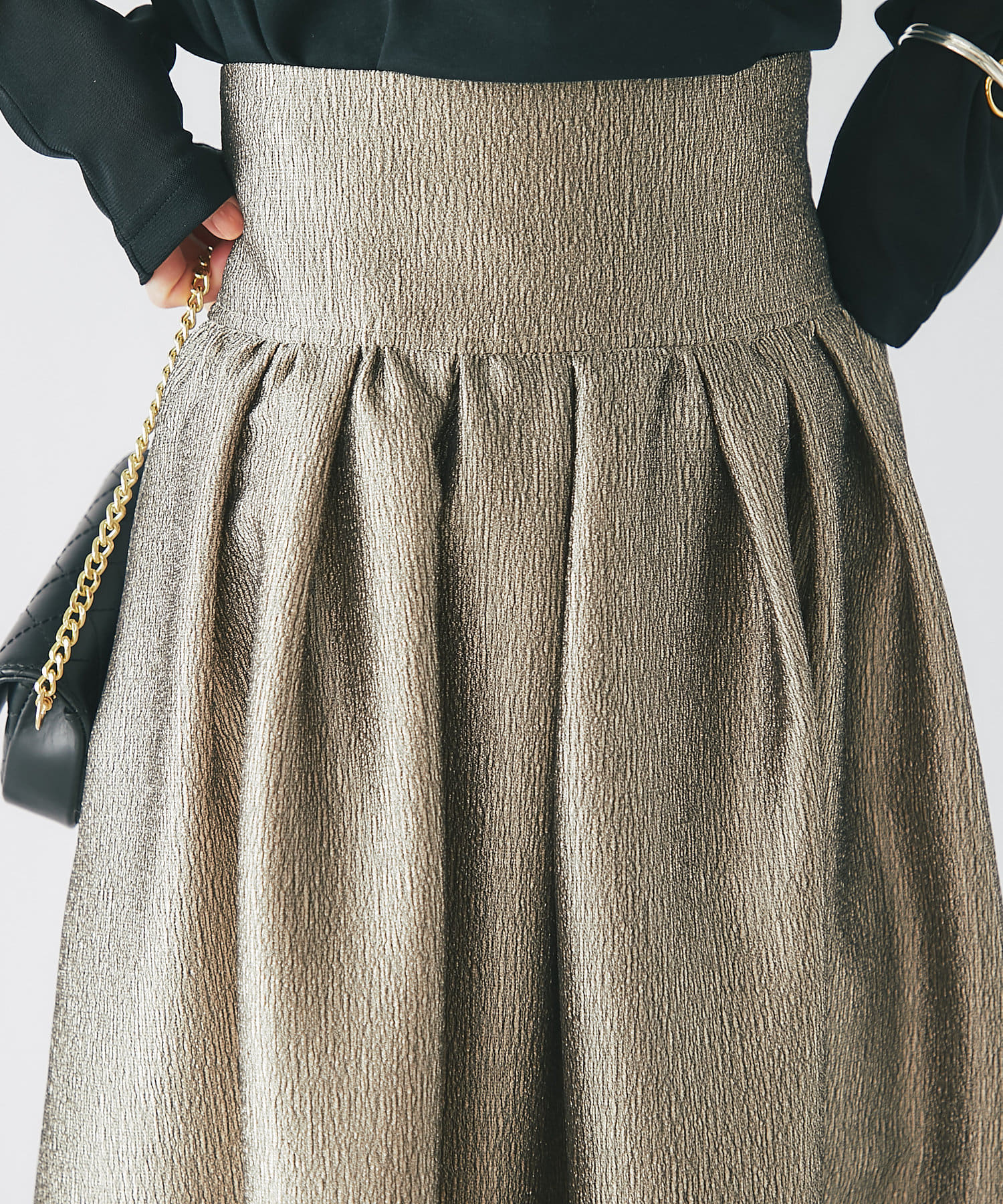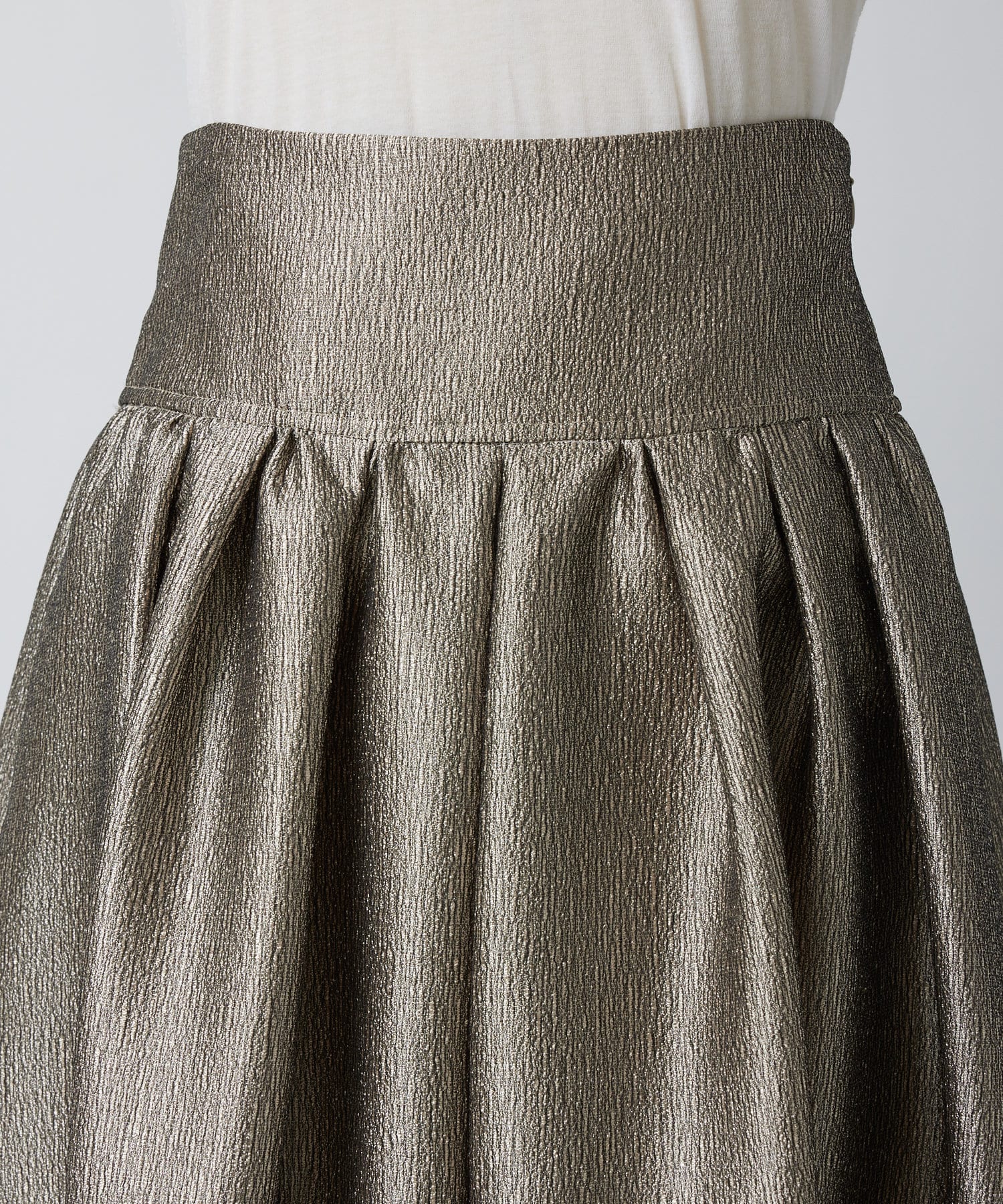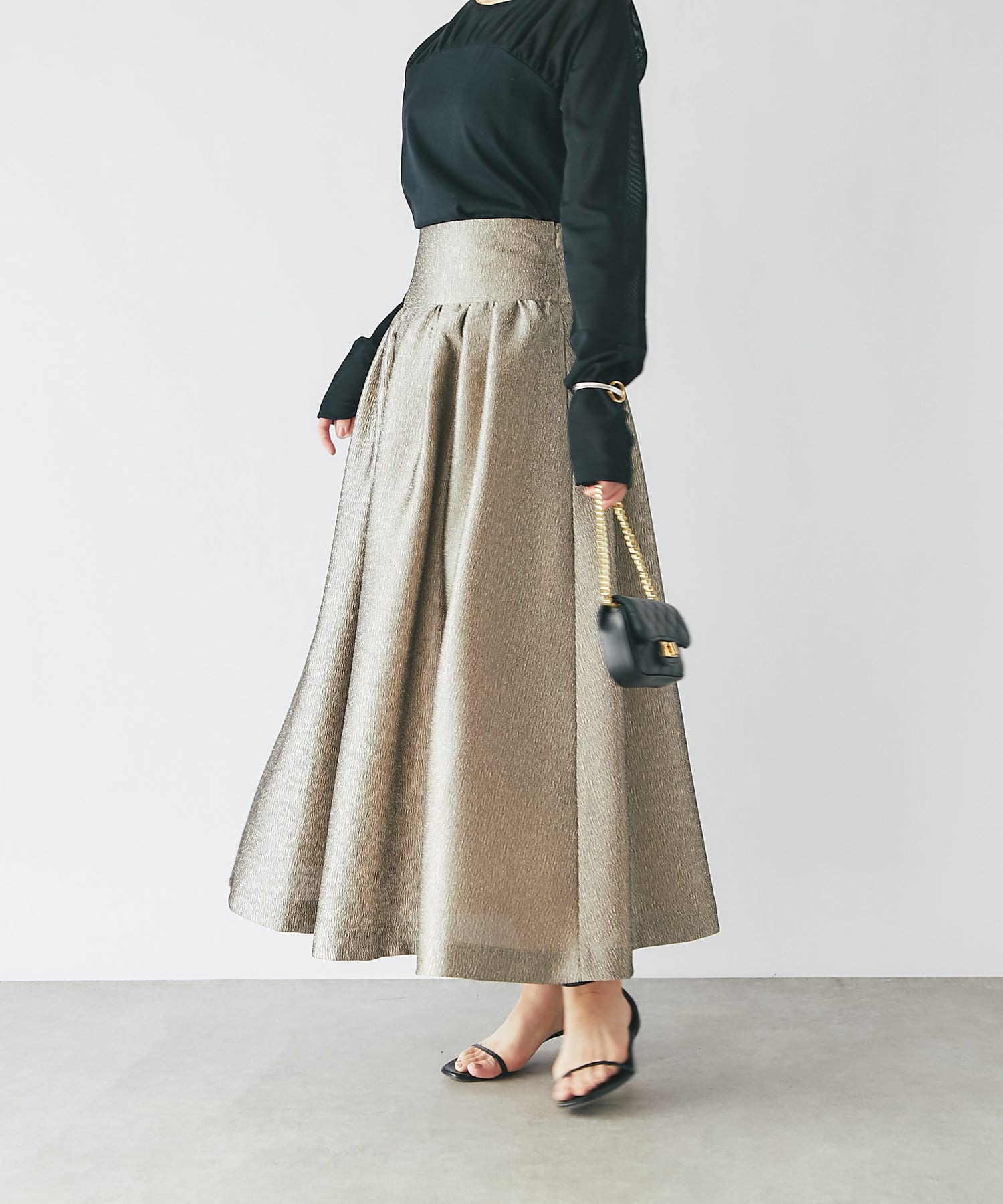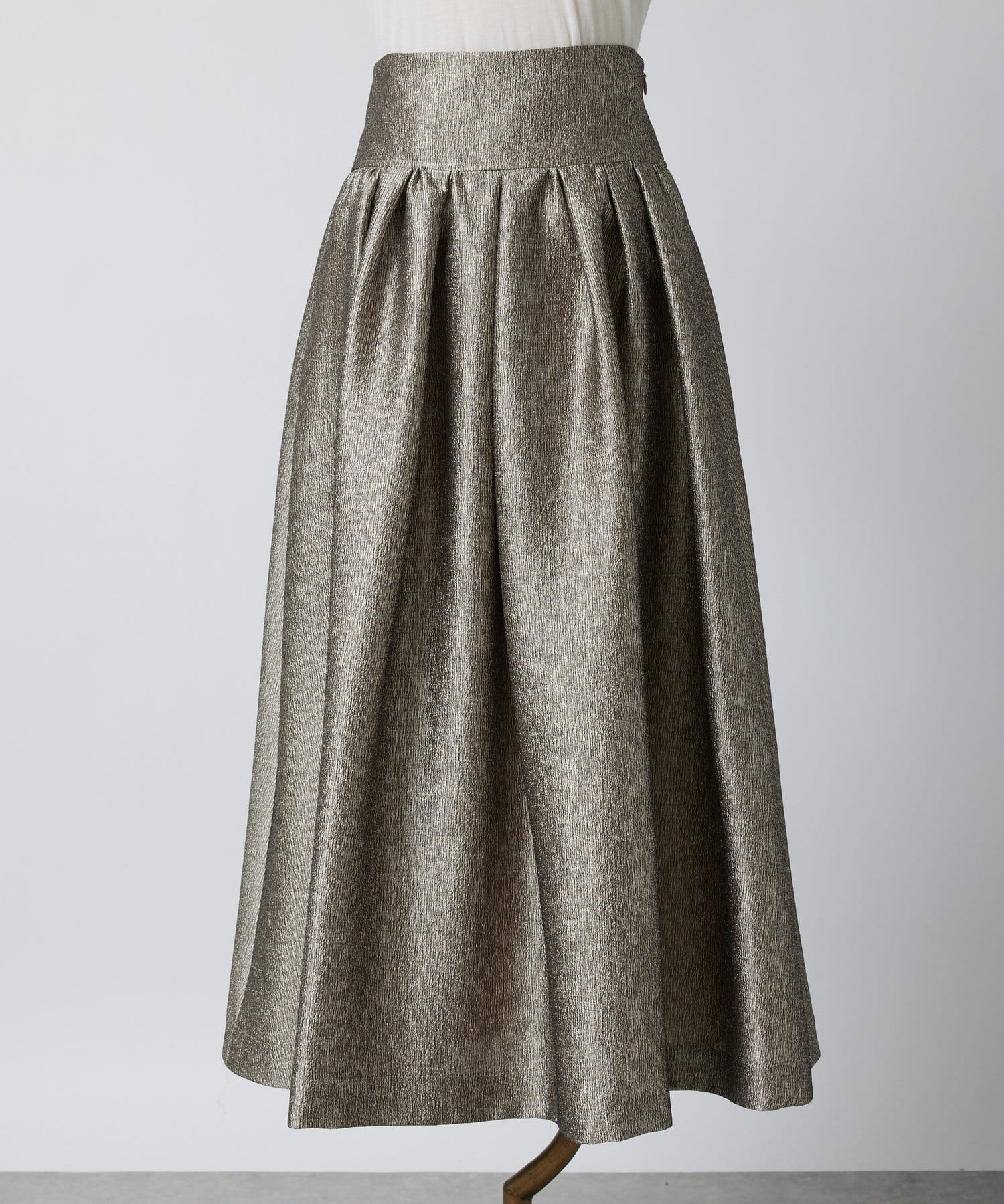 メタリックの煌めきある立体的なジャガード素材を使用した華やかなフレアスカート。