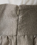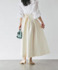しっかりとハリのある生地に、たっぷりギャザーとタックを入れてボリューム感あるデザインに仕上げました。