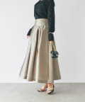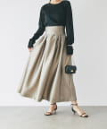 リッチな光沢感や長めのミモレ丈が、品よくドレッシーな着こなしにも応えます。