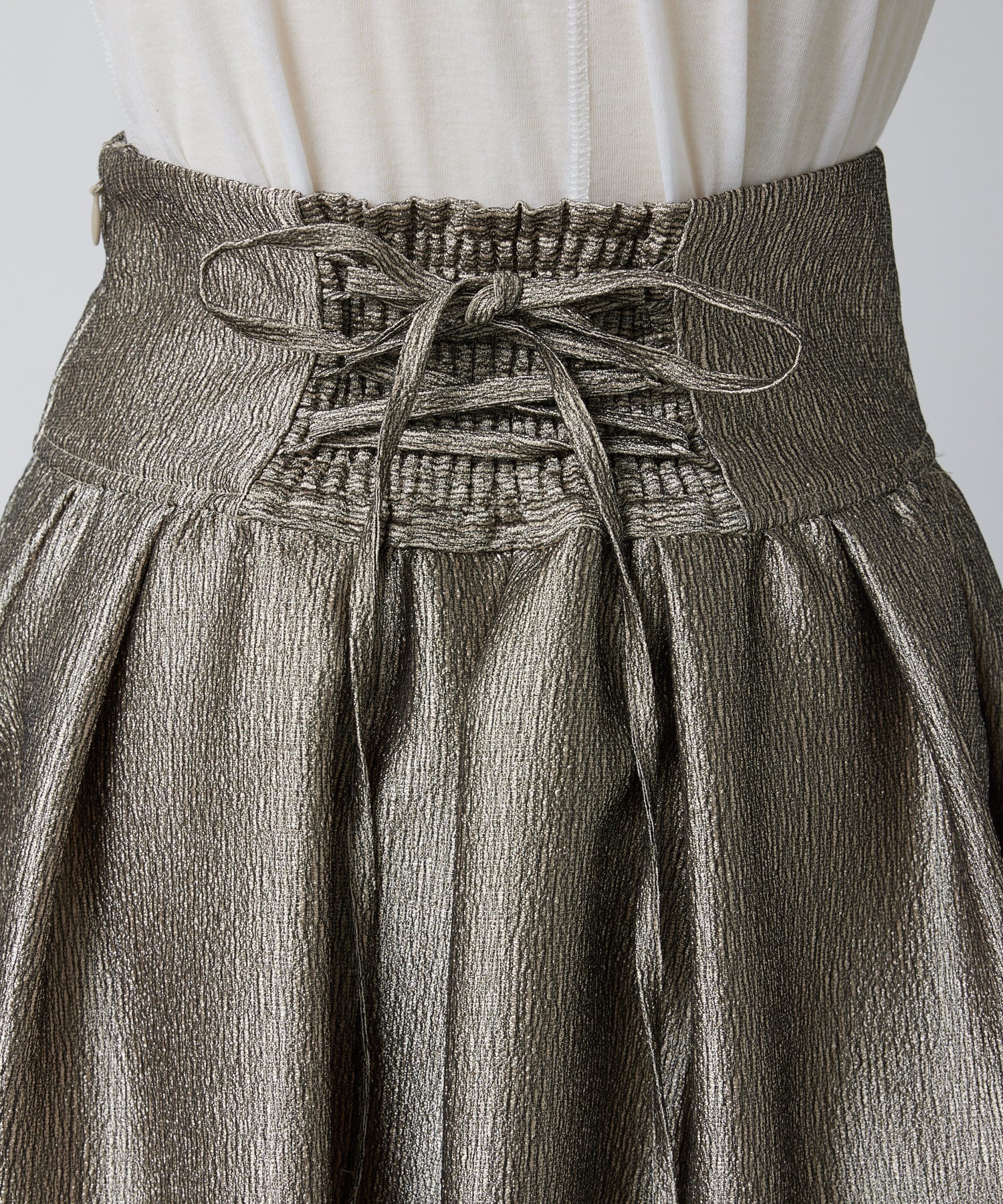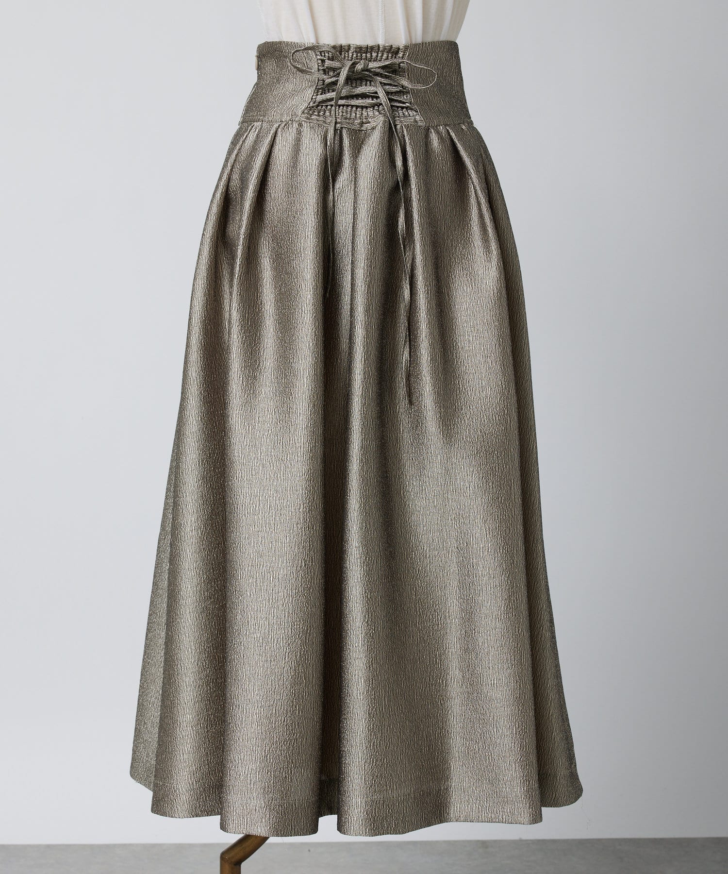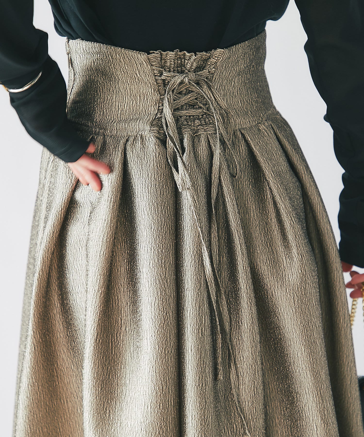 【お上品・スタイルアップ】メタルジャガードバックレースアップスカート
