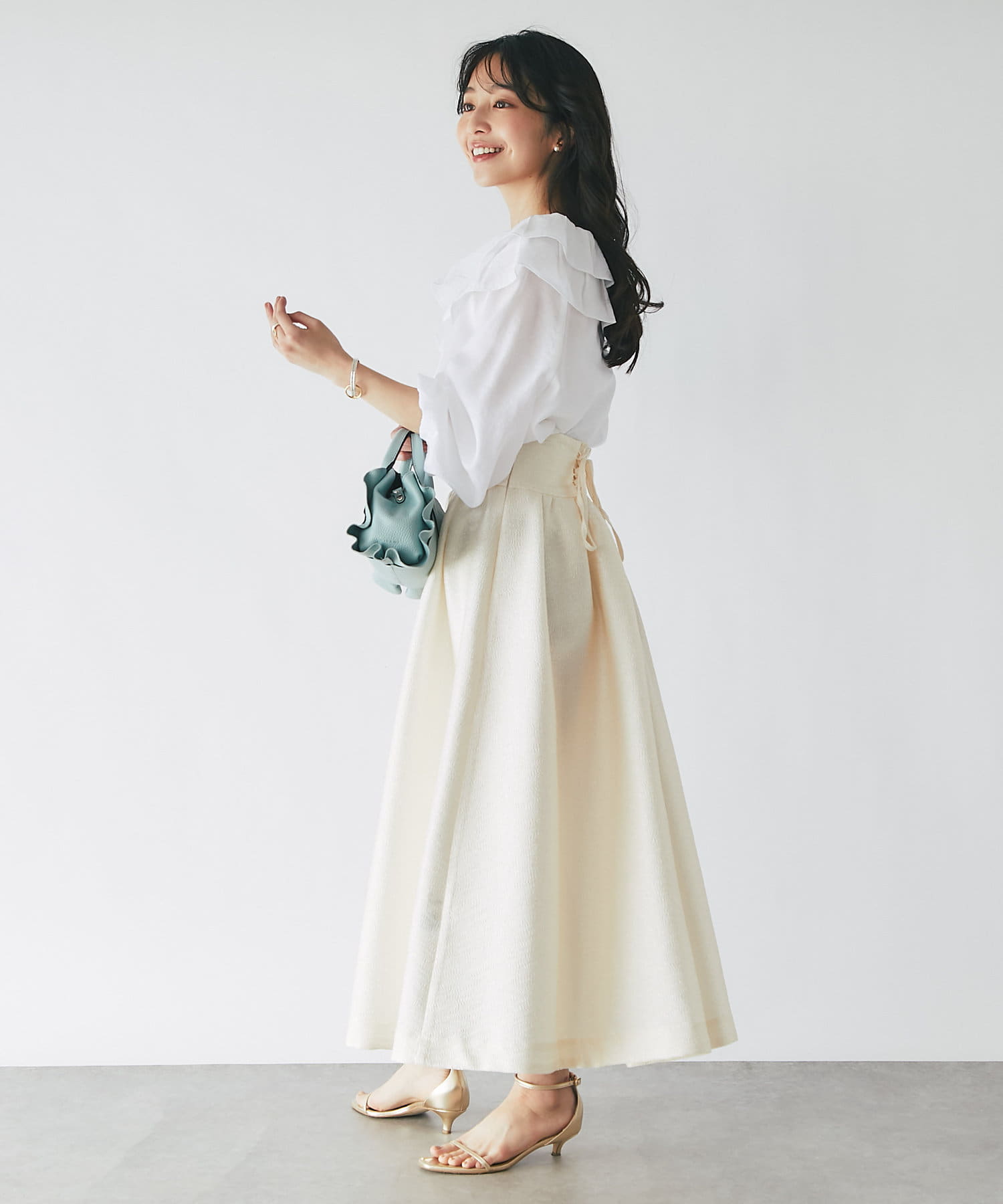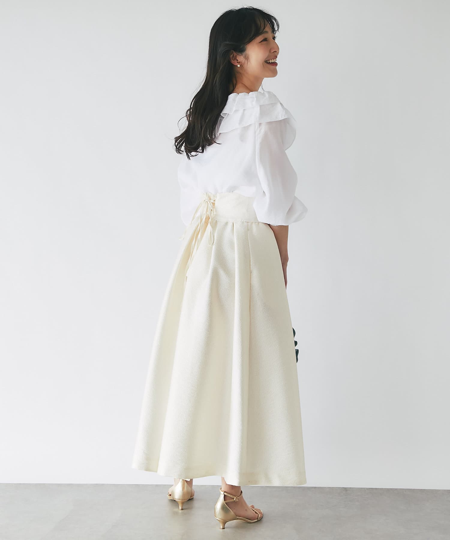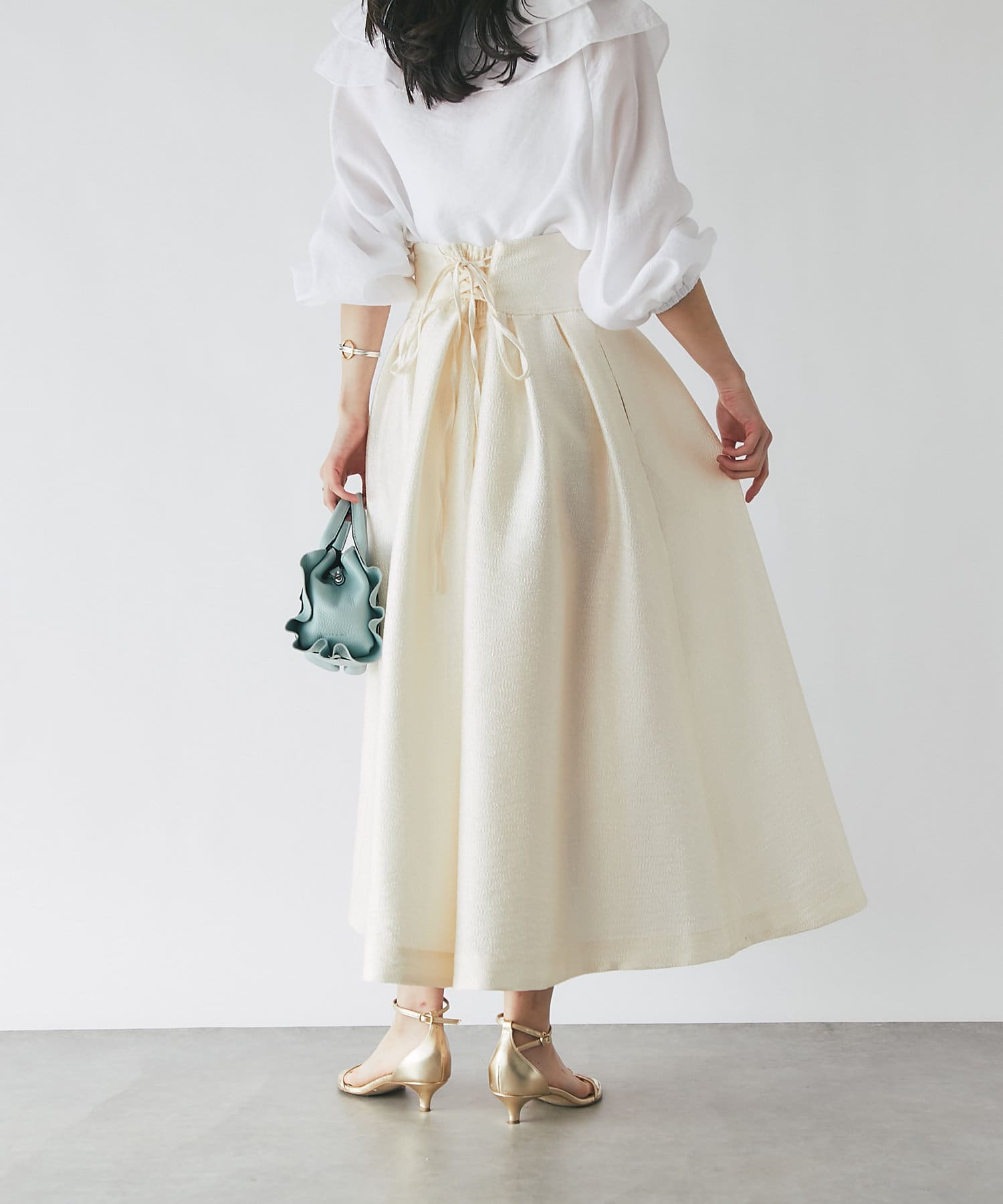 【お上品・スタイルアップ】メタルジャガードバックレースアップスカート