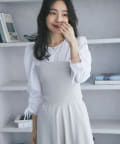 開き過ぎないクルーネックでネックラインも美しく、クロップド丈ですっきり仕上げました。