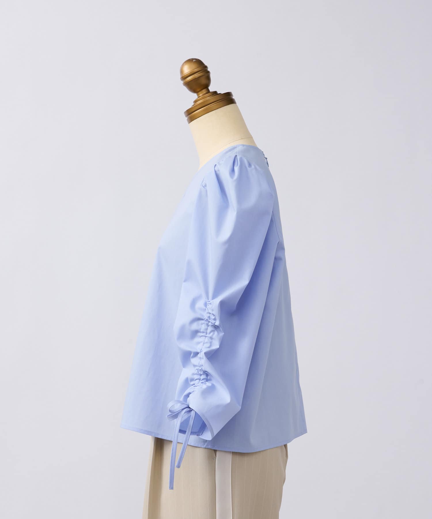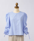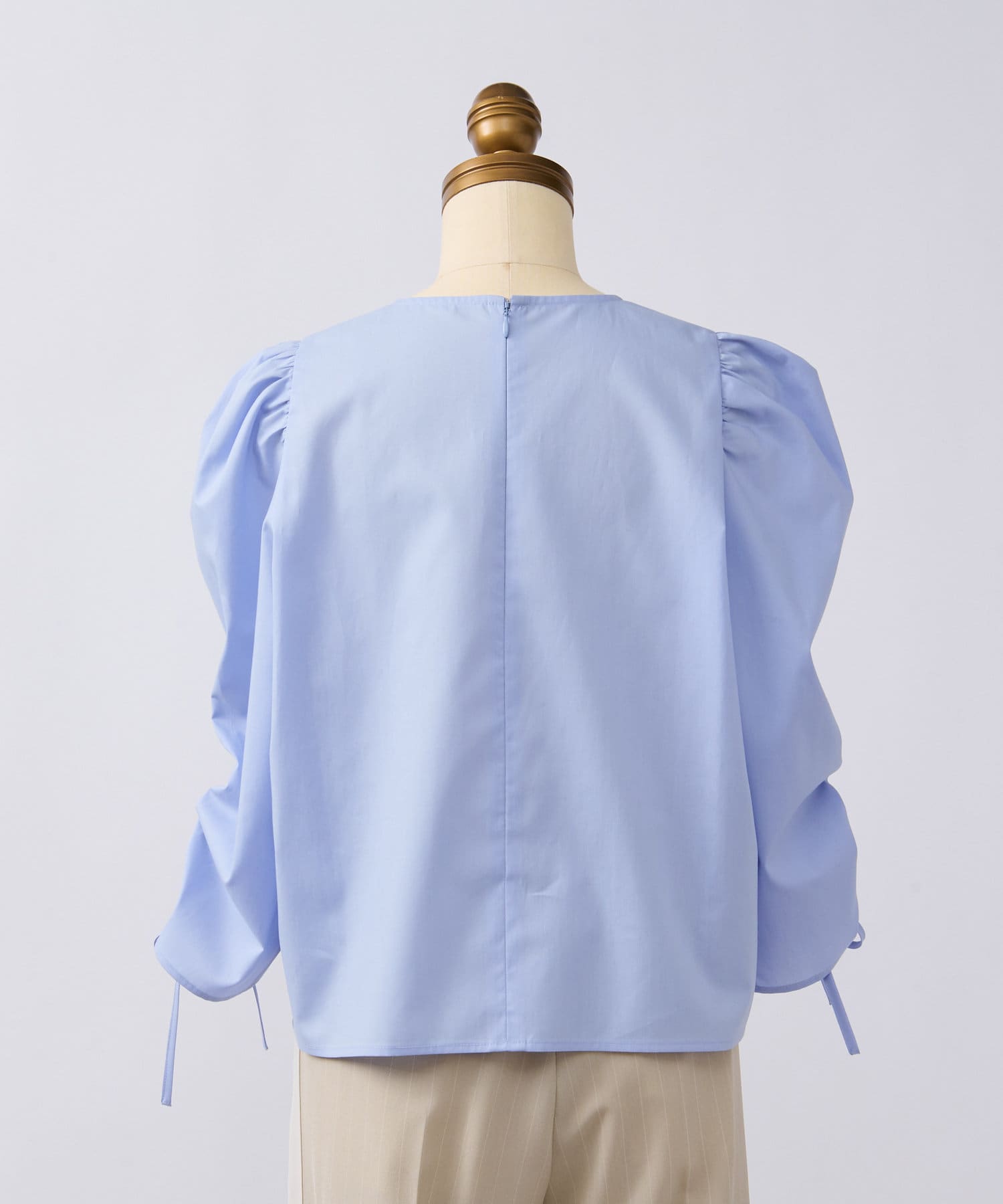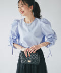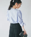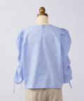 袖のボリュームと袖口のリボンが大人可愛いデザインブラウス。