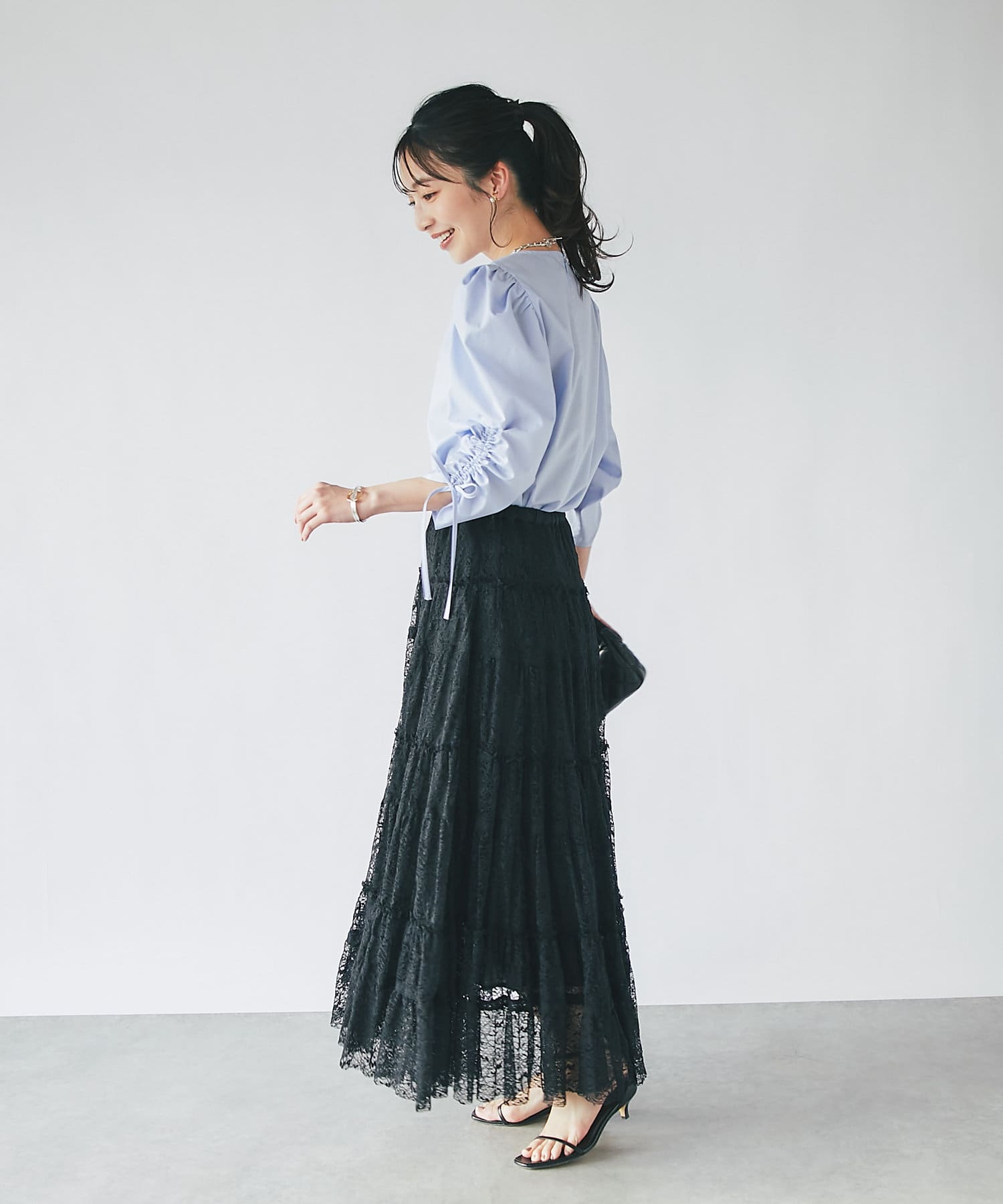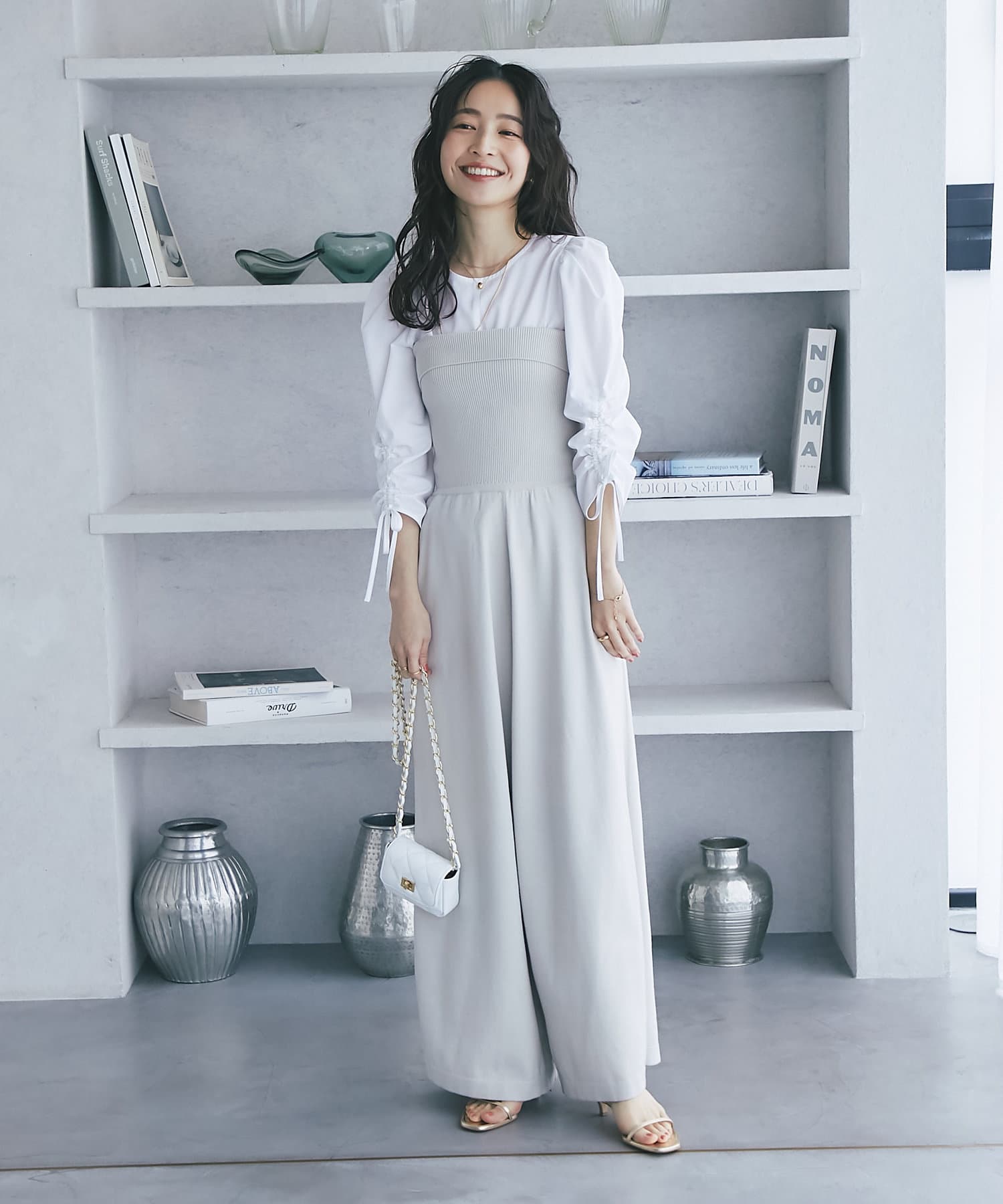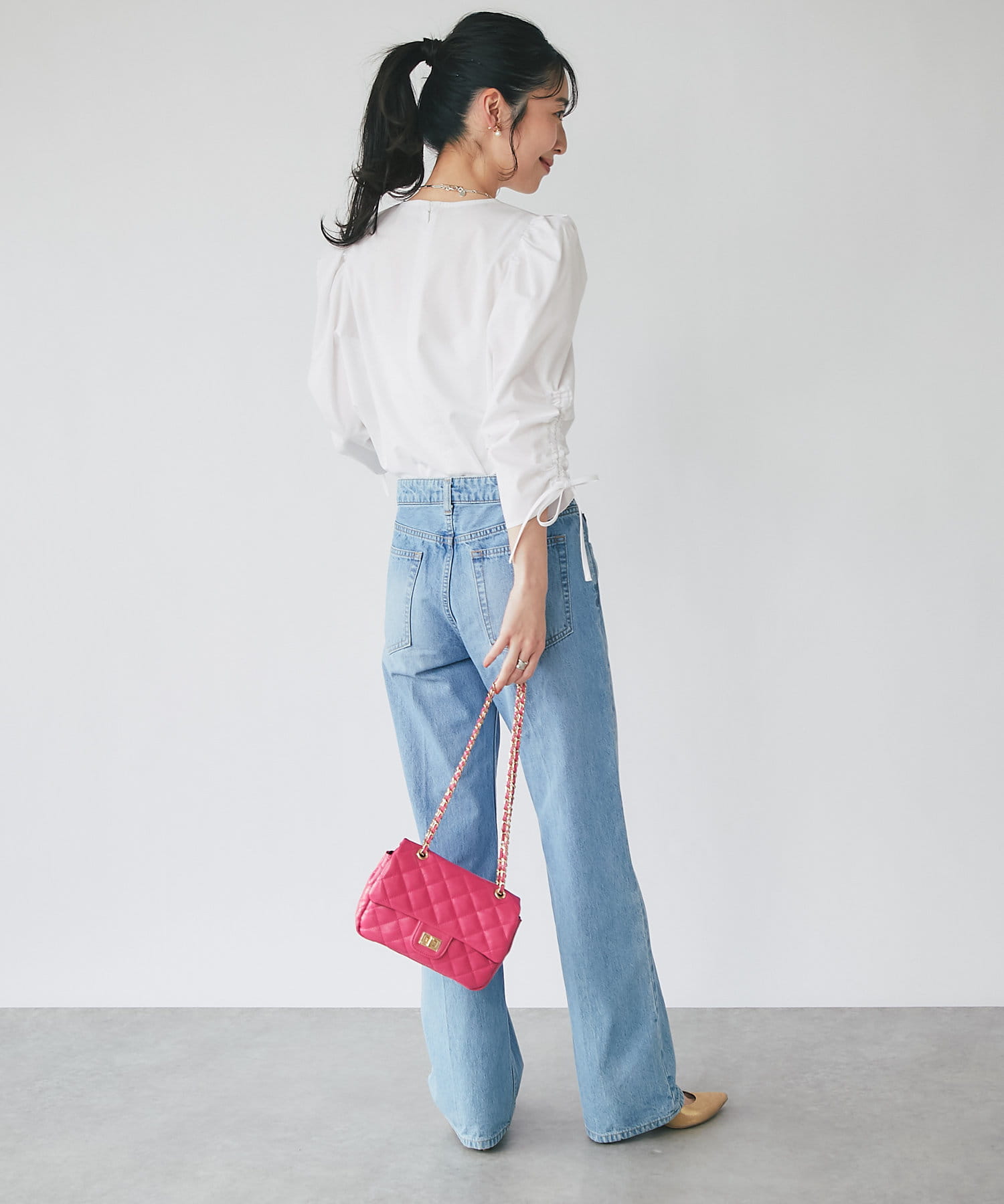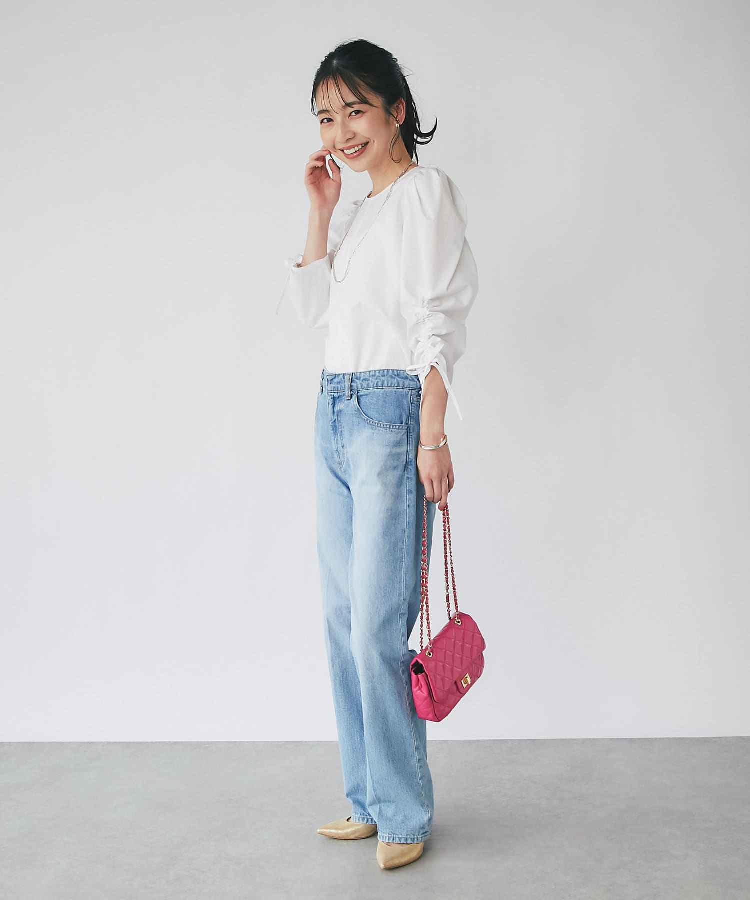 スカートと合わせてフェミニンなスタイルや、デニムパンツと合わせてカジュアルなスタイルにも。