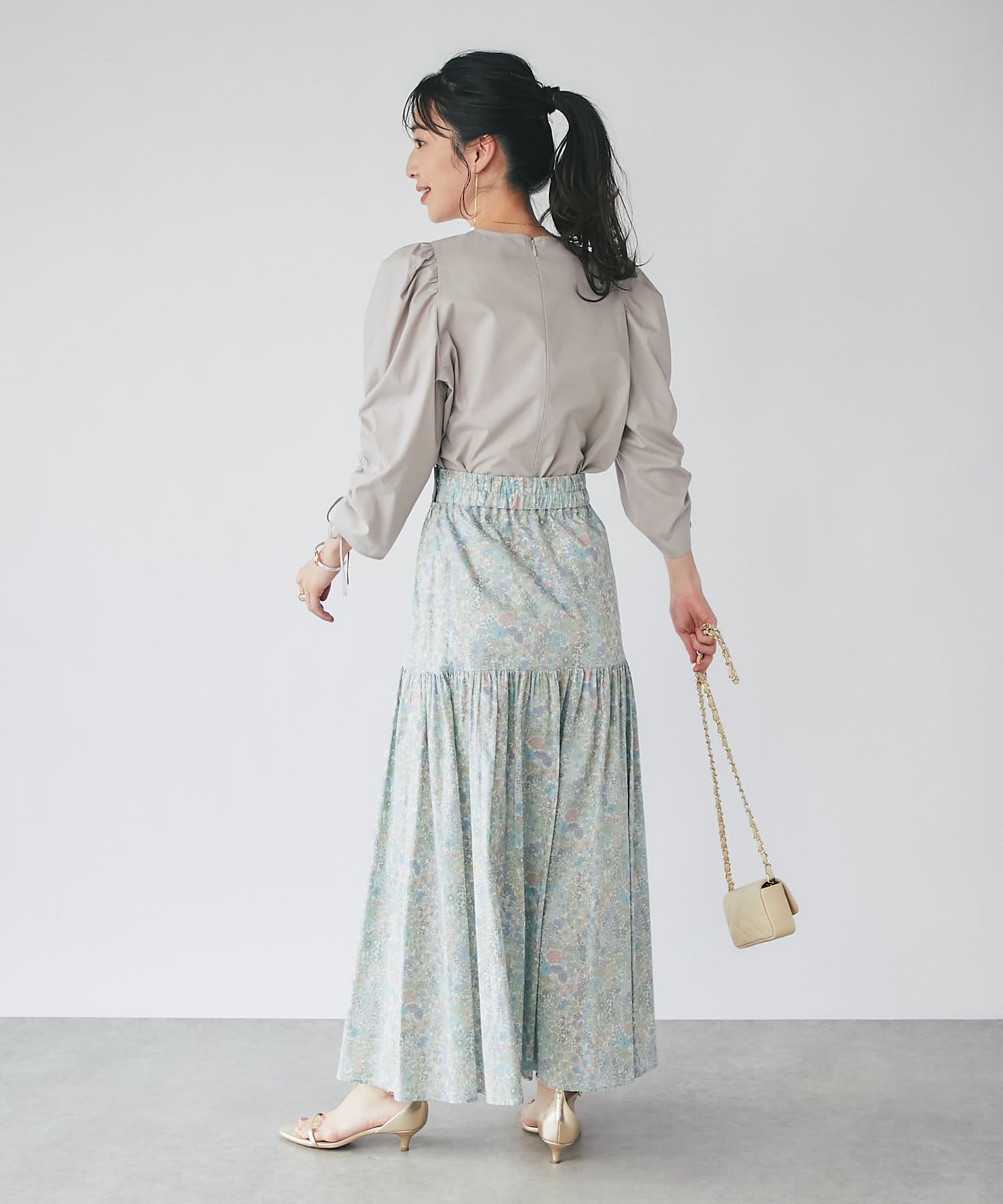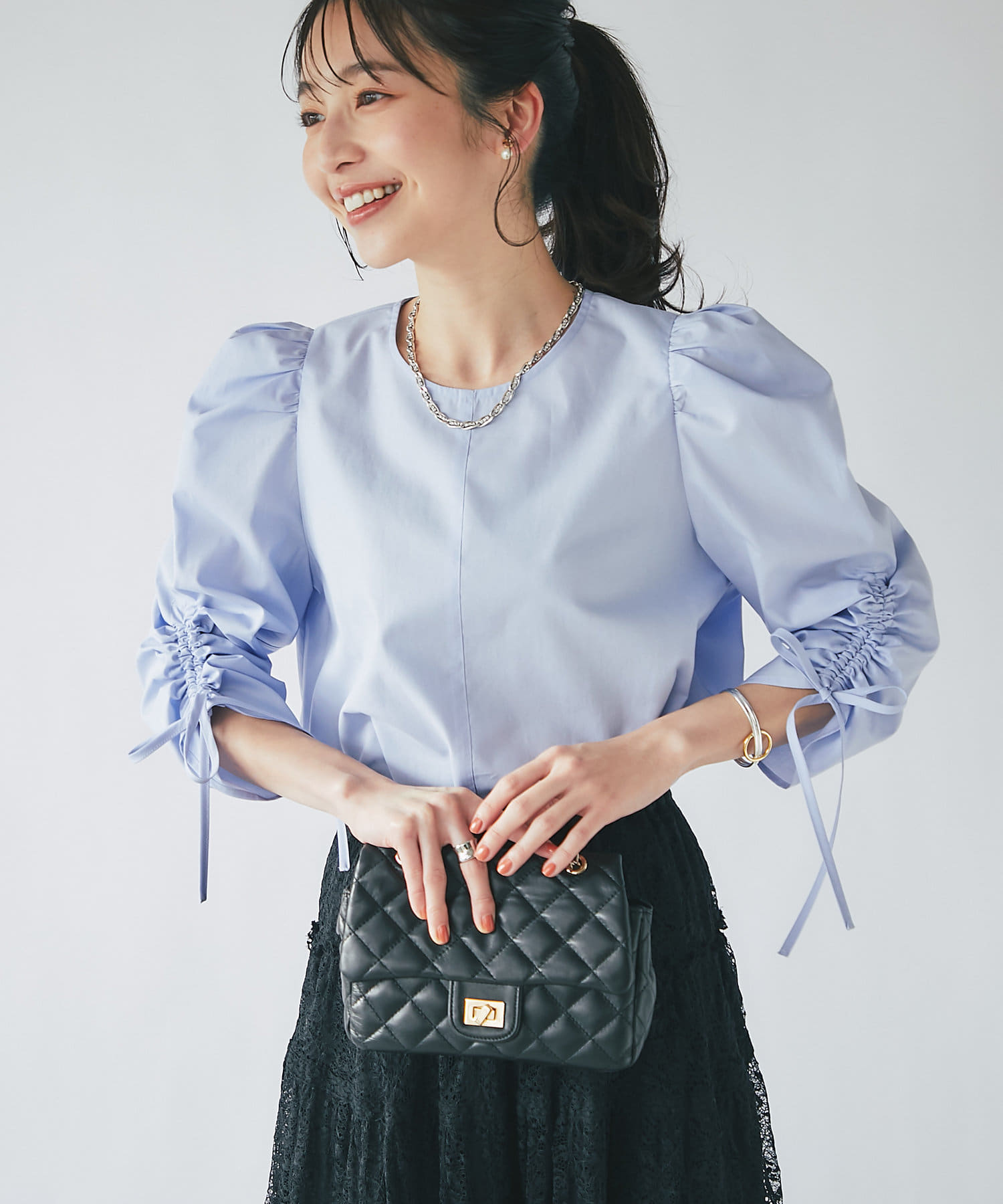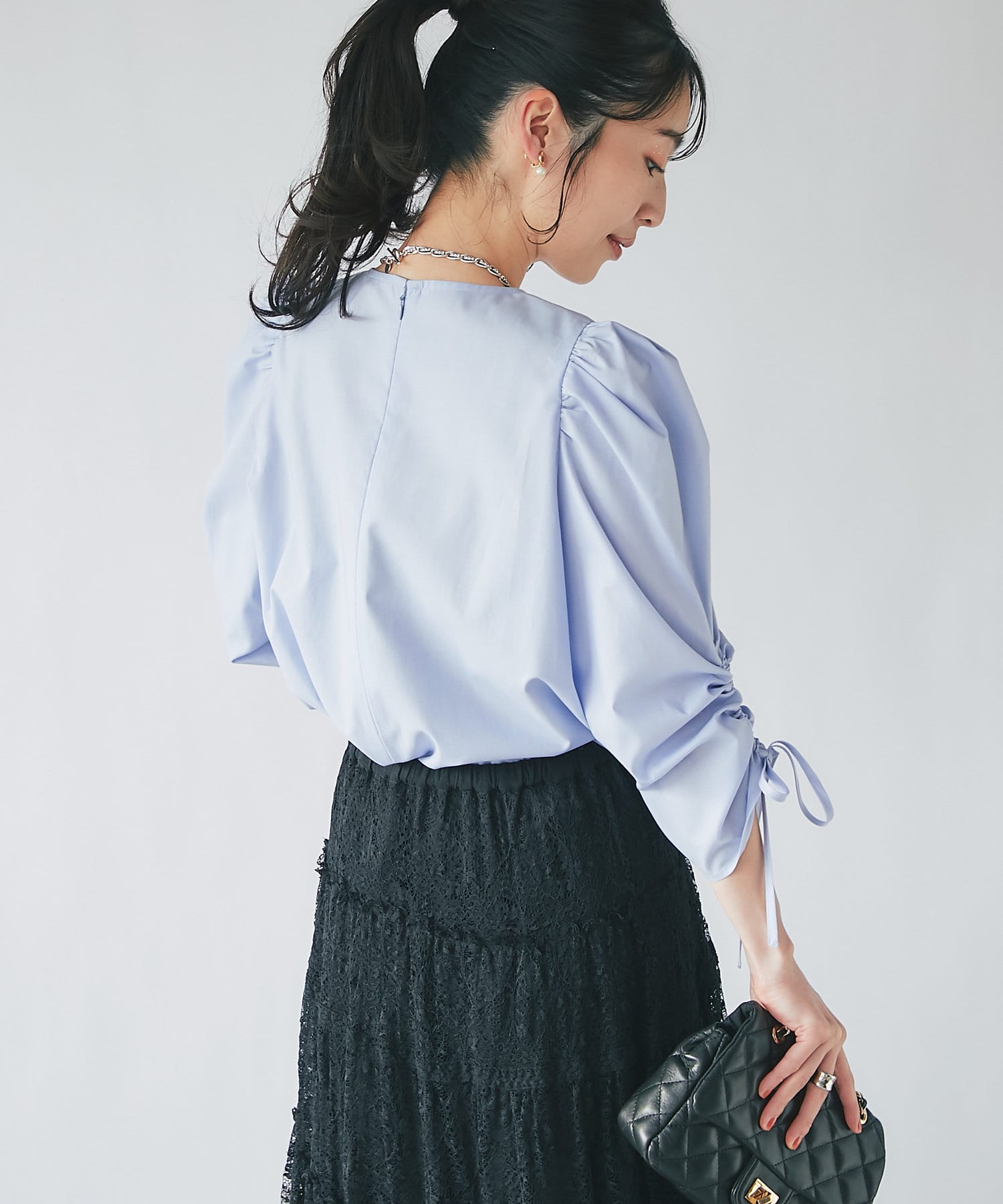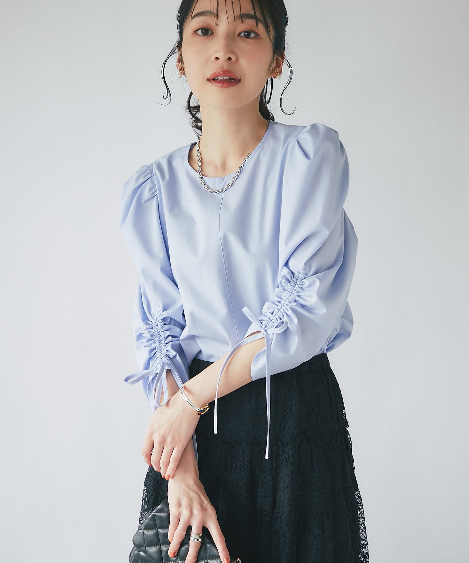 毎シーズン人気の大人可愛い袖ドロストのデザインブラウス