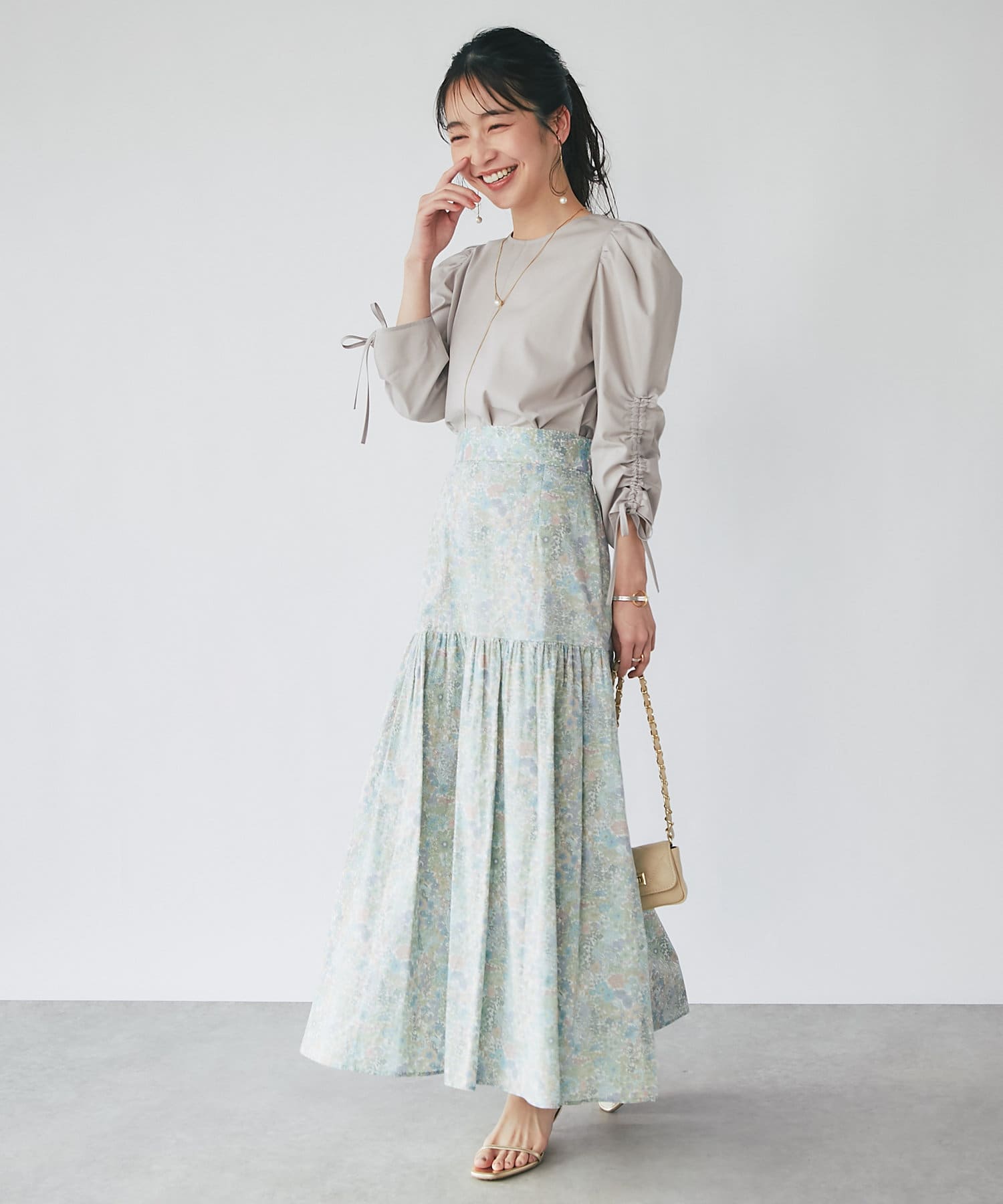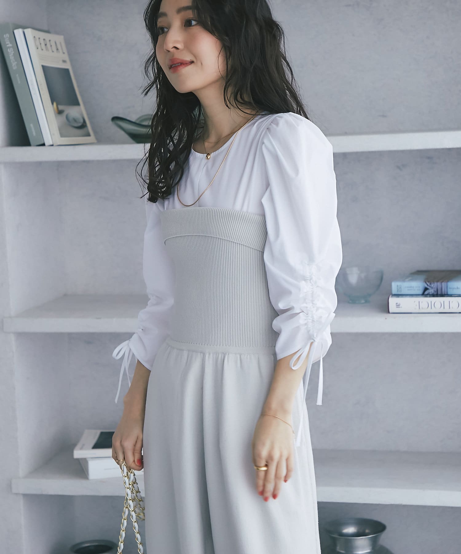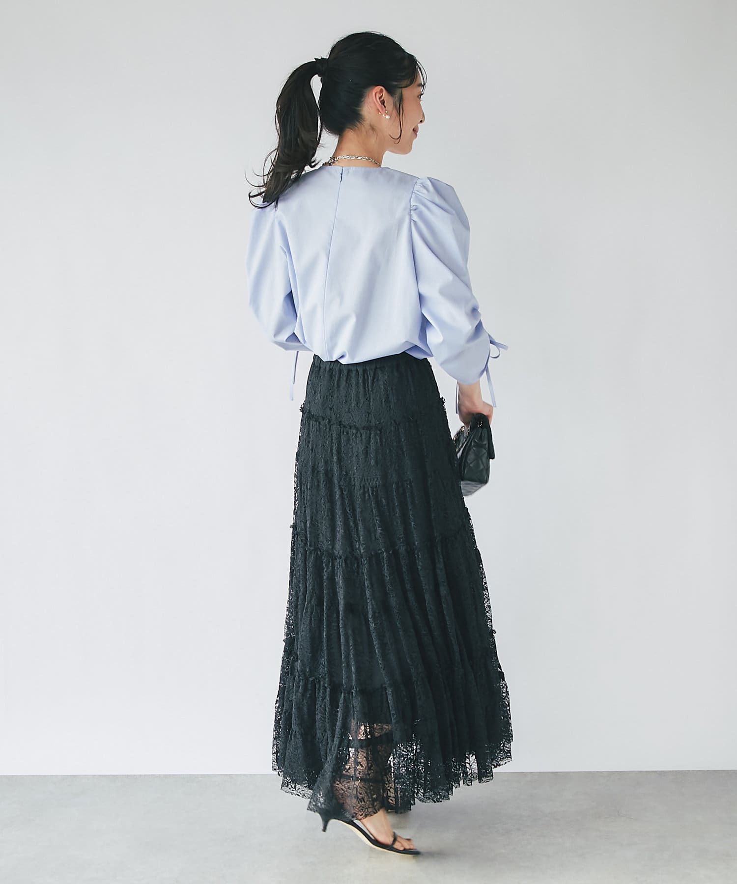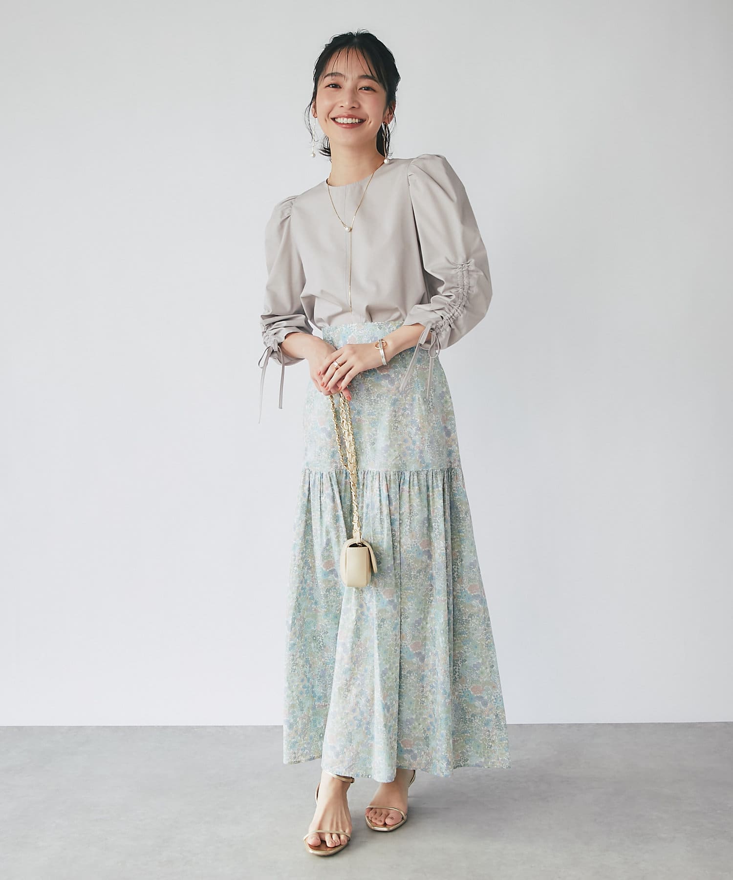 毎シーズン人気の大人可愛い袖ドロストのデザインブラウス