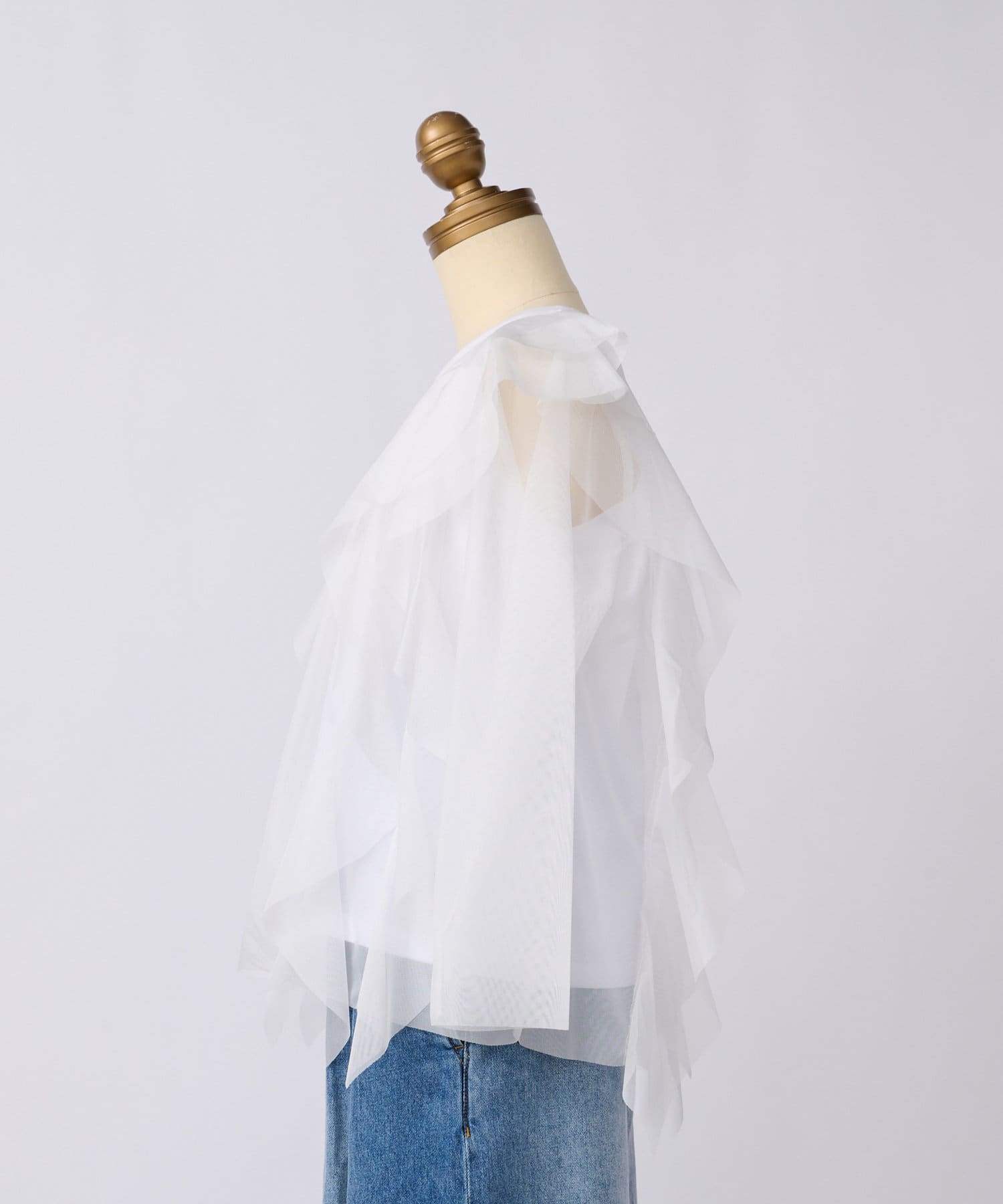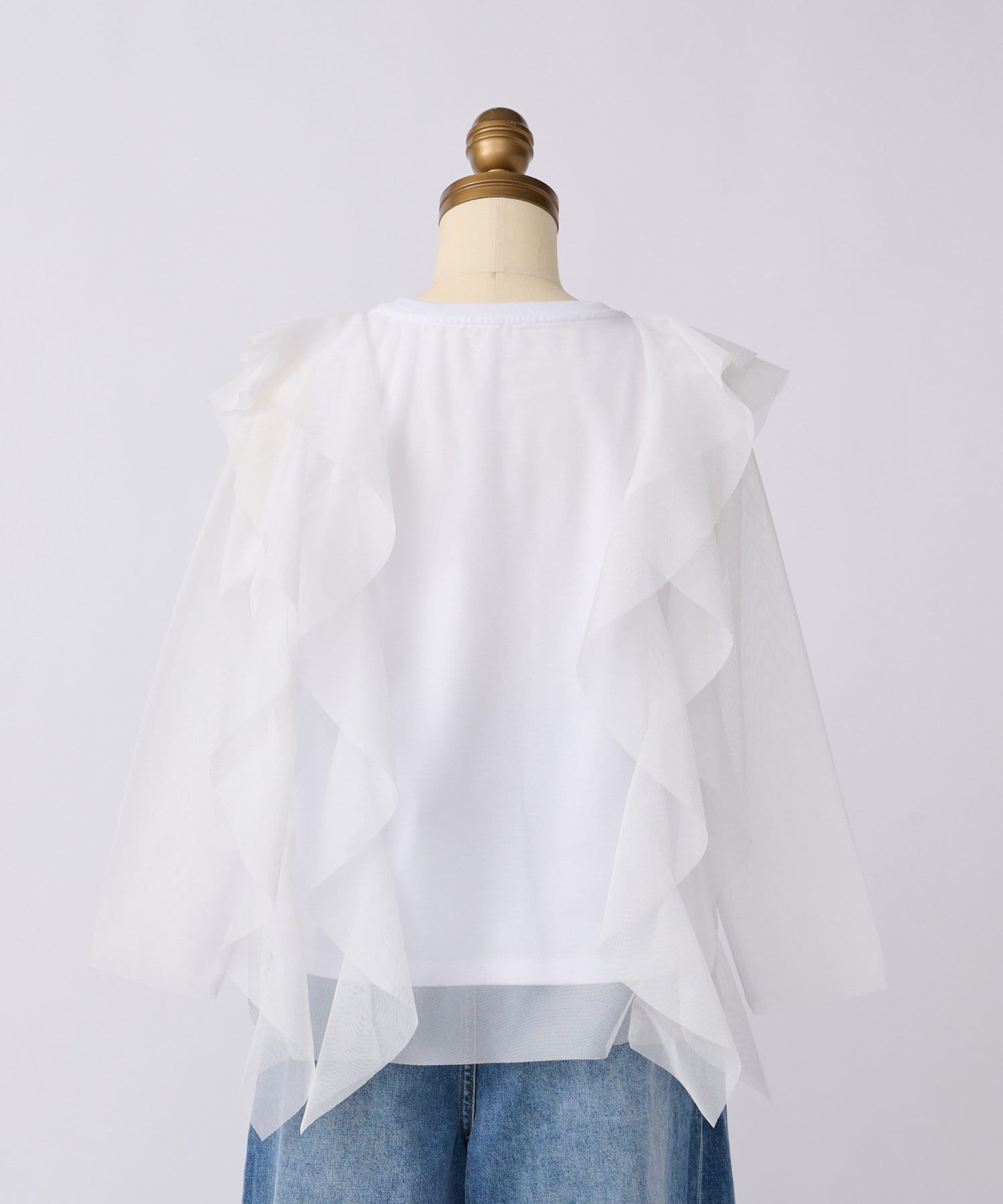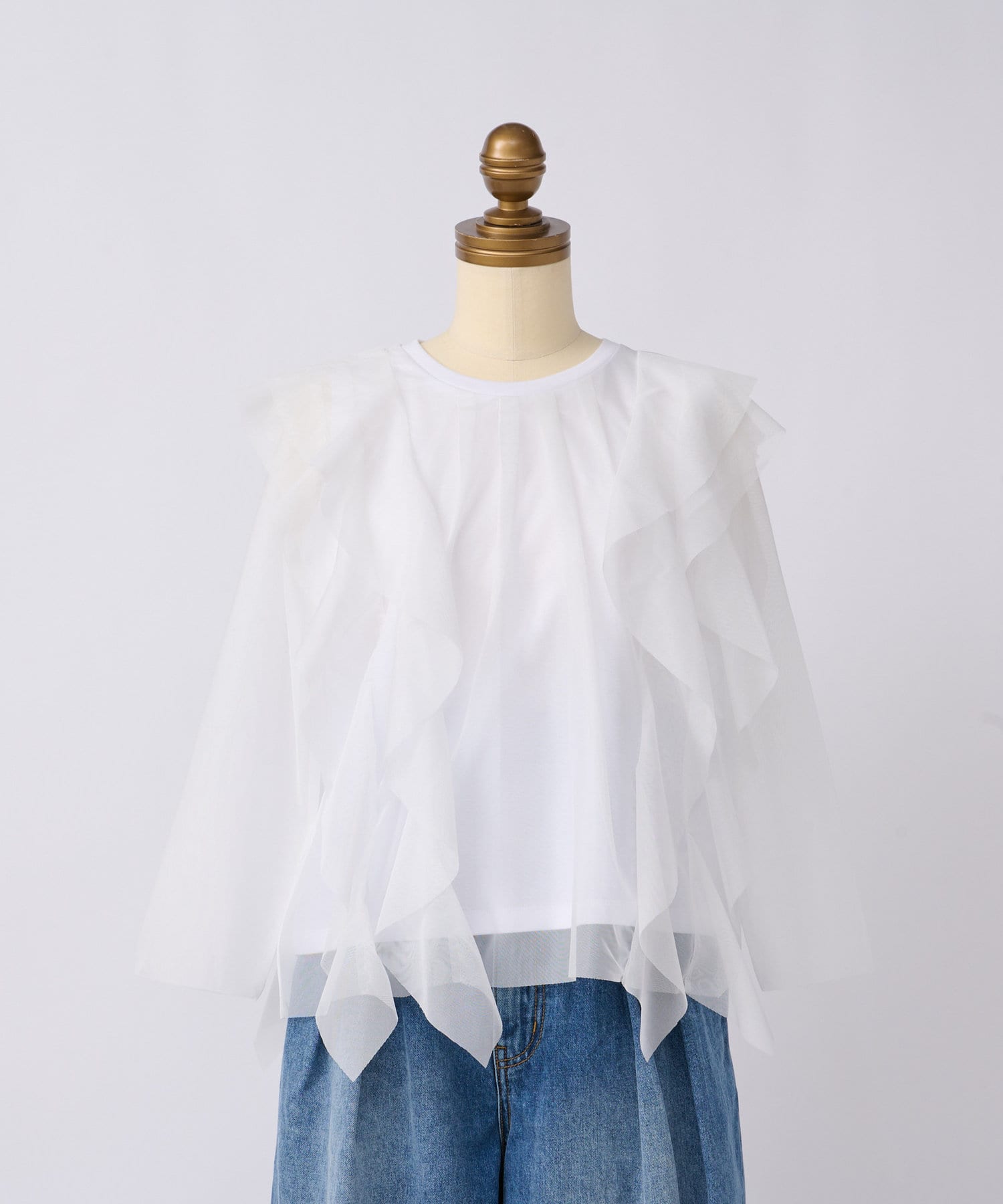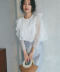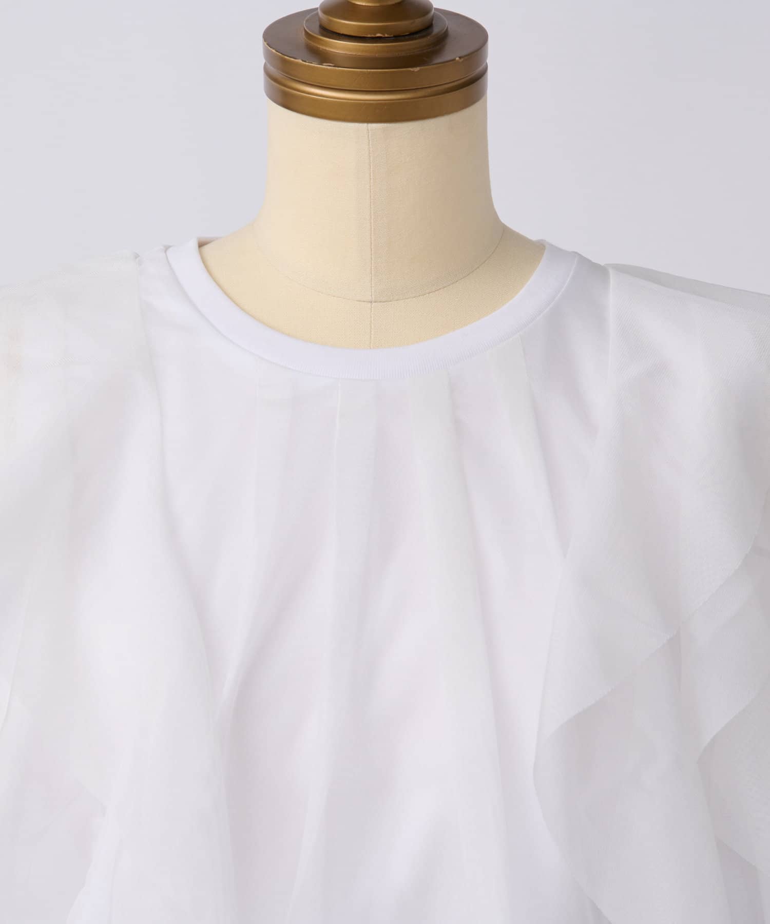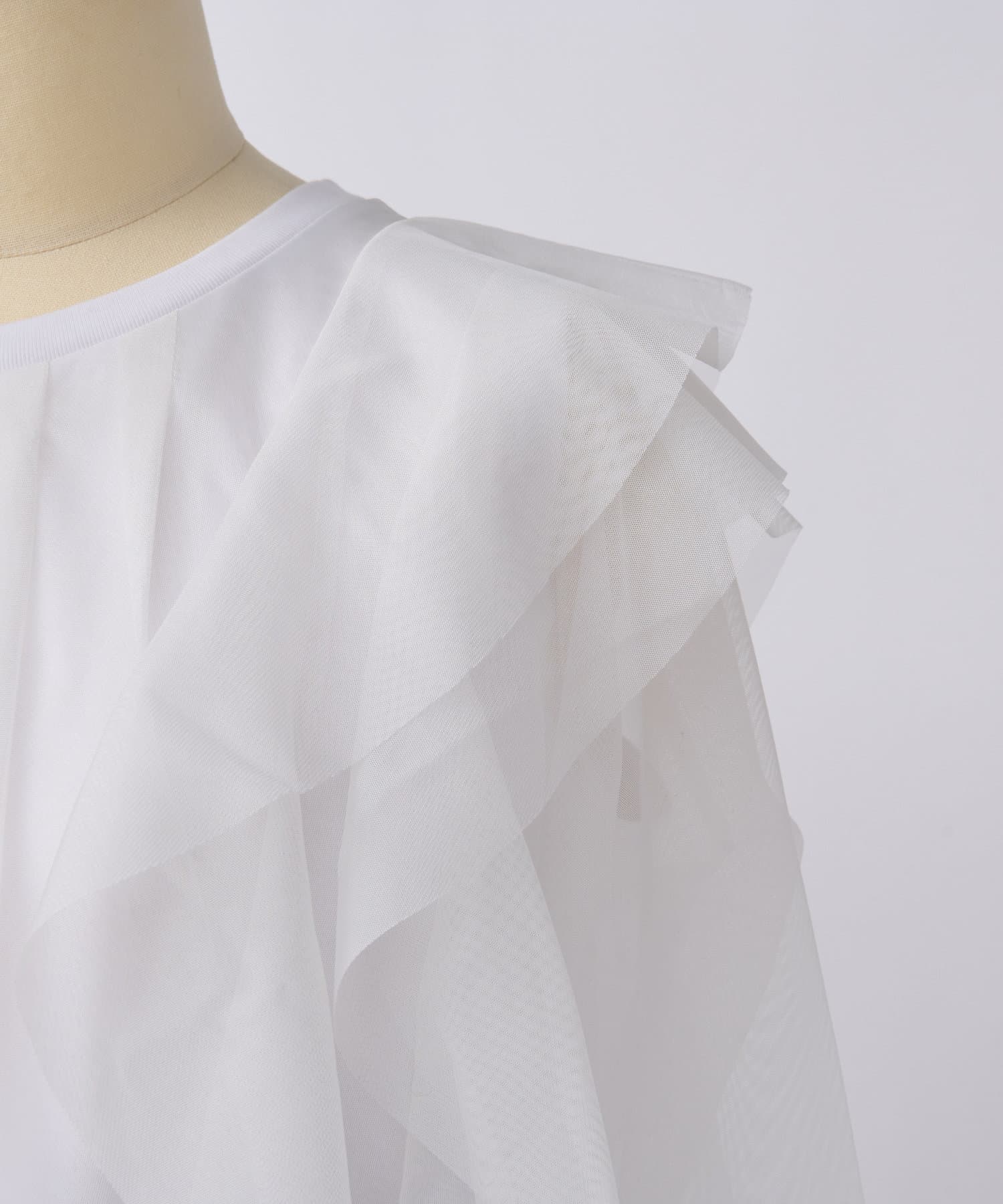 大ぶりな重ねチュールのラッフルが特徴のカットソーです。