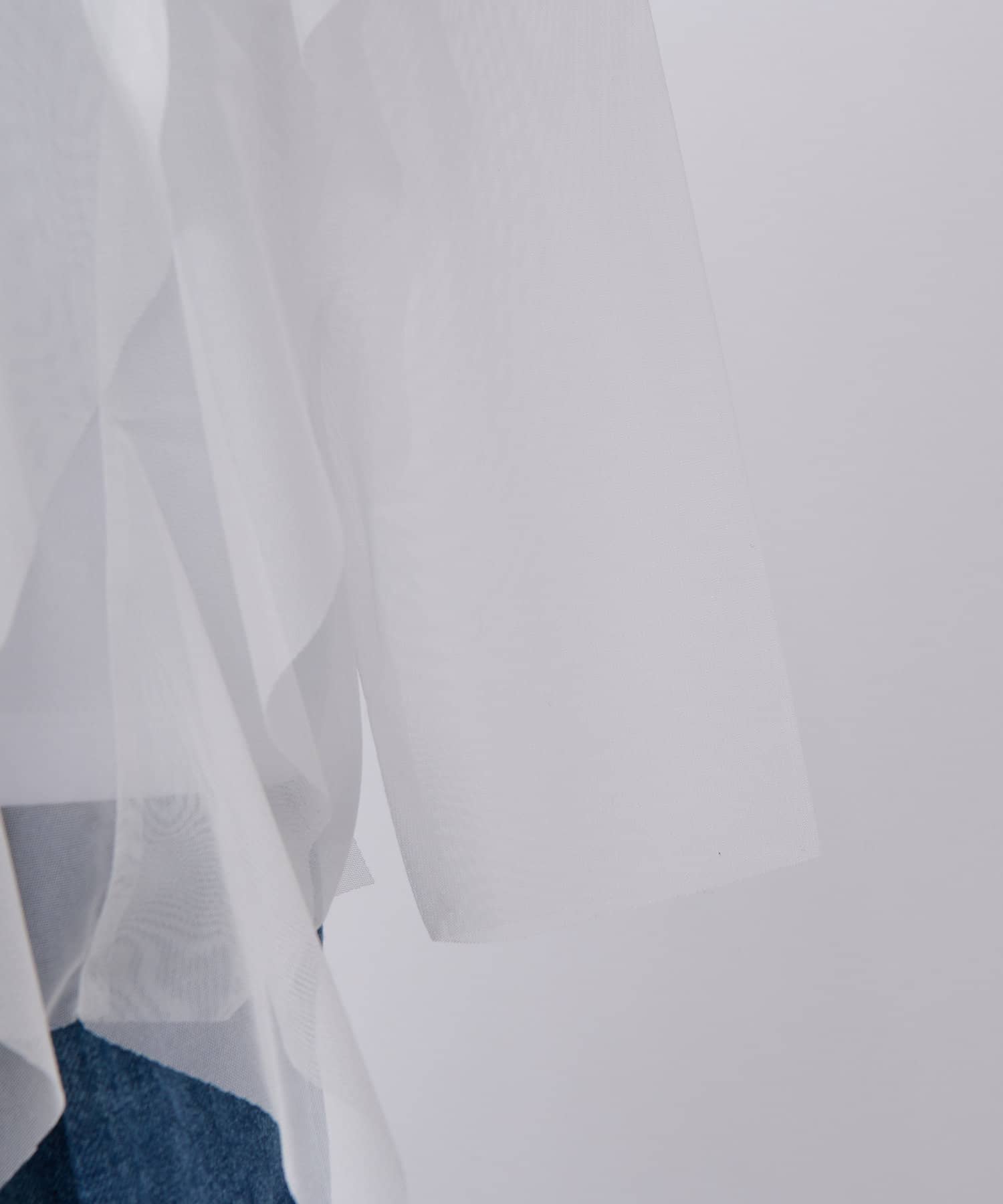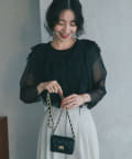 ノースリブのTシャツにチュールのブラウスを重ね着したような今っぽいデザインに仕上げています。