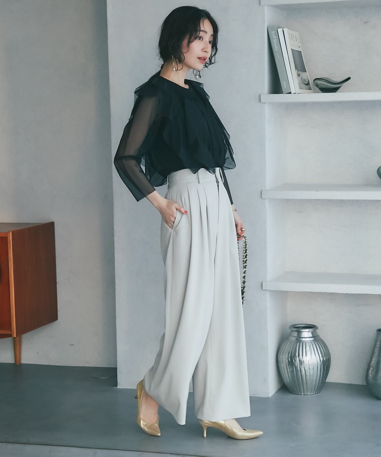 ベーシックなボトムに合わせただけで鮮度のあるスタイリングが叶います。