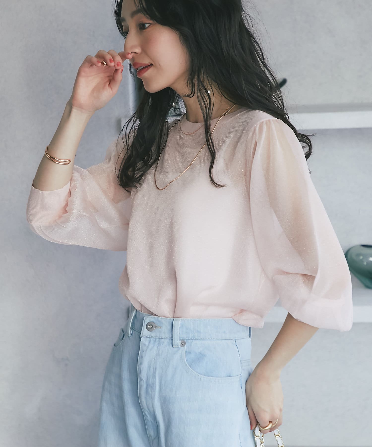 品よくシアーコーデが楽しめるニットプルオーバー