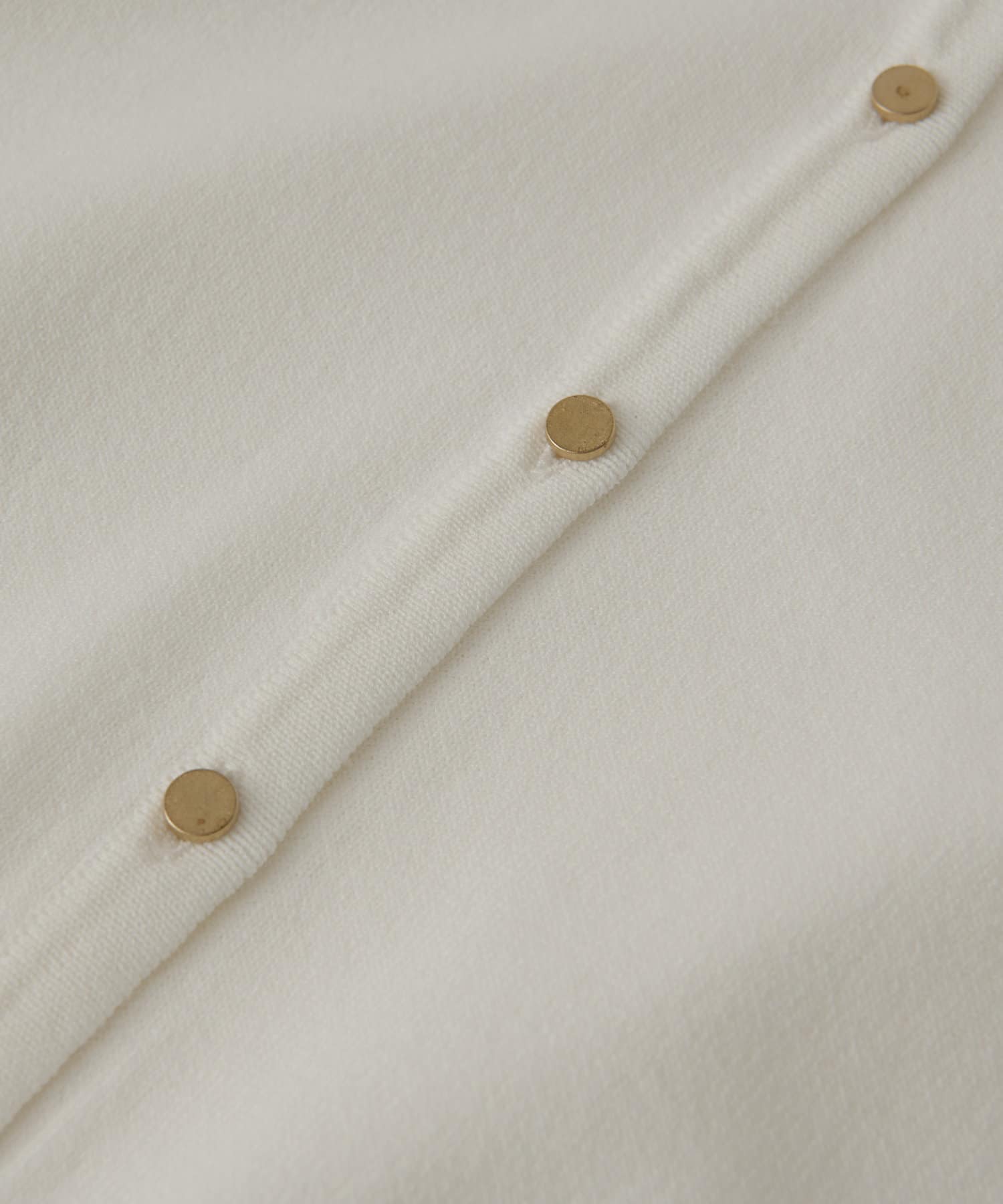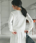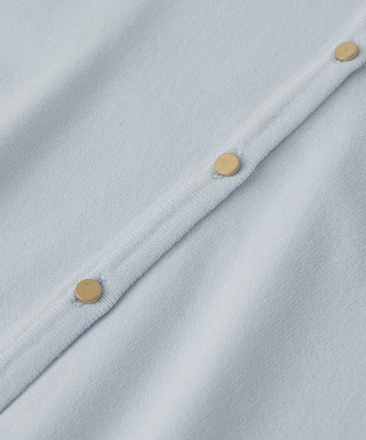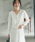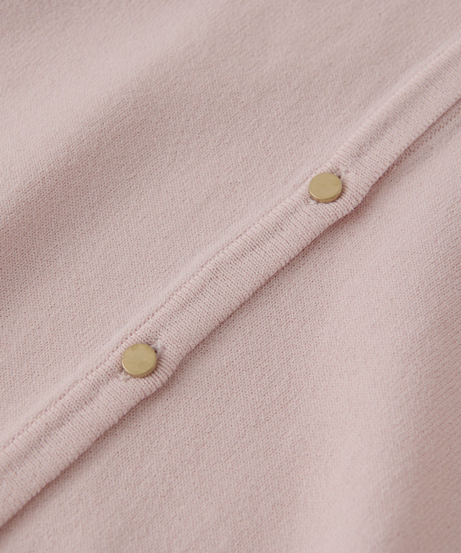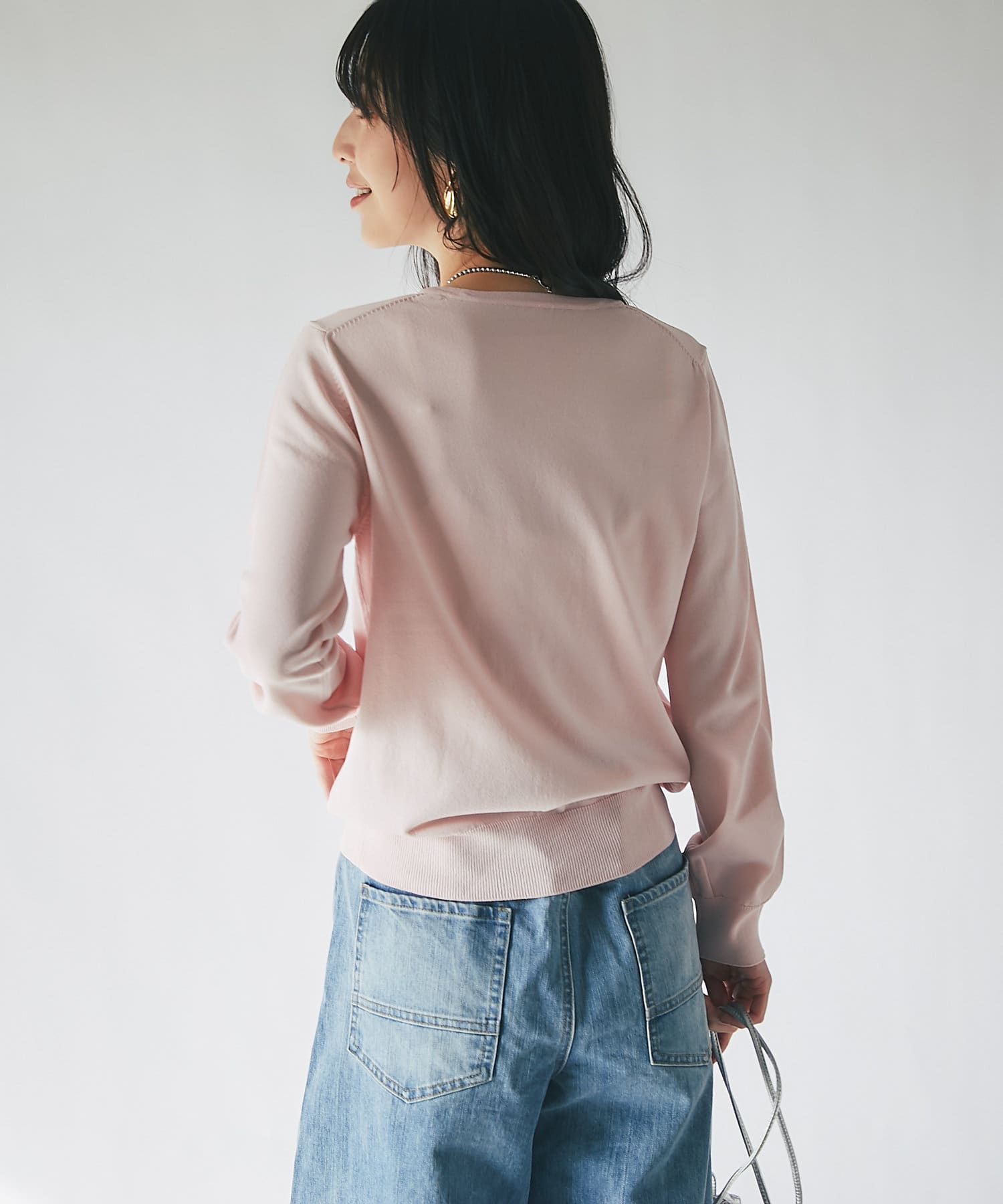 鎖骨をきれいに見せてくれるスキッパーネックのフェミニンなカーディガン。