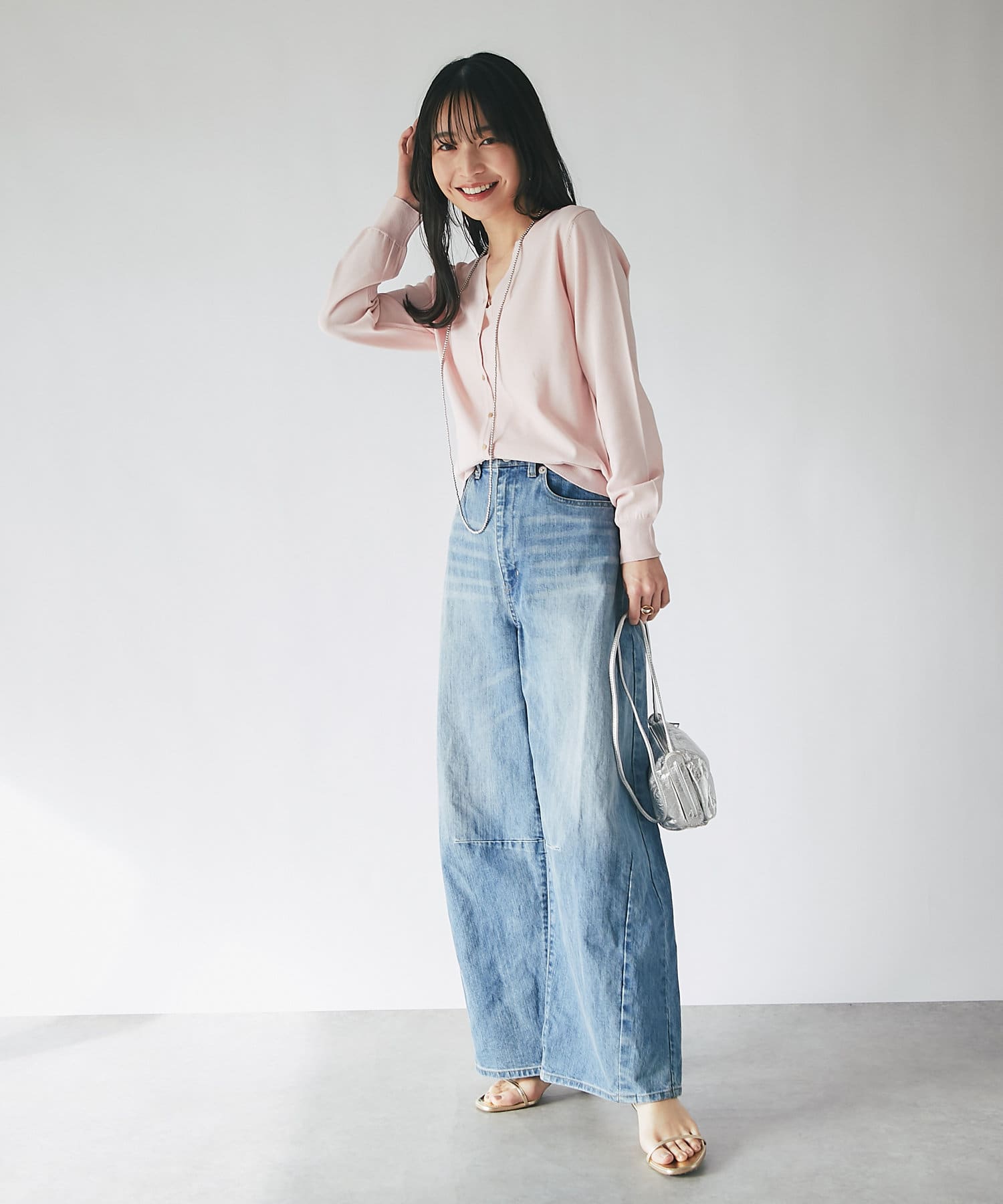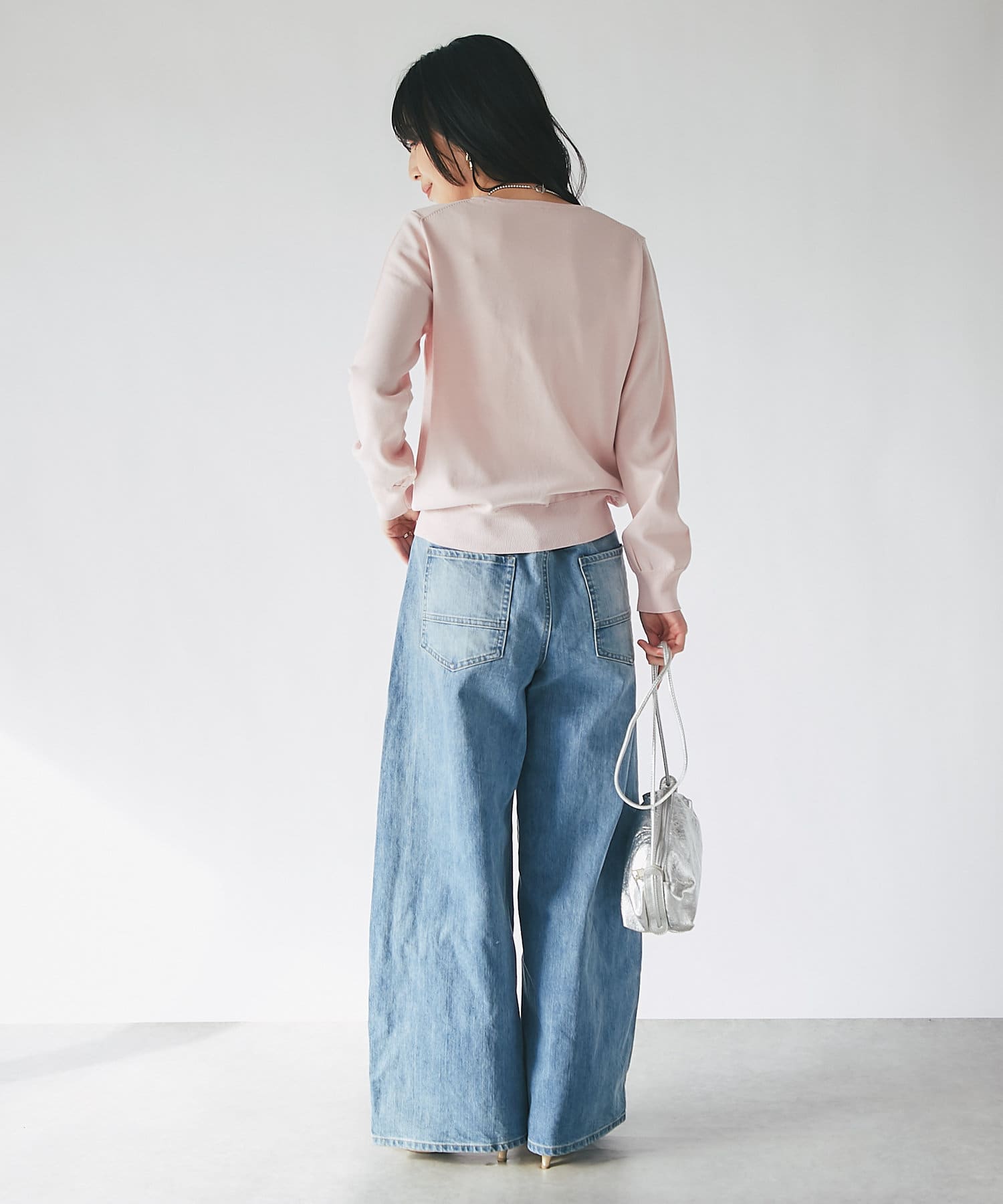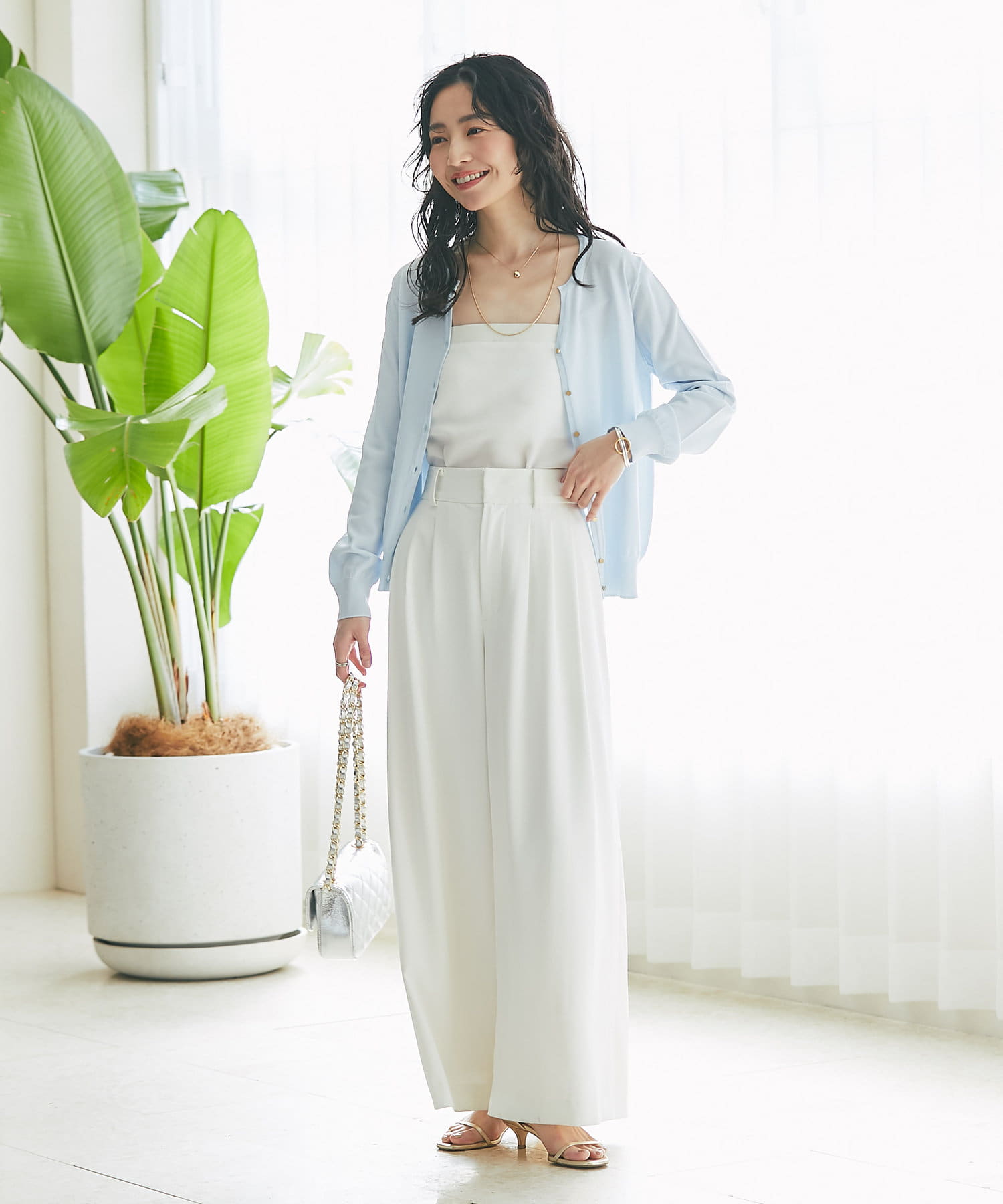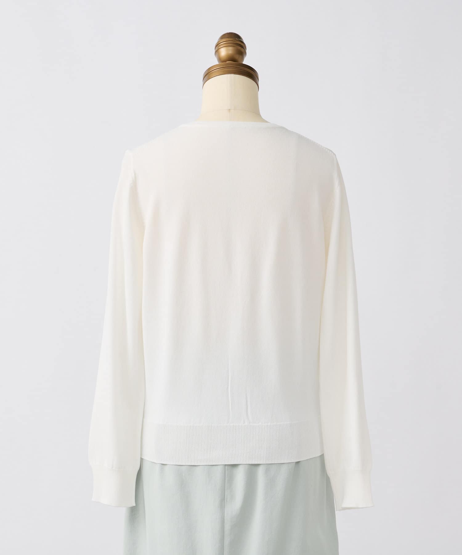 鎖骨をきれいに見せてくれるスキッパーネックのフェミニンなカーディガン。