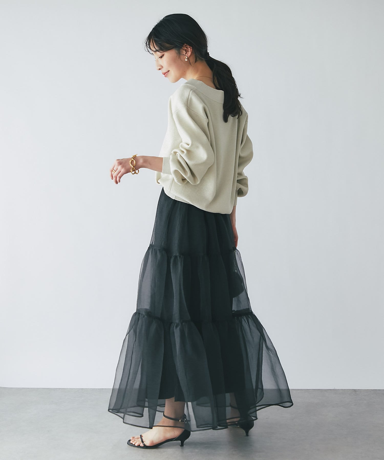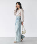 長めの袖は袖口に向かってふんわりさせて女性らしさを演出。