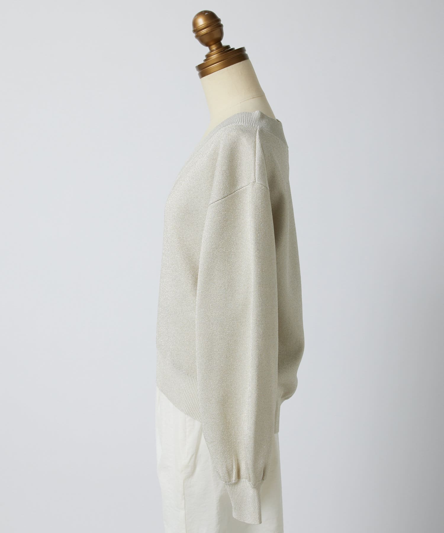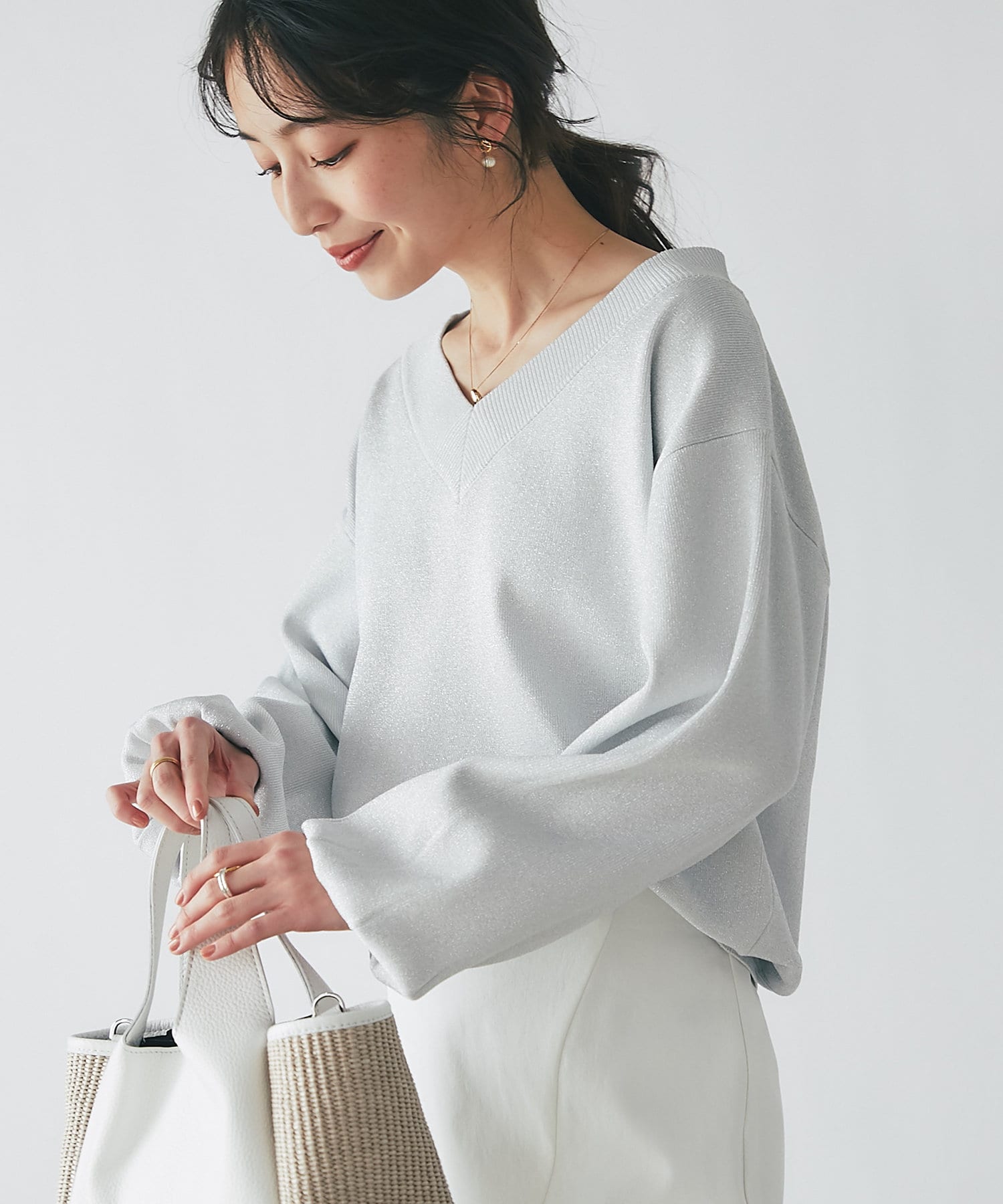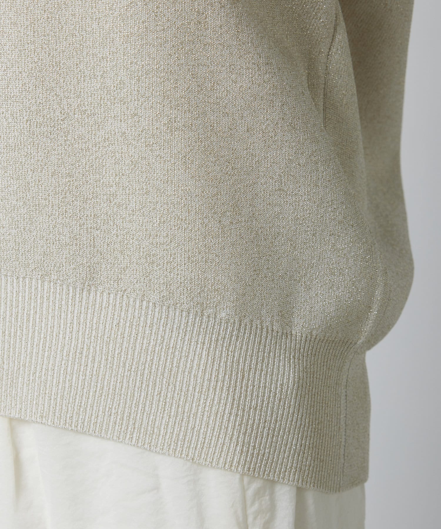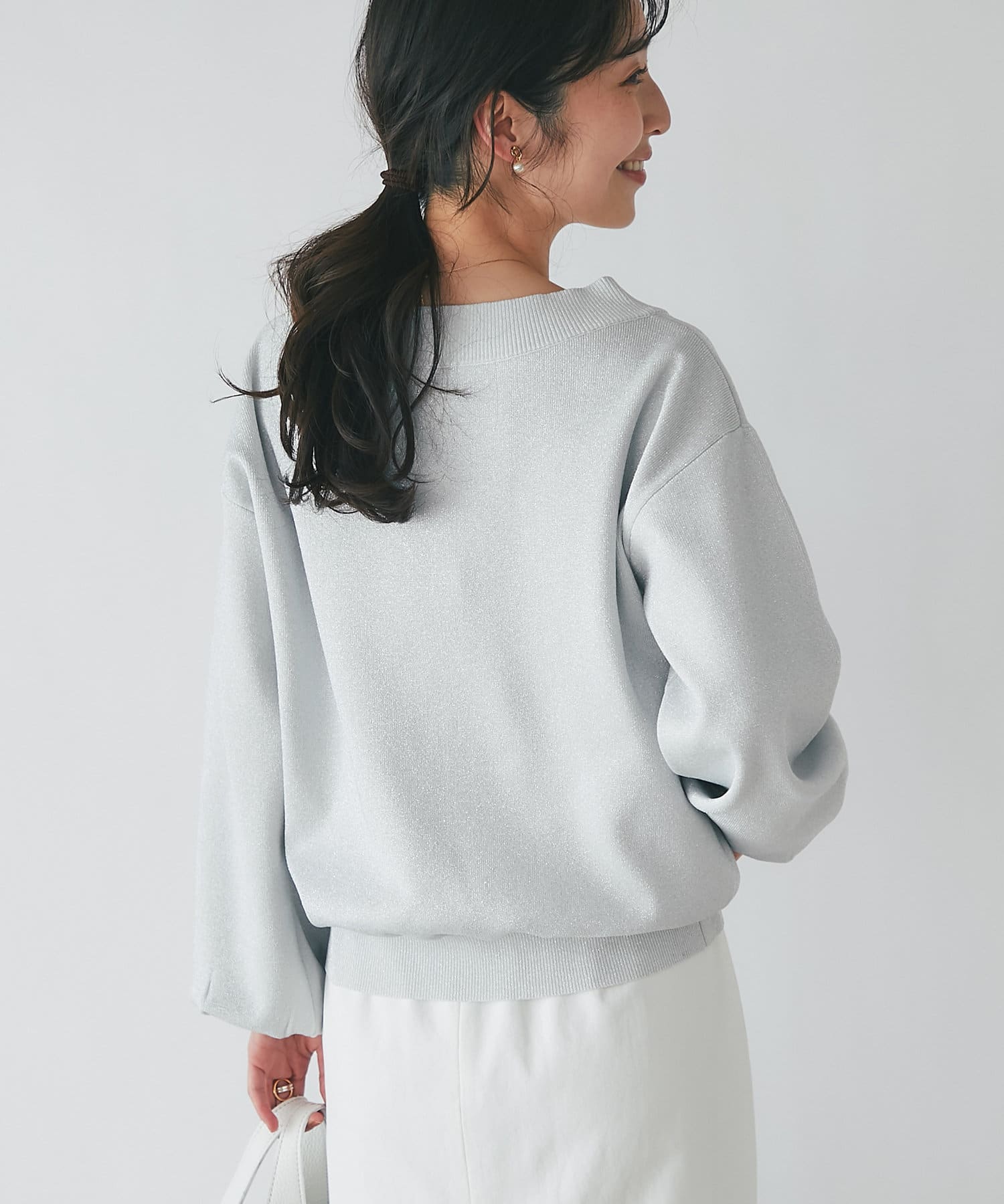 動くたびほのかに輝く素材で高級感溢れるラメニットです。