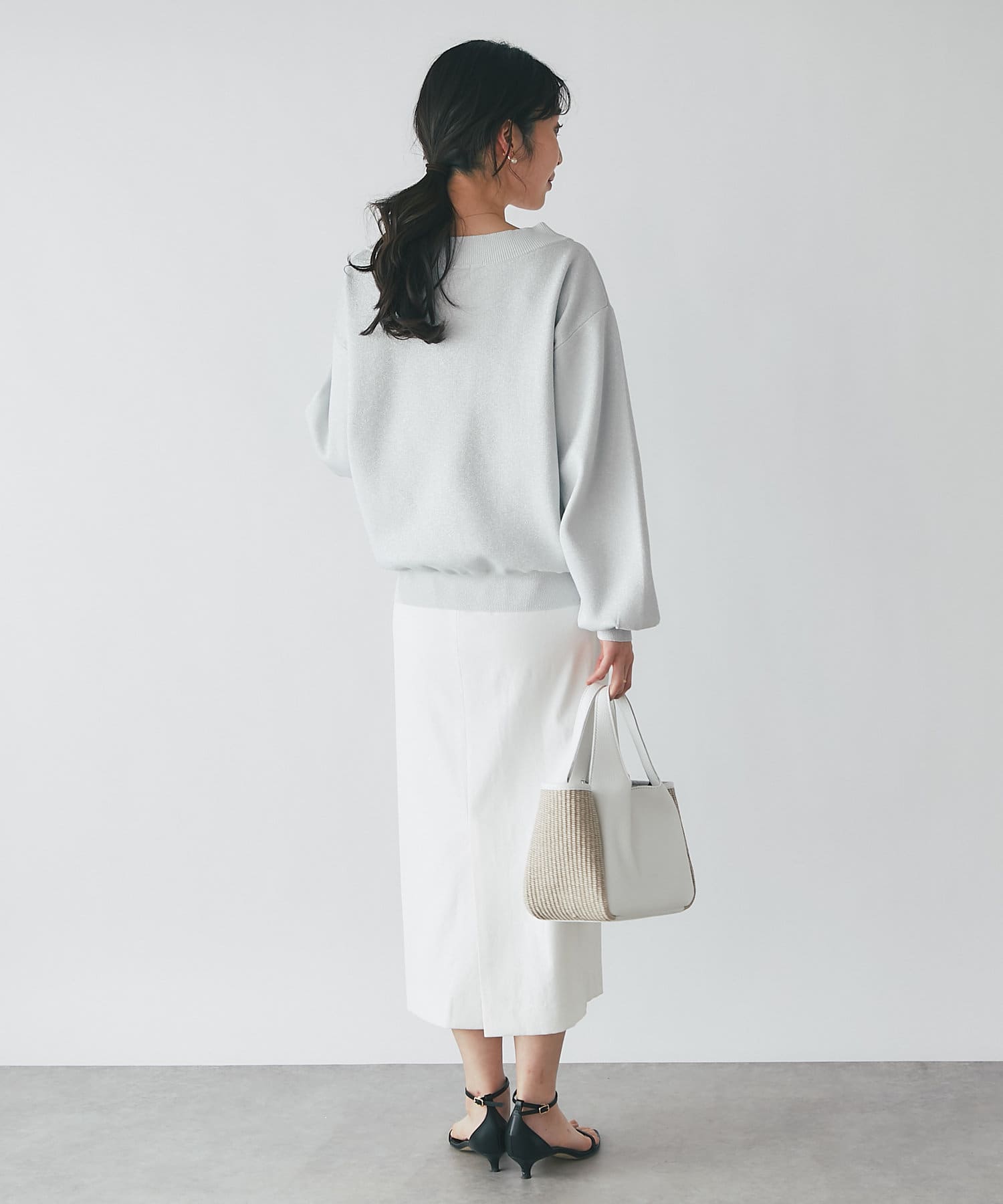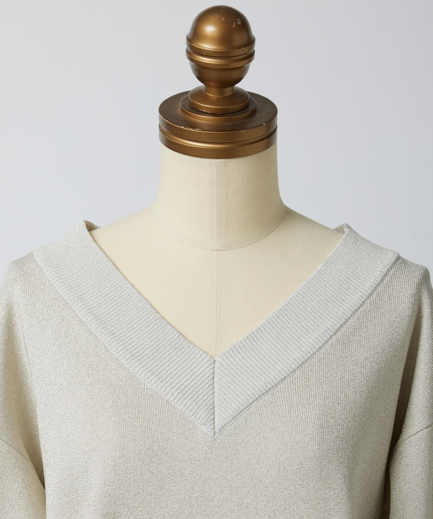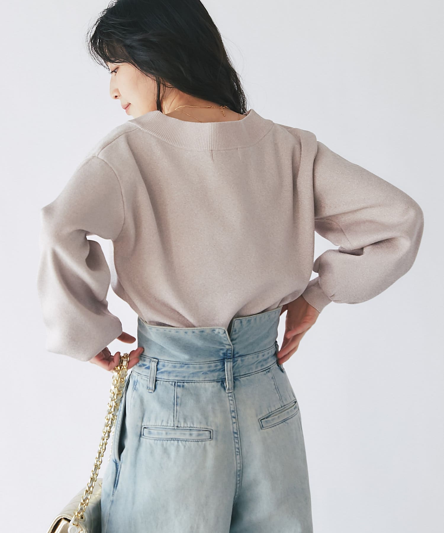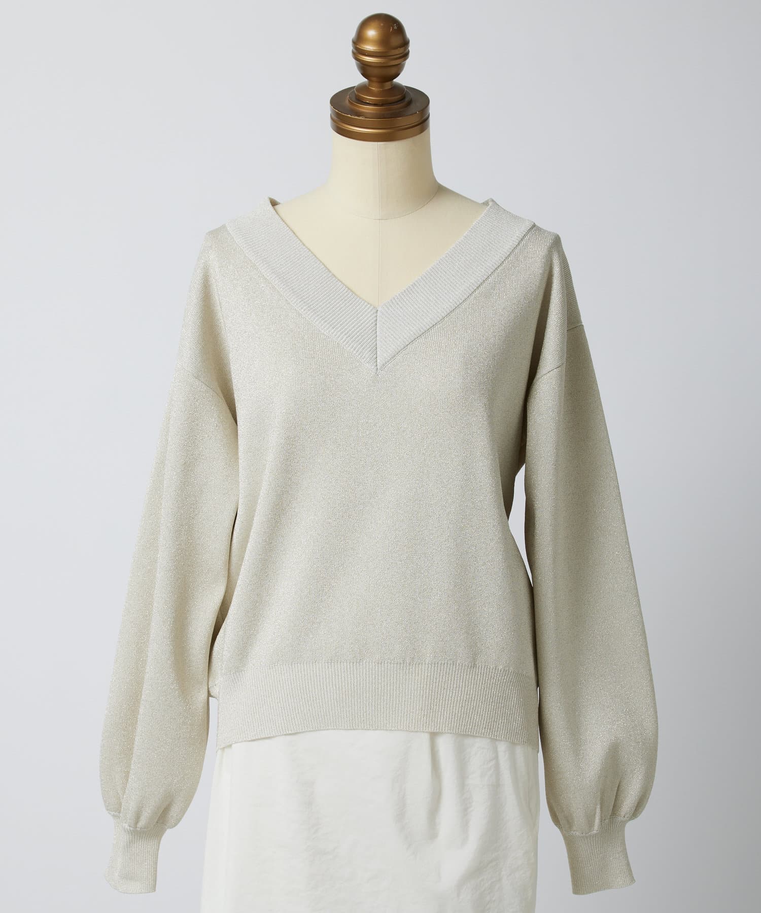 動くたびほのかに輝く素材で高級感溢れるラメニットです。