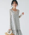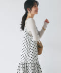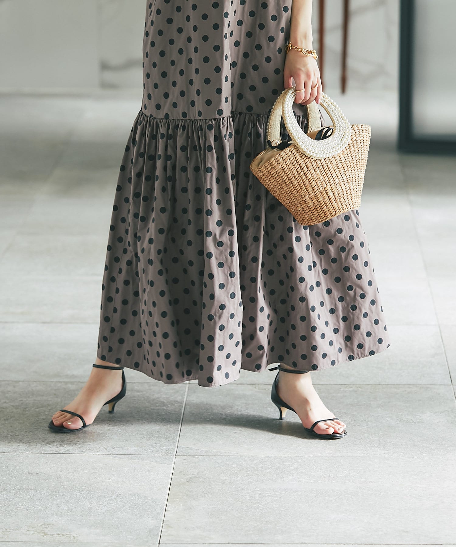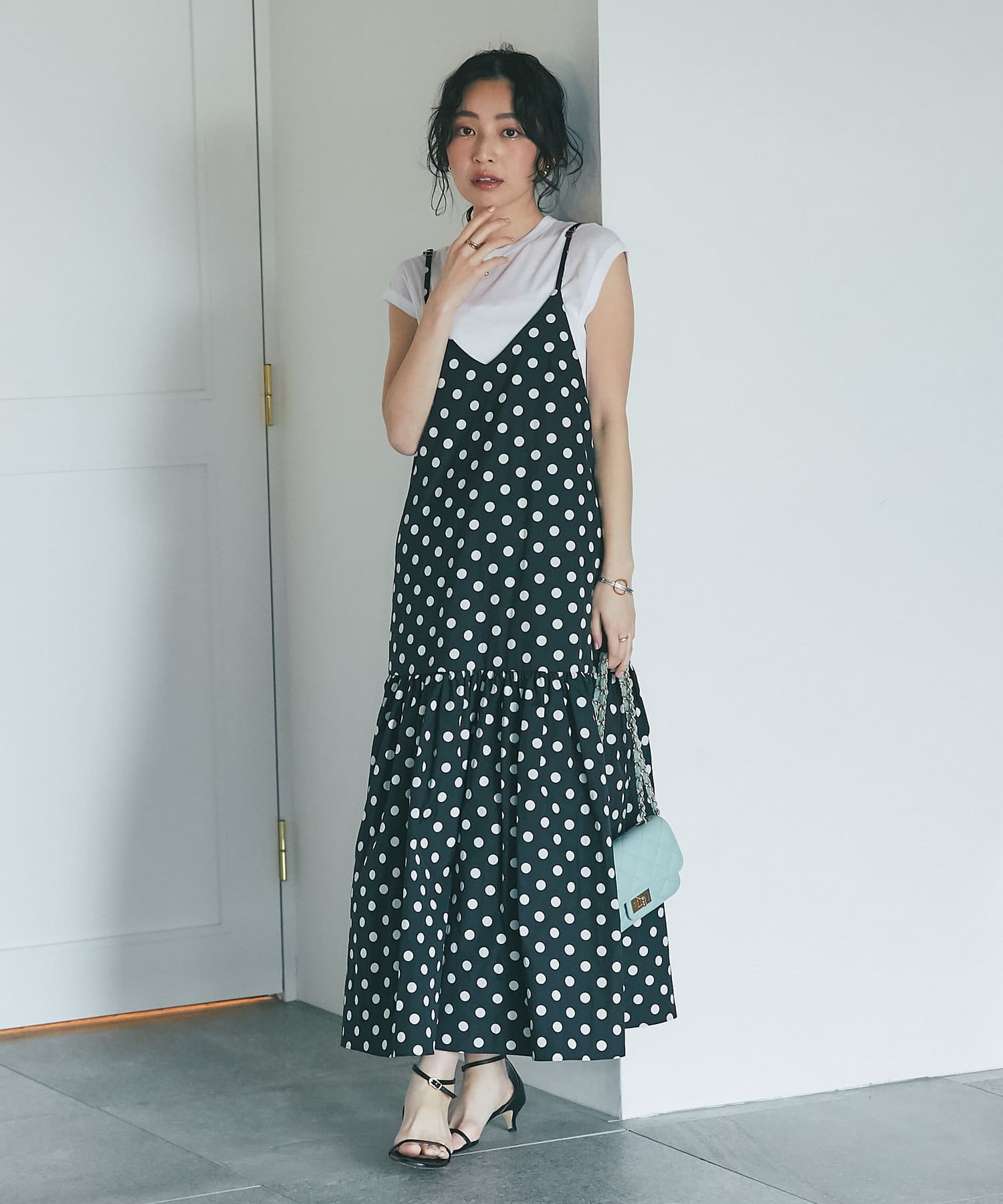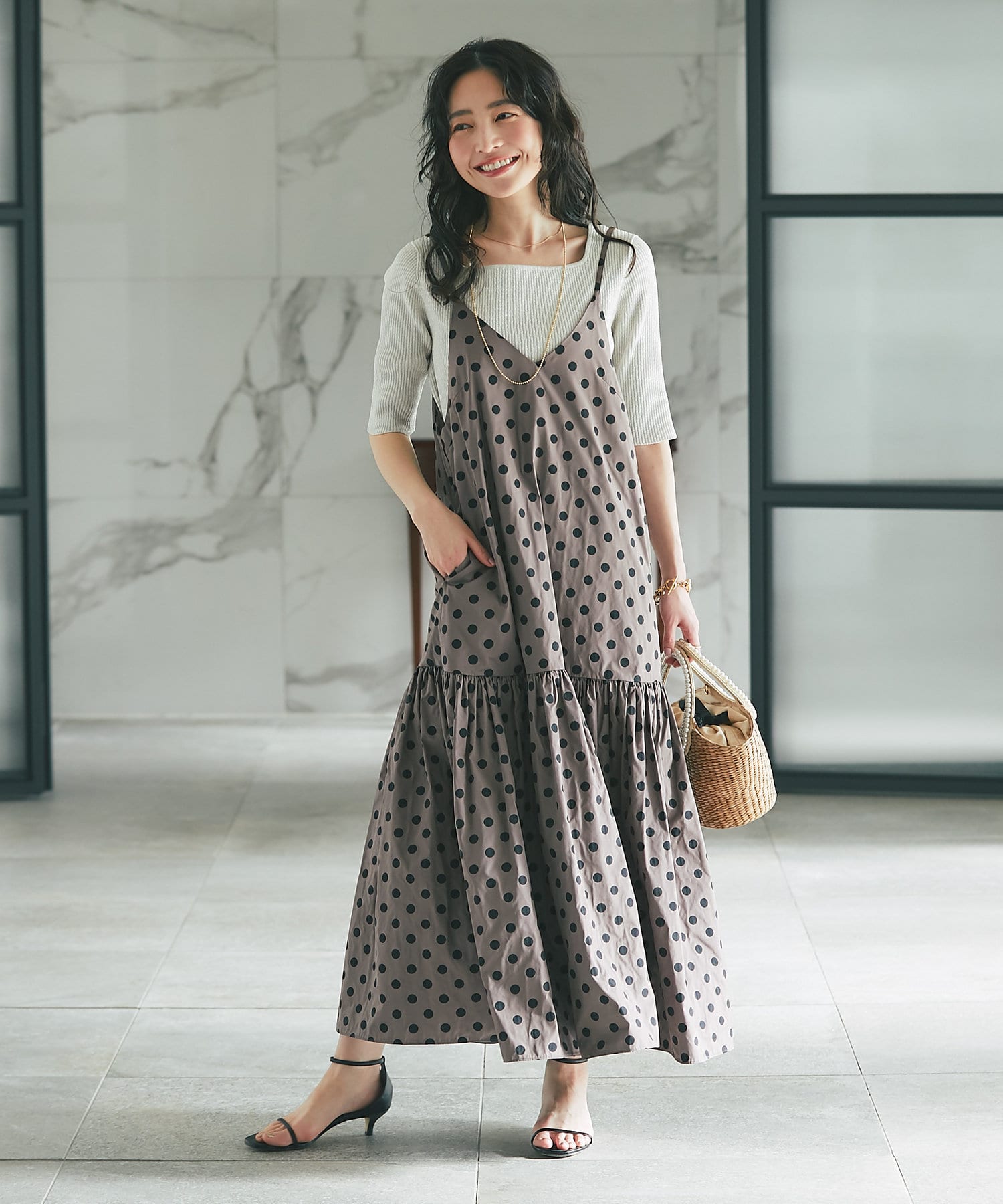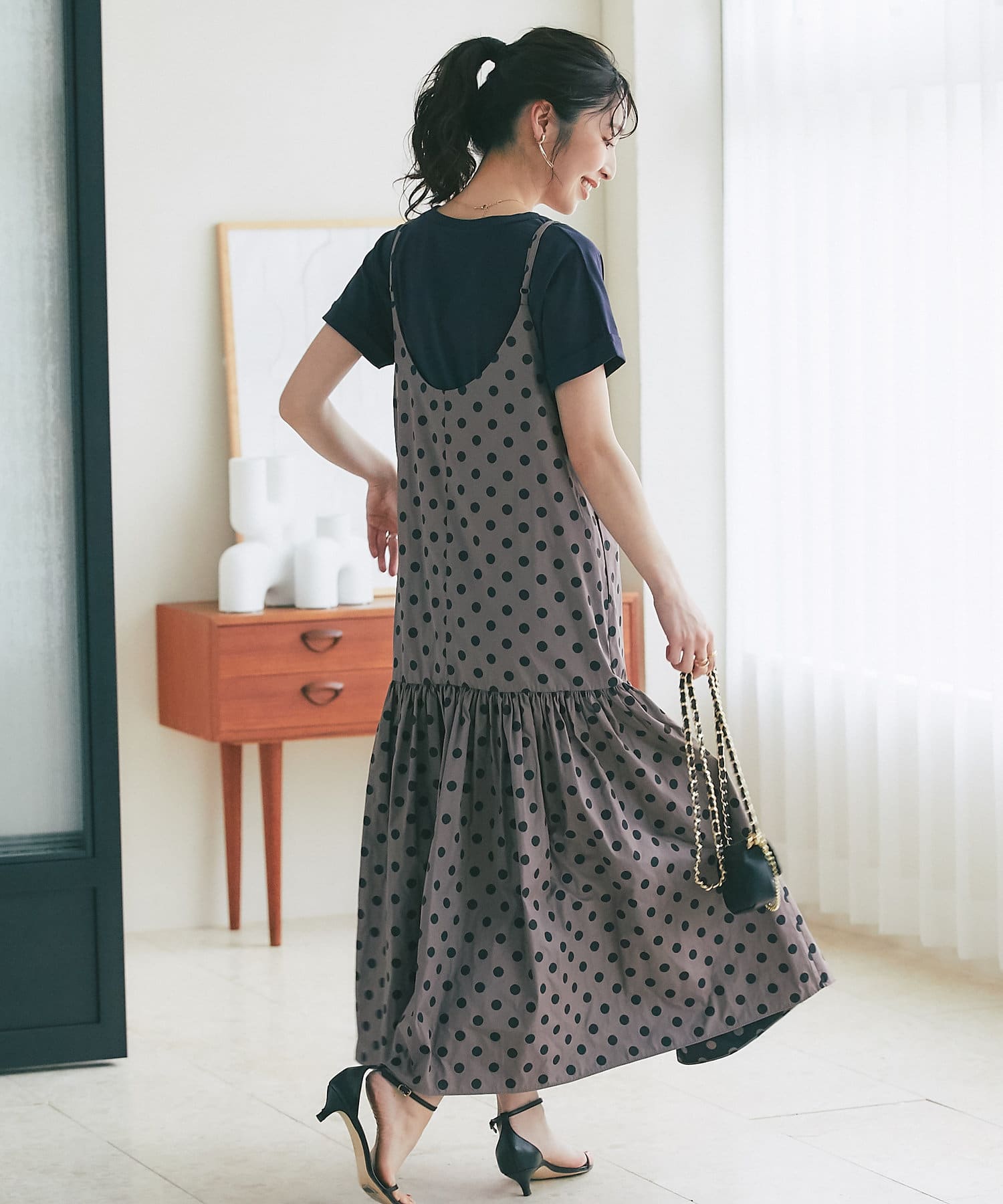 大人ガーリーな雰囲気を演出するドットプリントワンピース