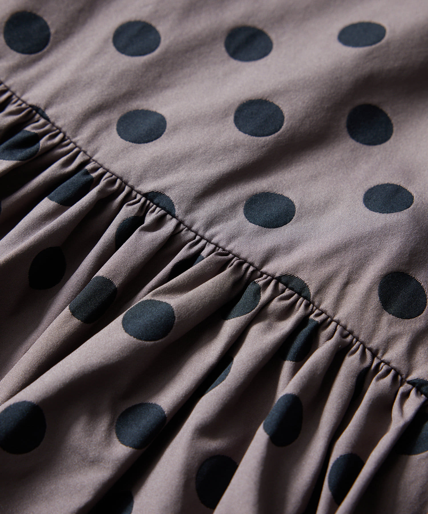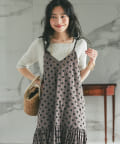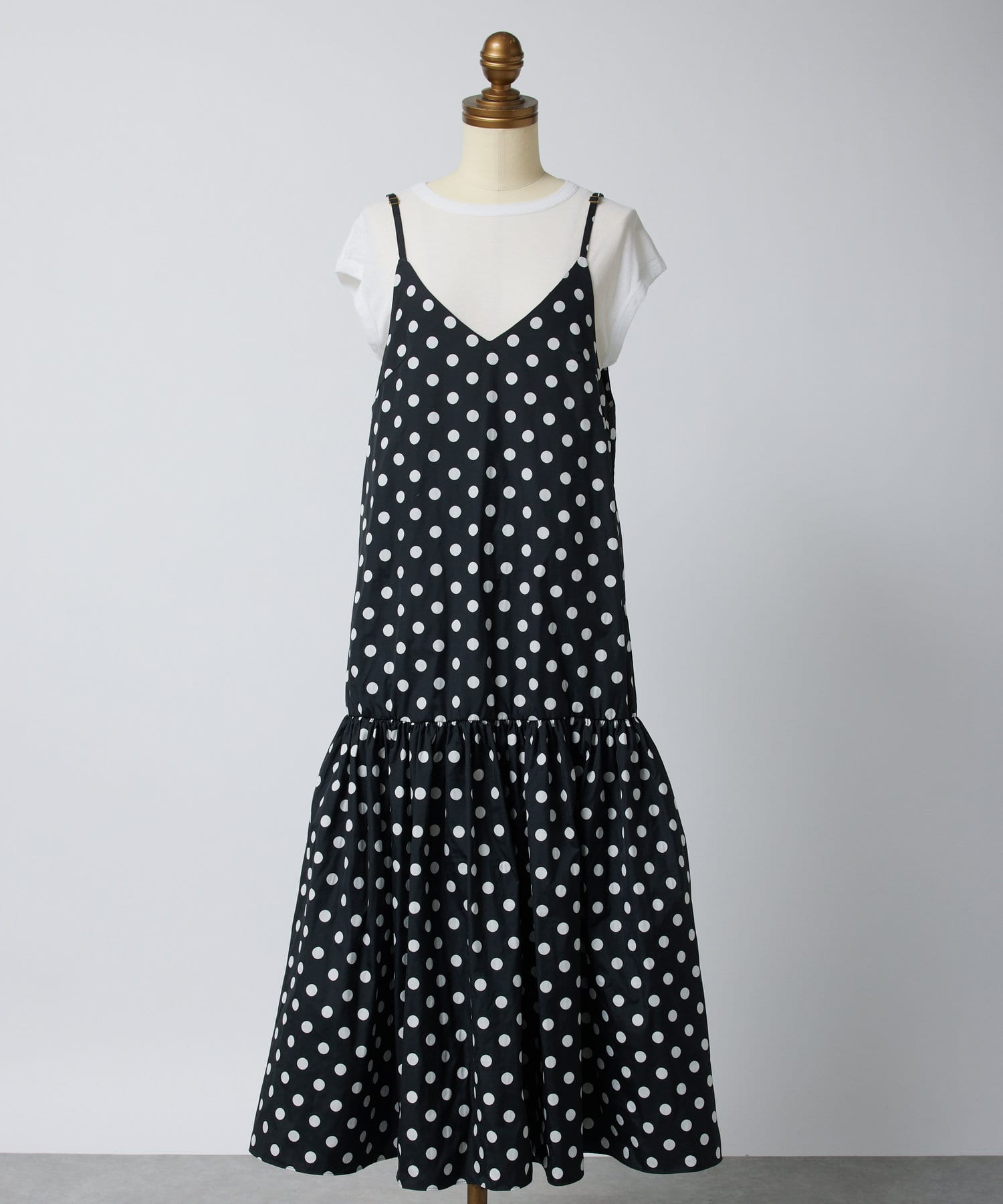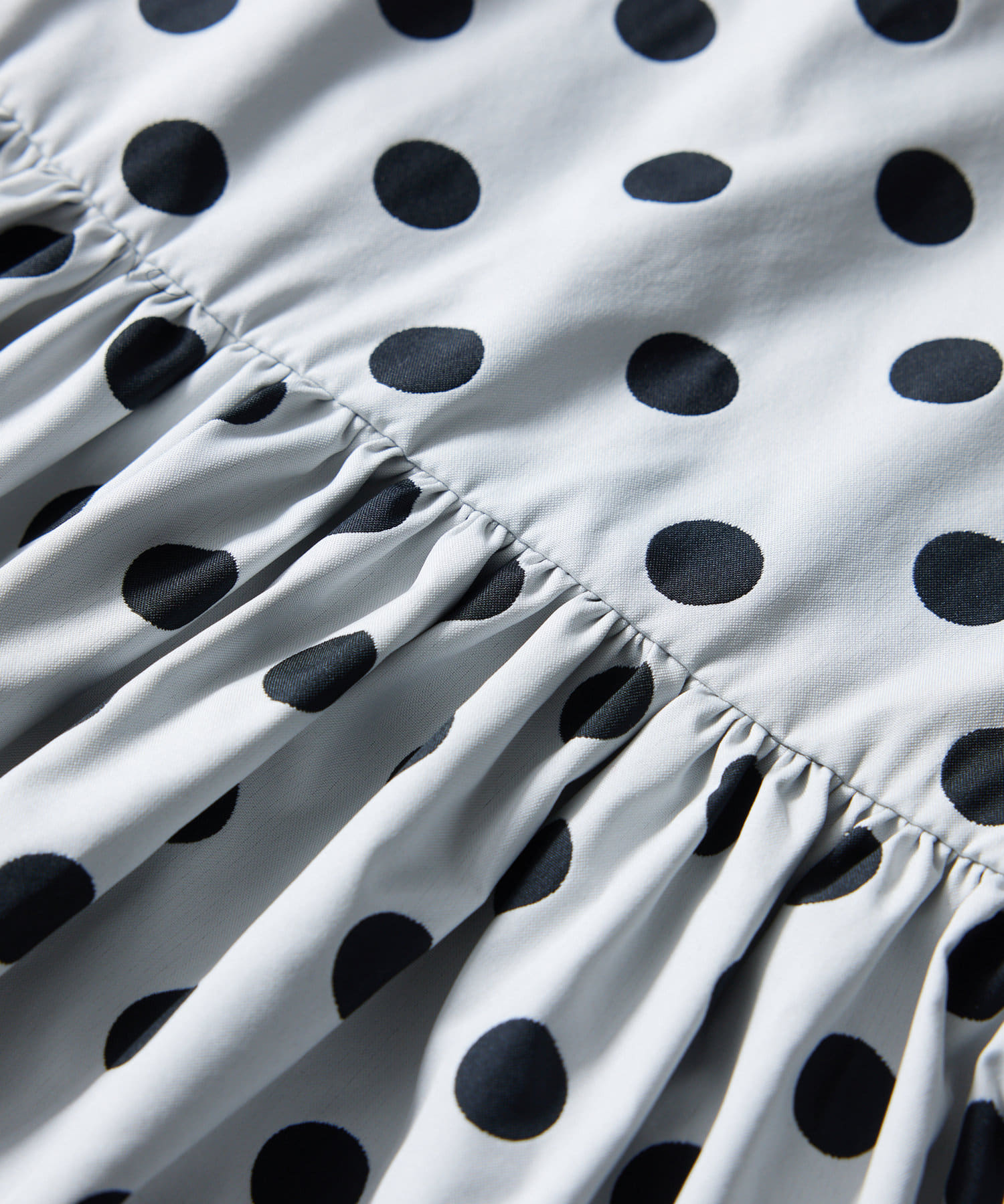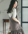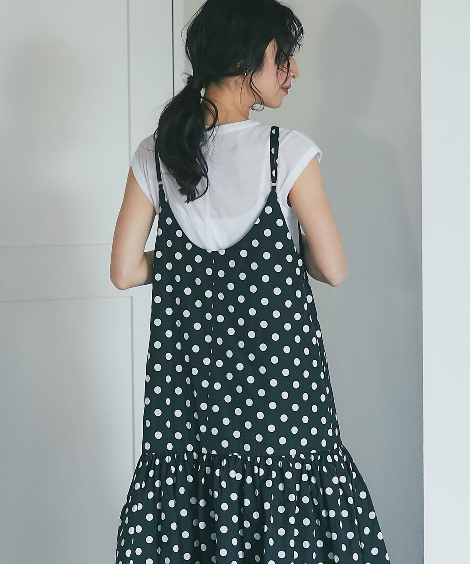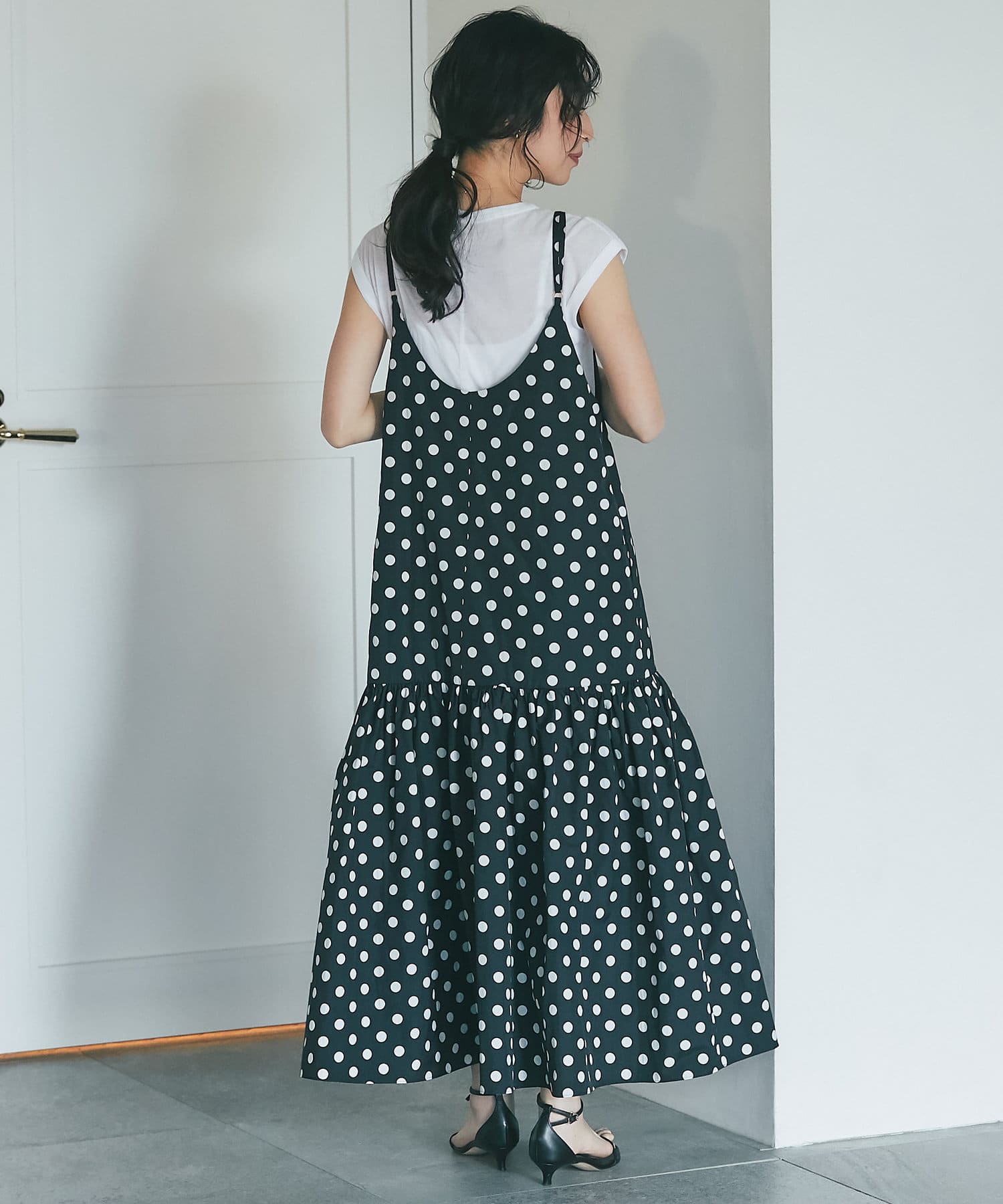 大人ガーリーな雰囲気を演出するドットプリントワンピース
