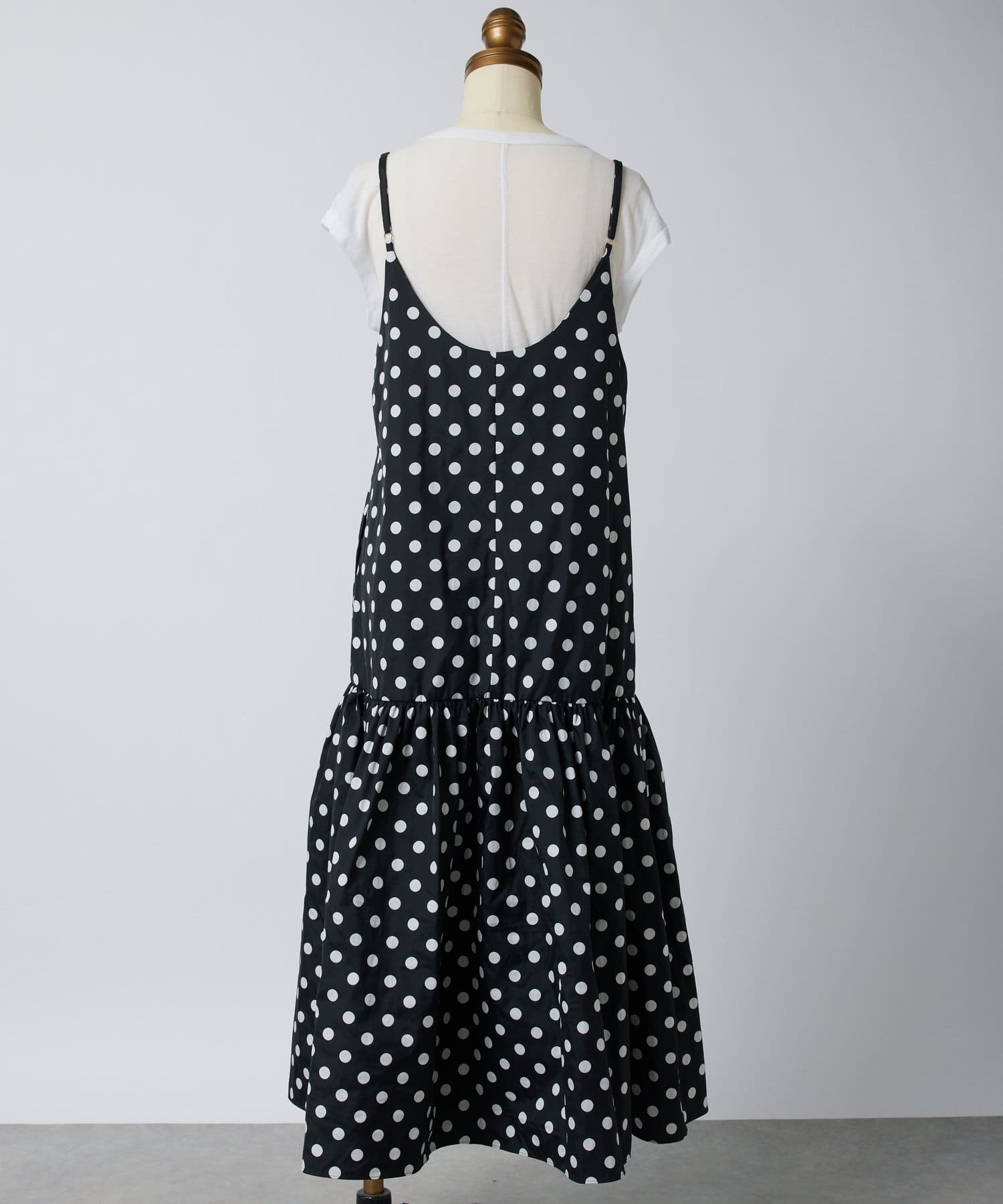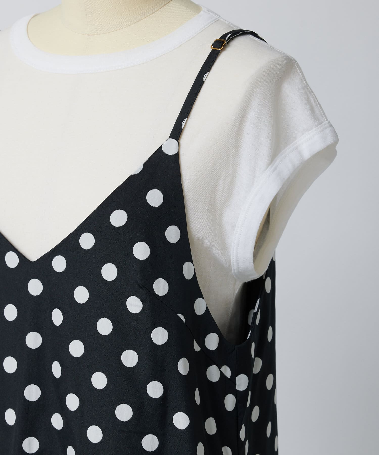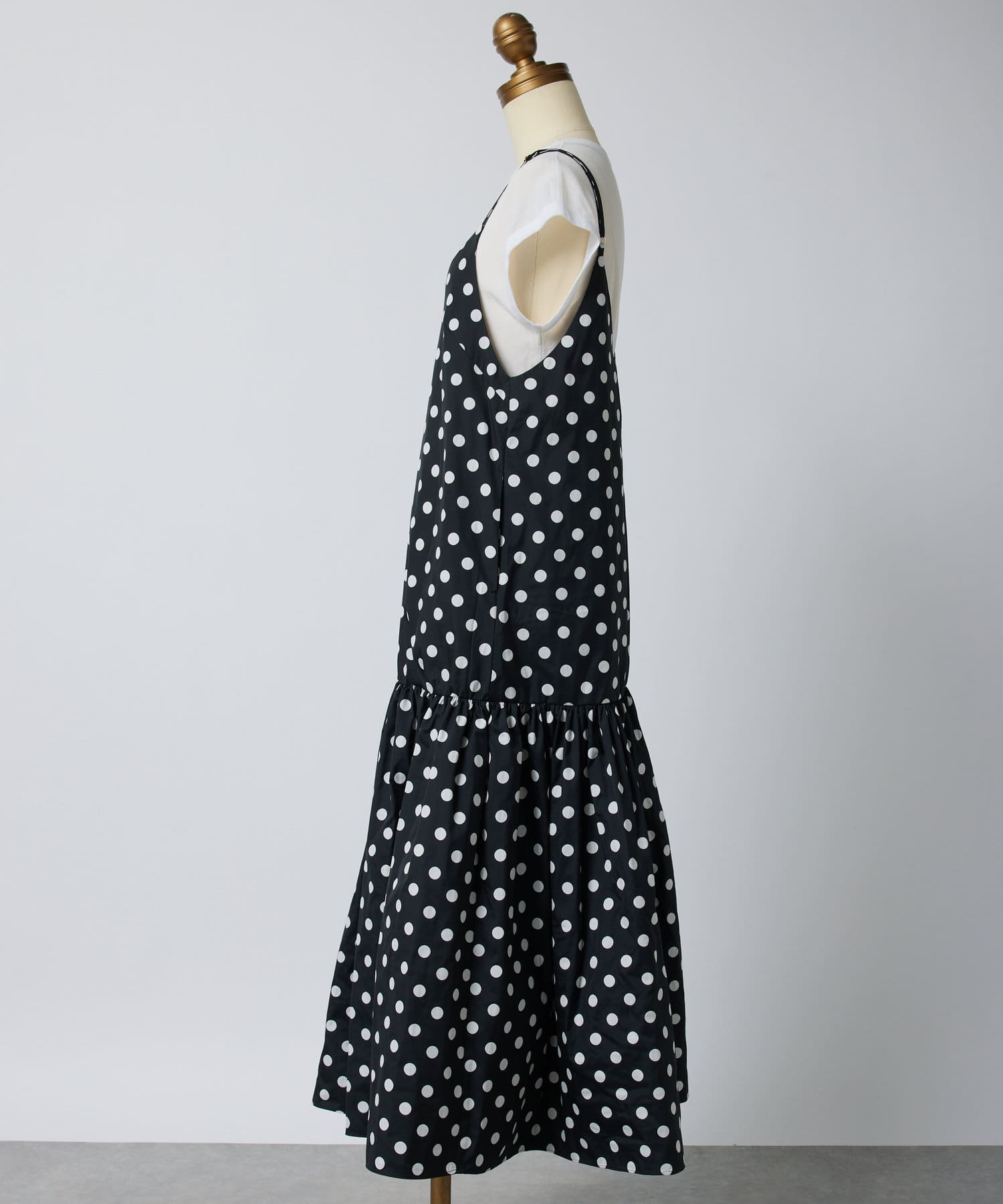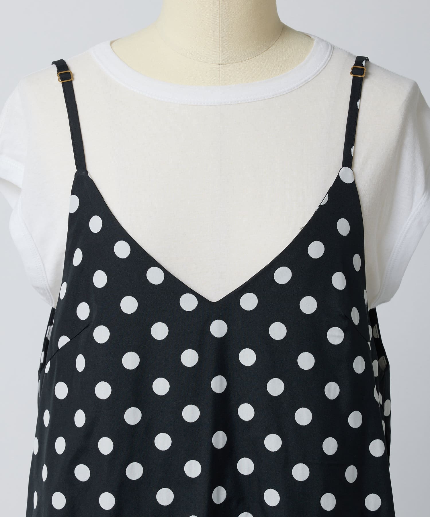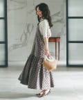 大人ガーリーな雰囲気を演出するドットプリントワンピース