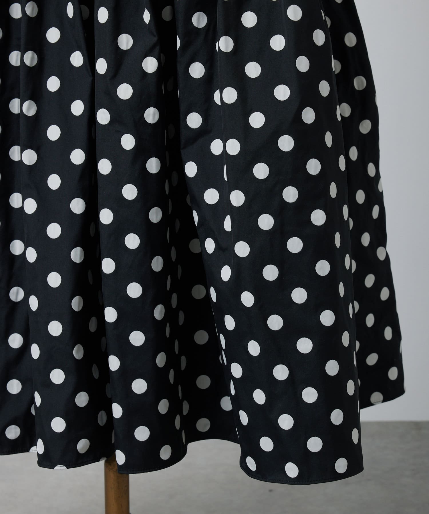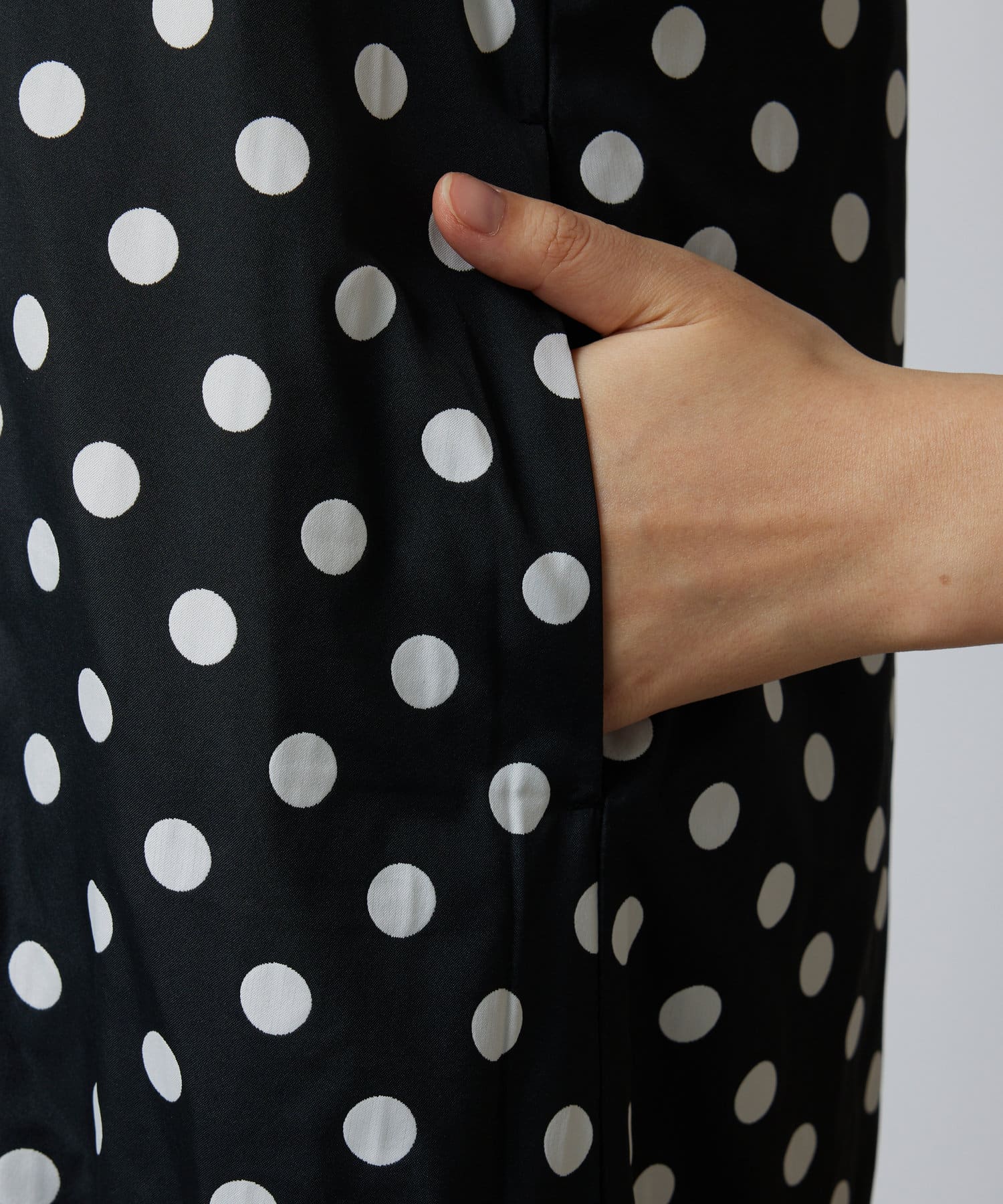 程良い光沢感が上品な、存在感のあるドットプリントワンピースです。