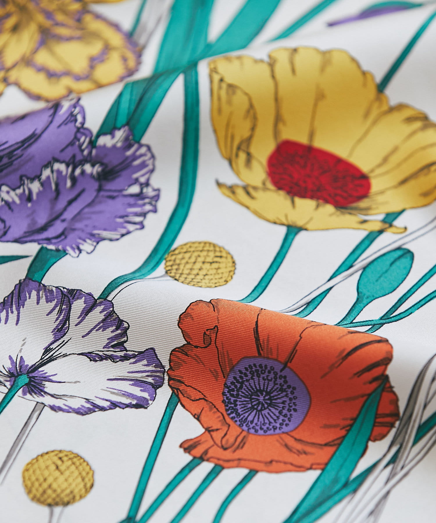 シルクの艶やかな光沢感がカラーリングに更に明るさをプラスしてくれるので、コーディネートがぐっと華やかになります。