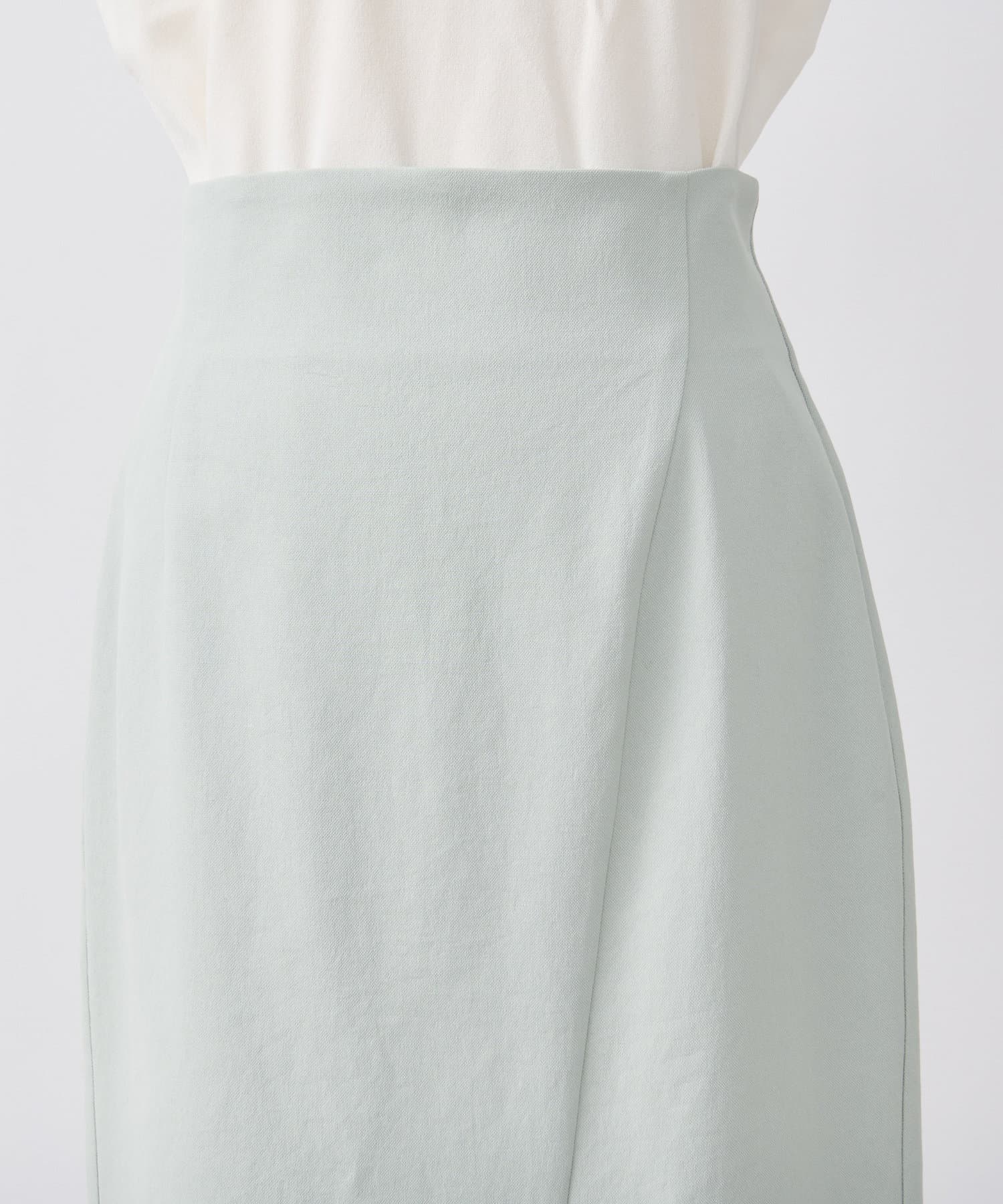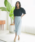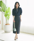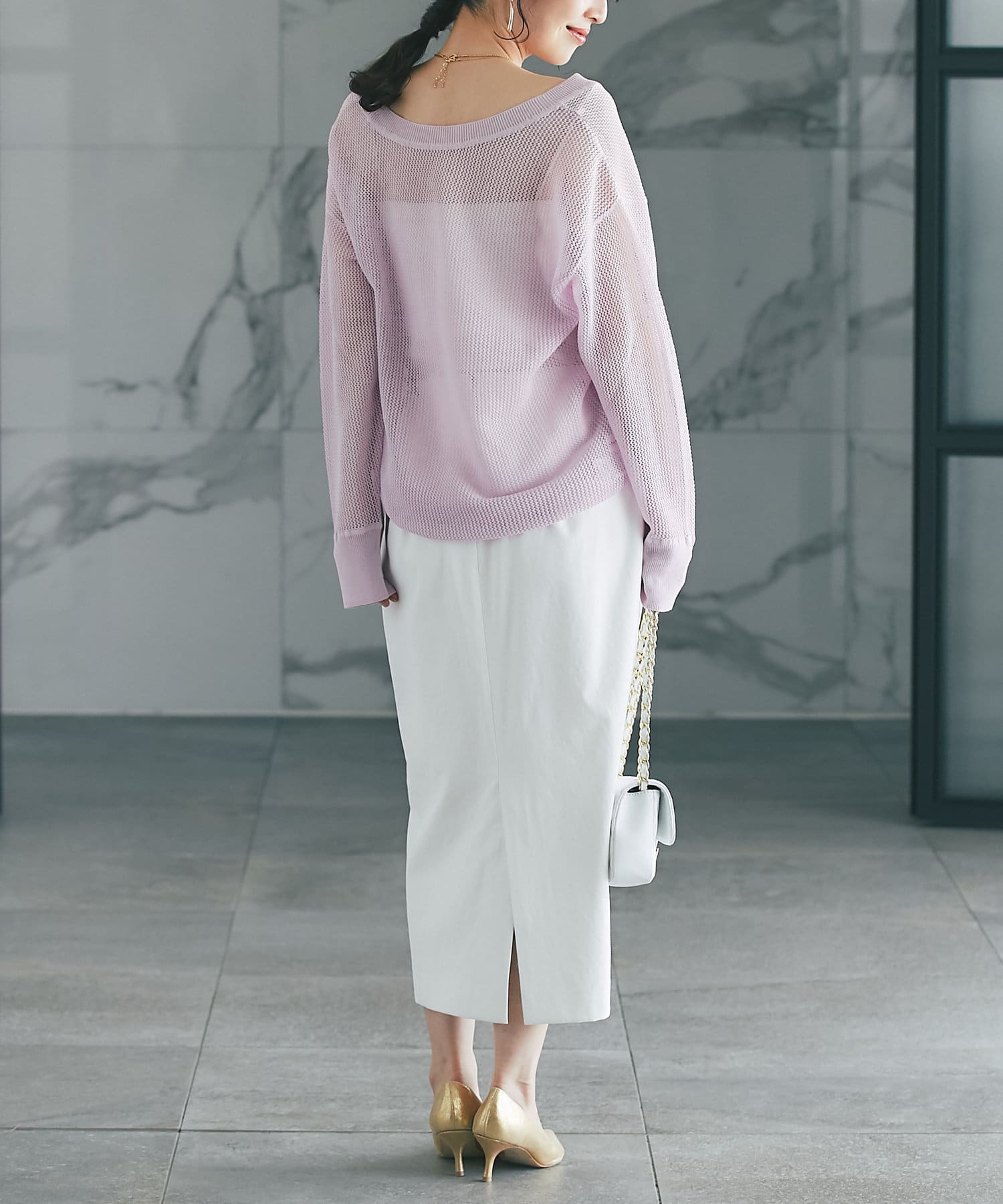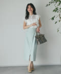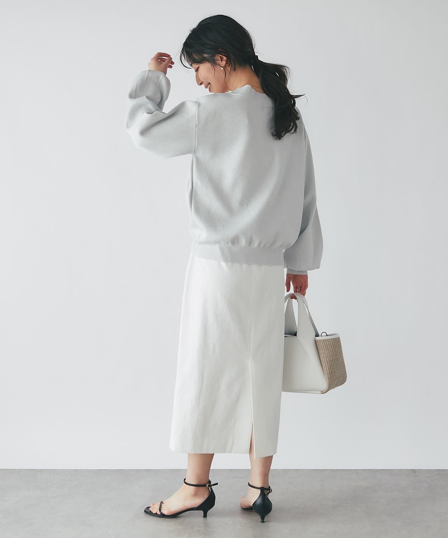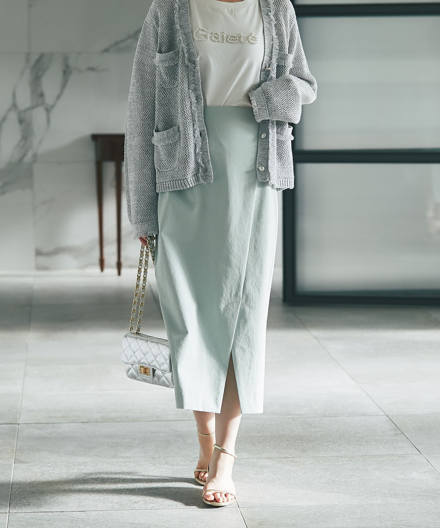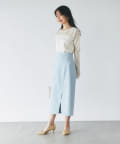 身体のラインを拾いすぎず、スリム見えするナロースカート。
