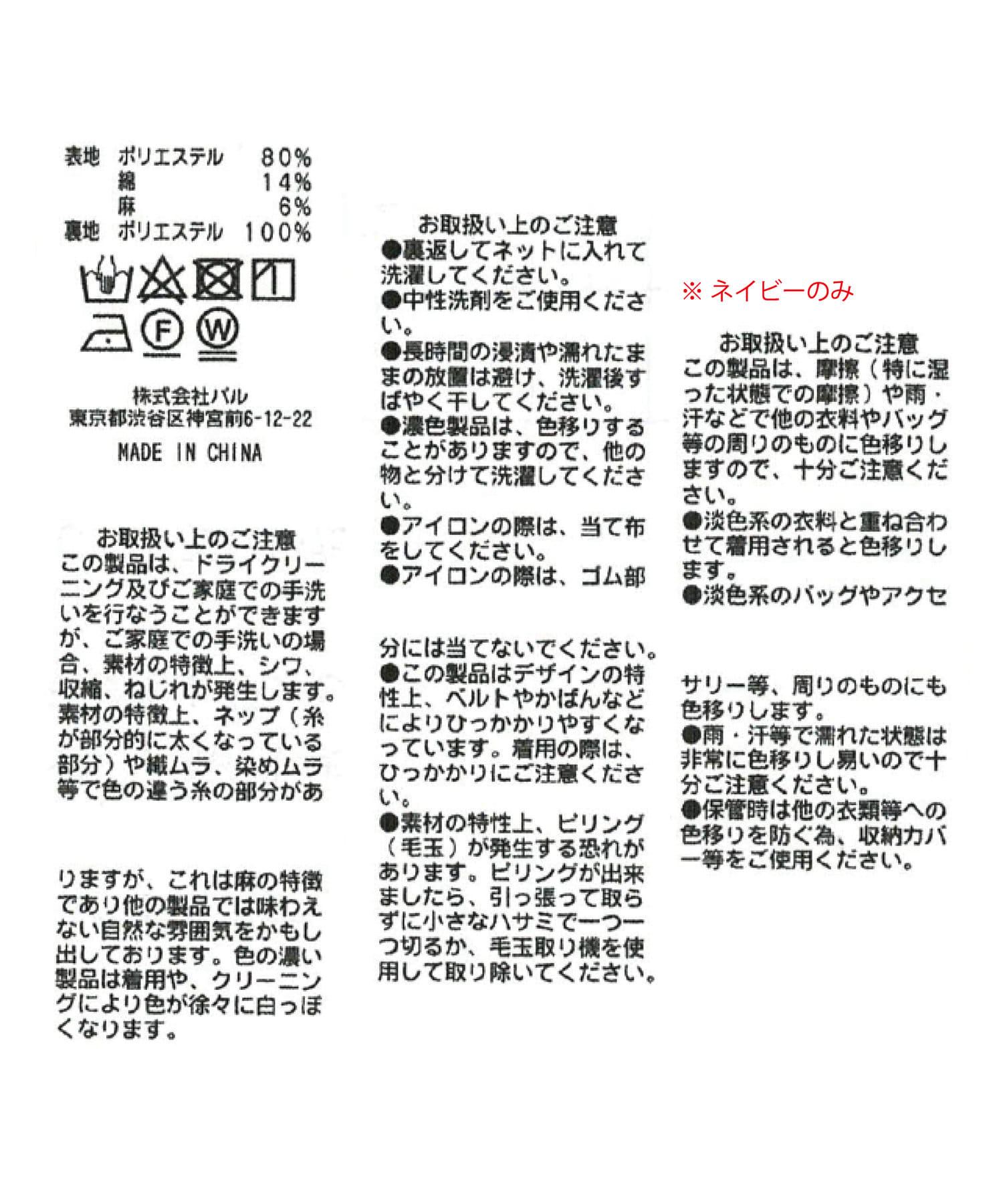 品番 LBZ1041301A0003 素材 表地 ポリエステル80%