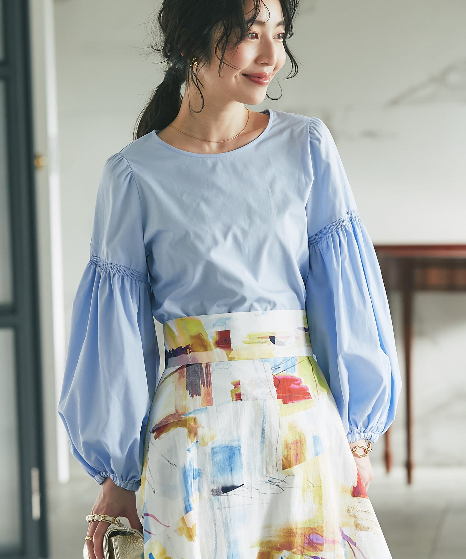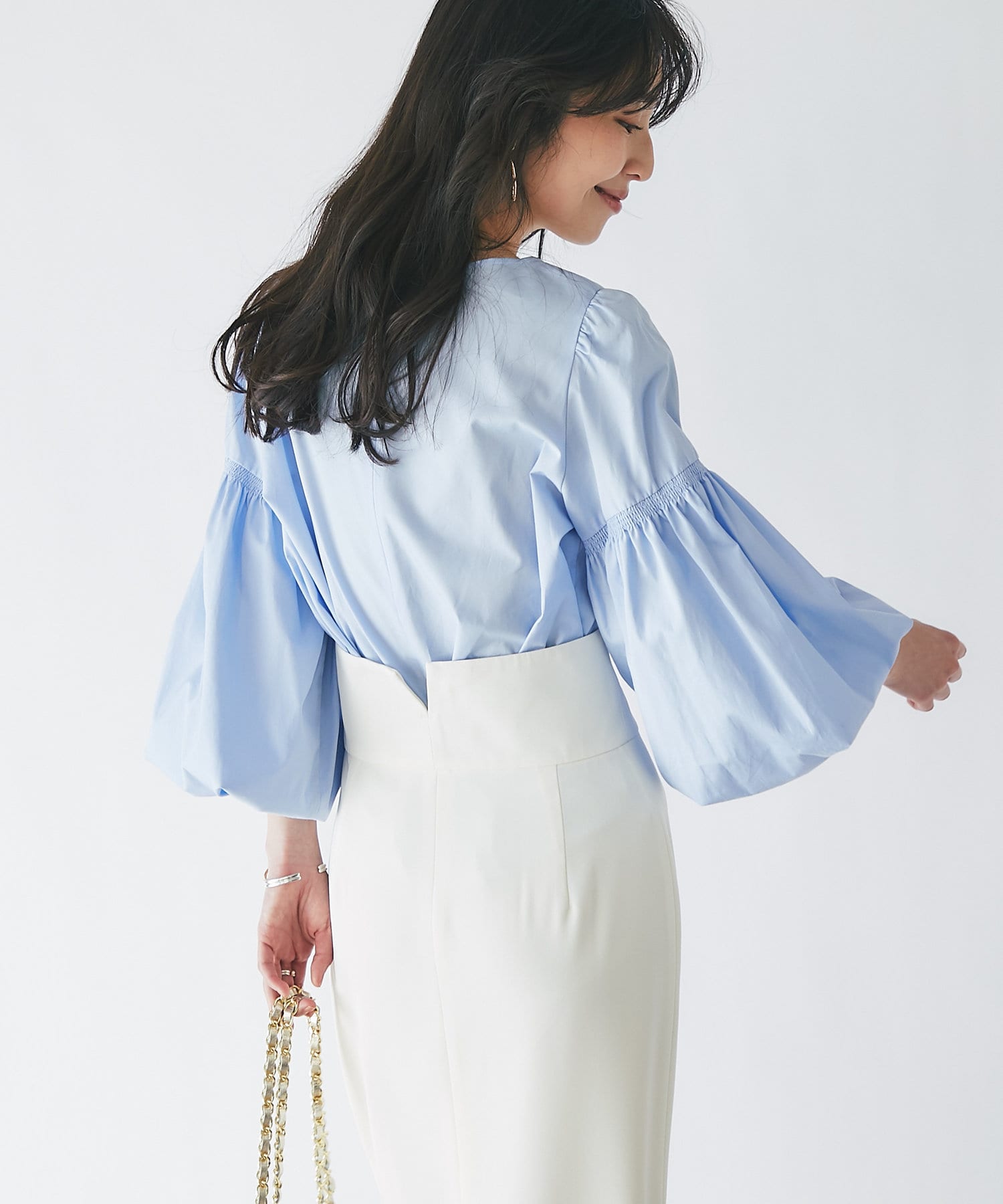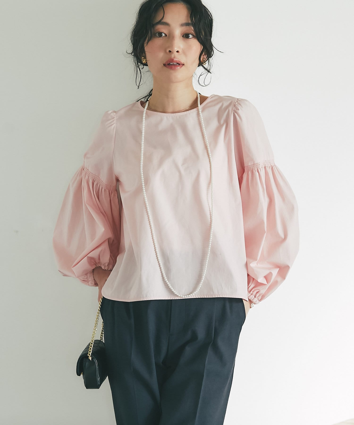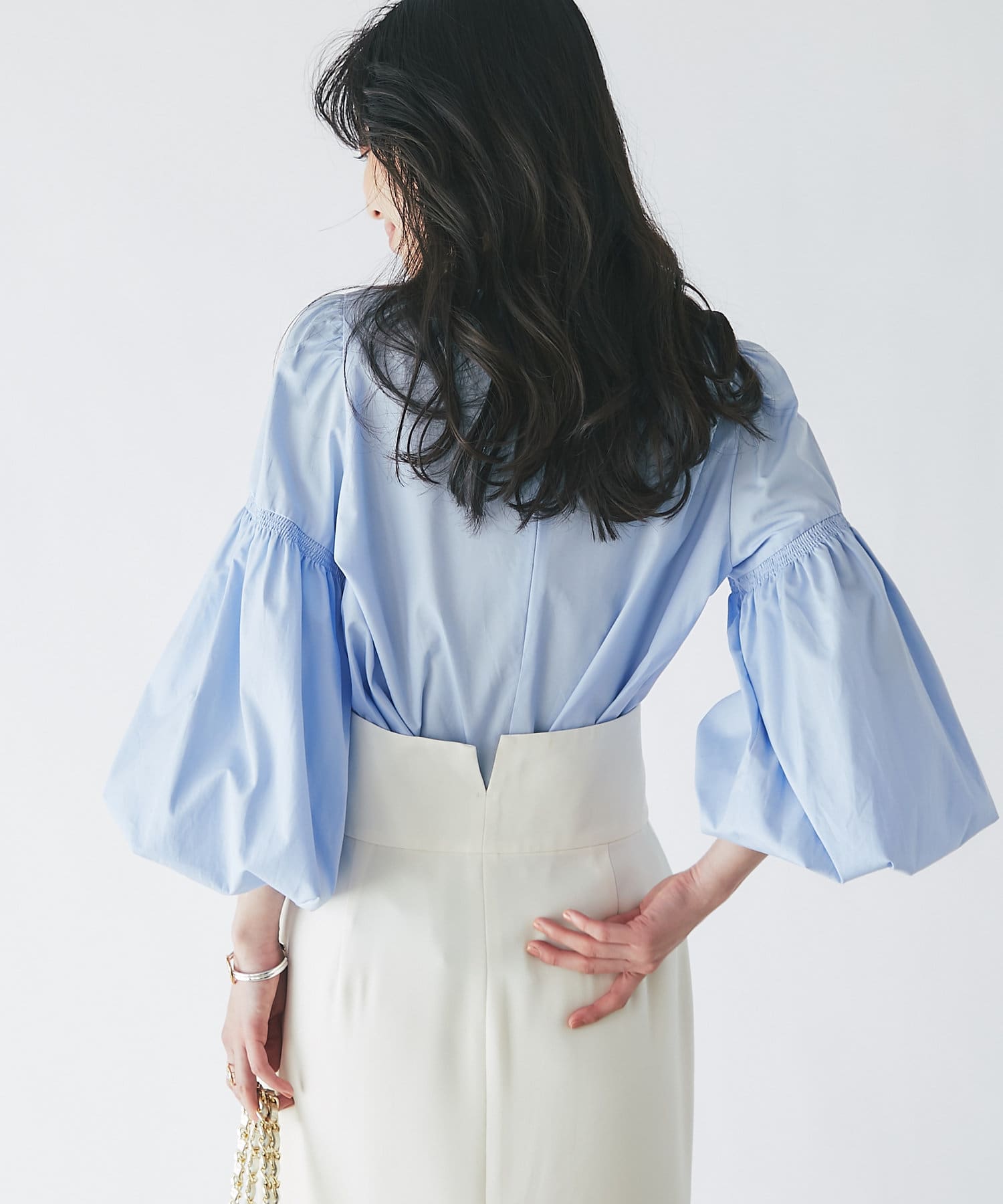 ふんわりとしたバルーンスリーブが目を引くデザインブラウス