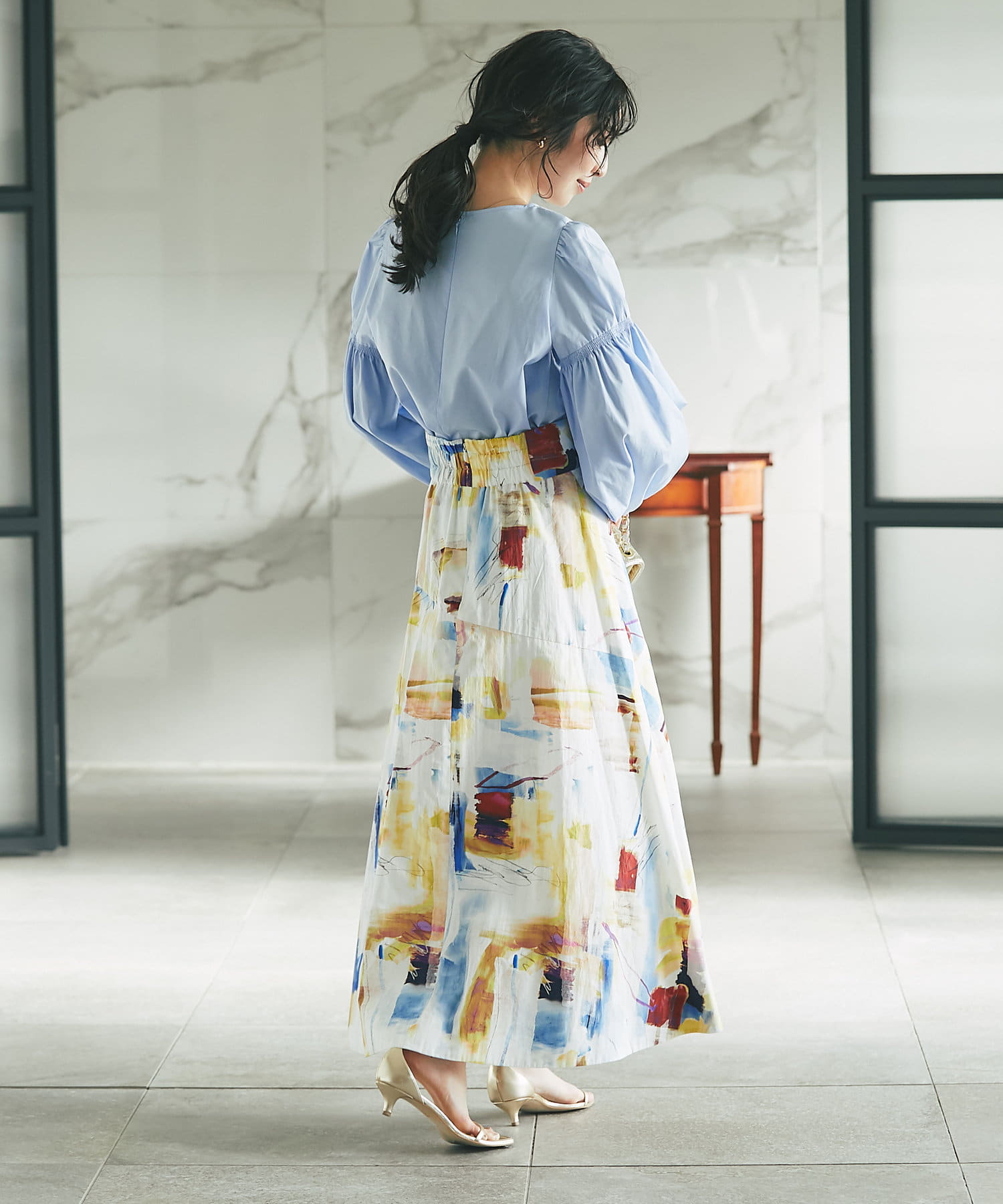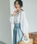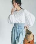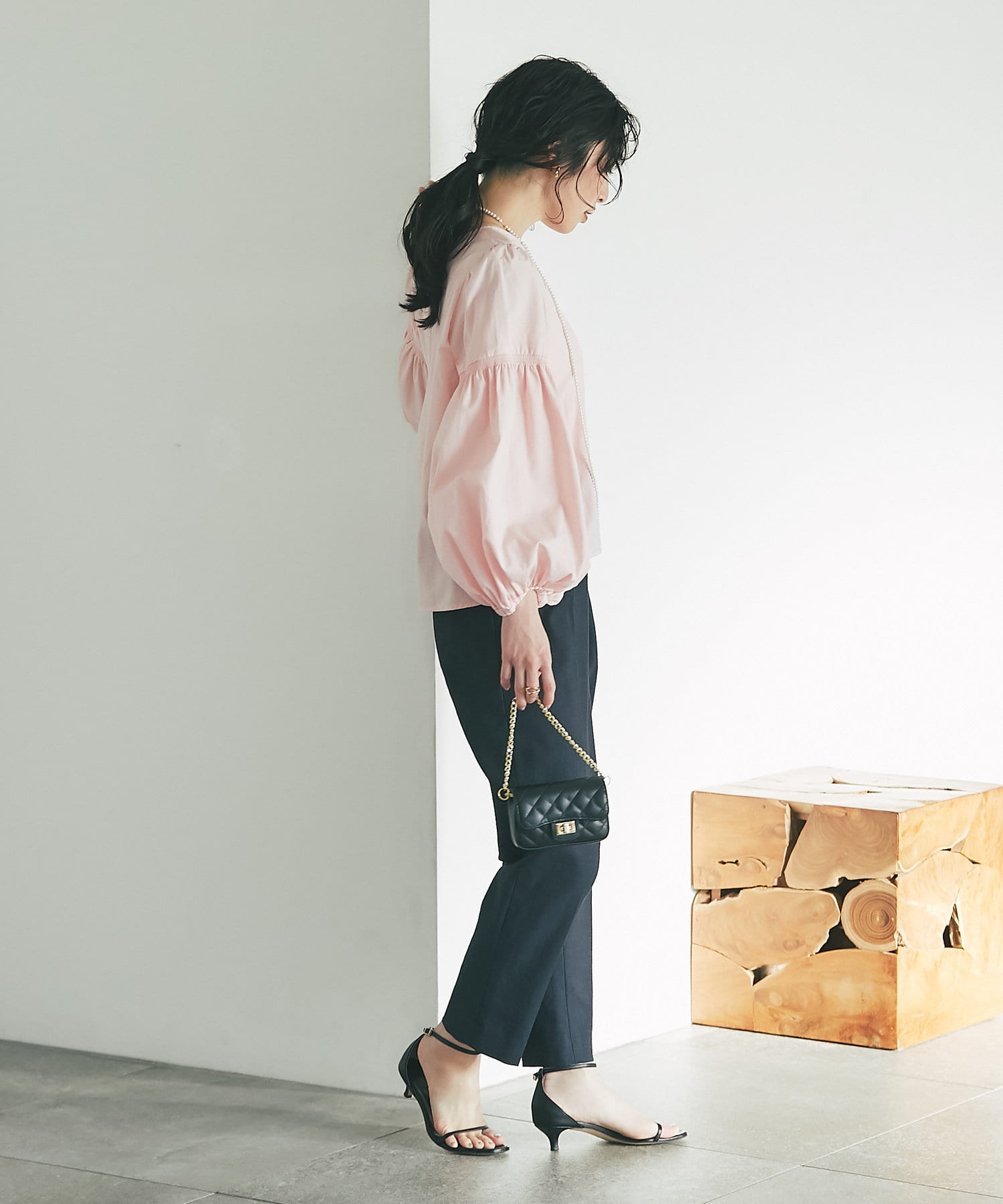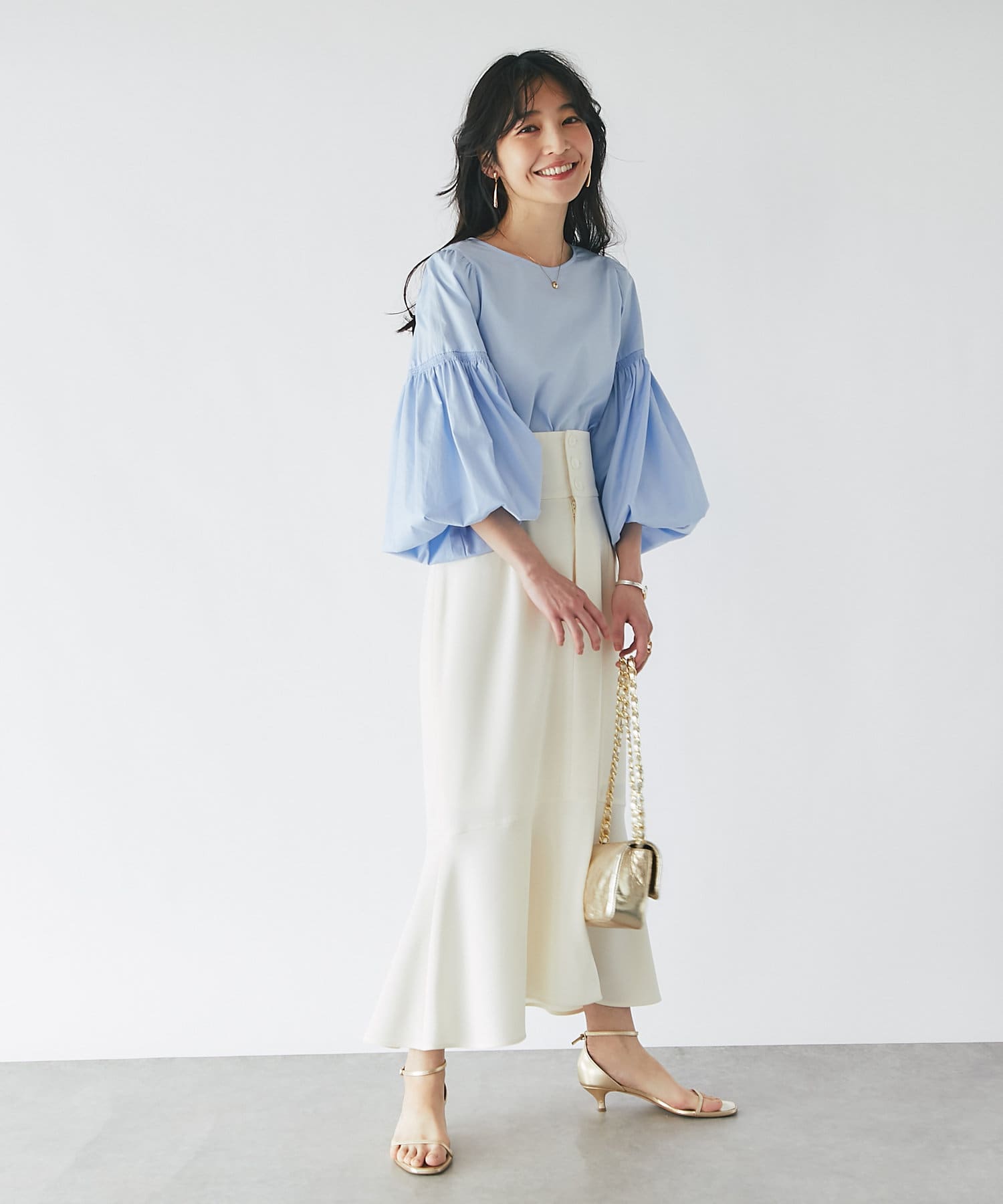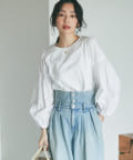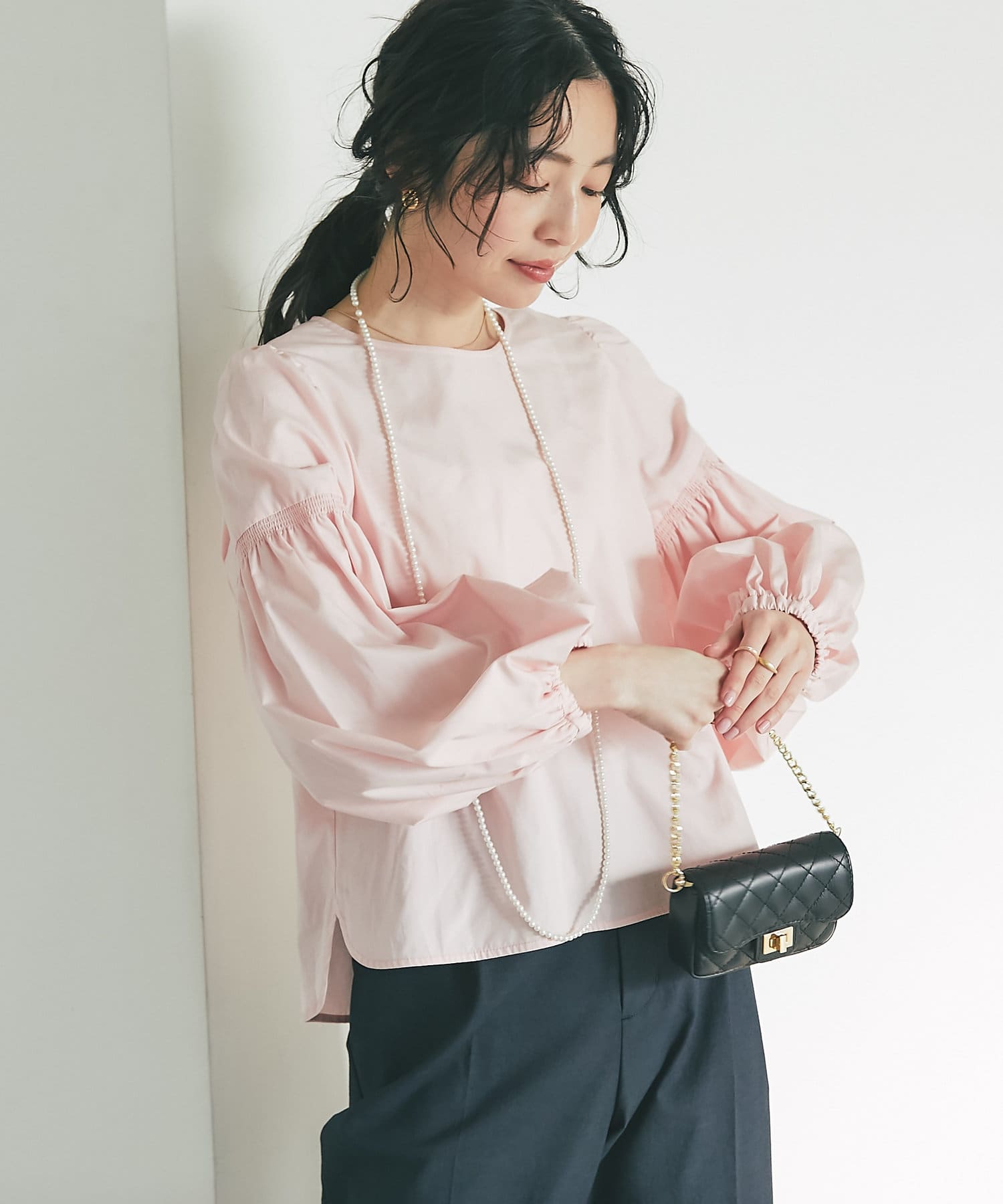 ふんわりとしたバルーンスリーブが目を引くデザインブラウス