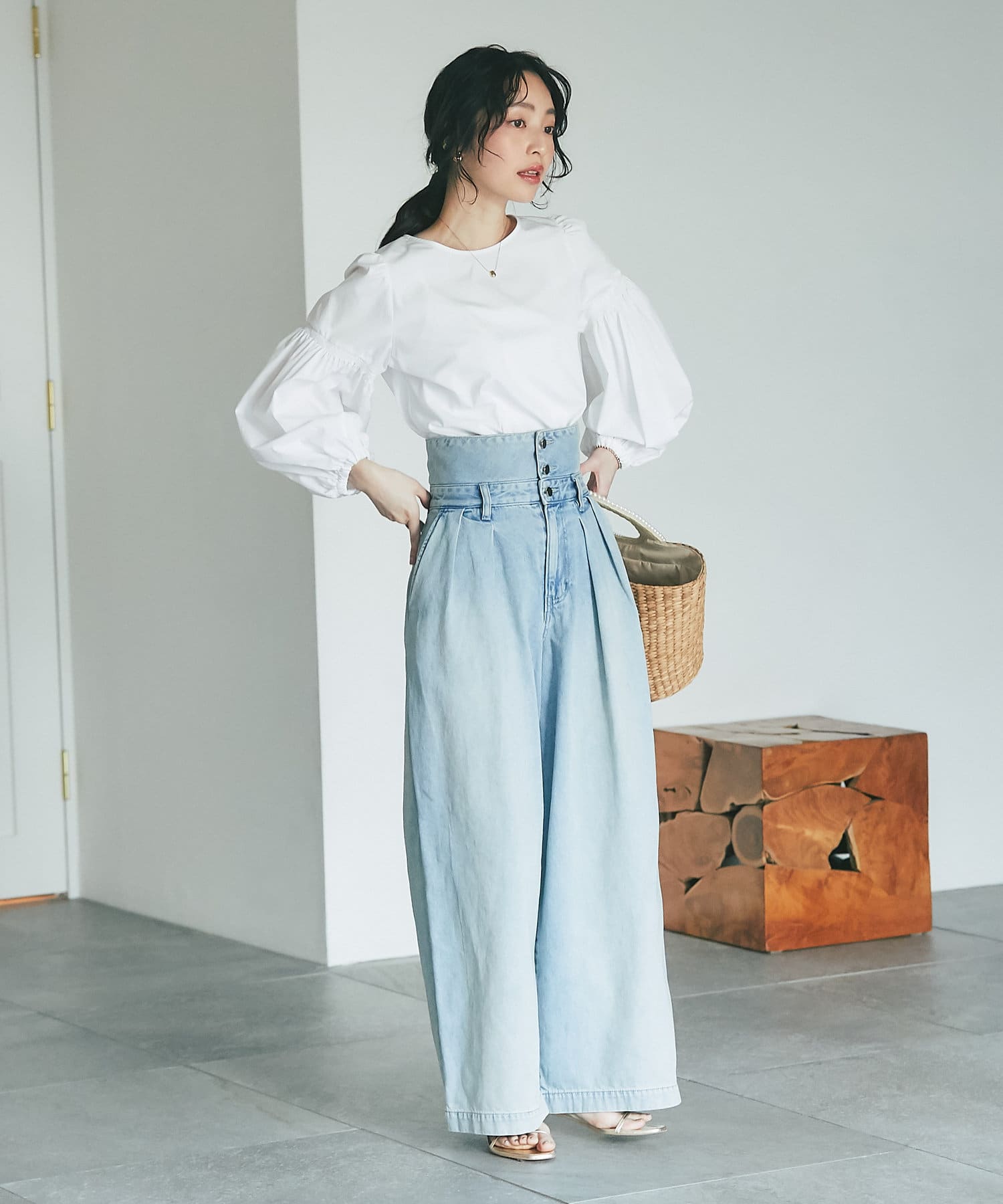 スカートを合わせてフェミニンに、デニムに合わせてカジュアルにも、