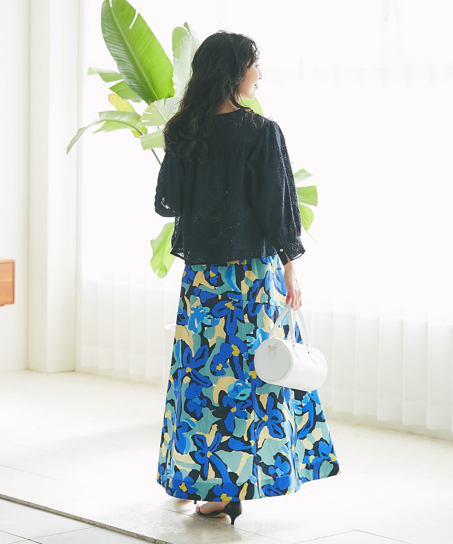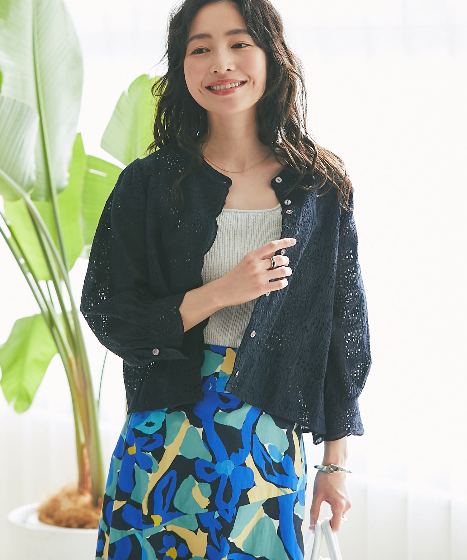 甘さを抑えた葉っぱ柄の総刺繍でどこから見ても華やかなブラウスです。